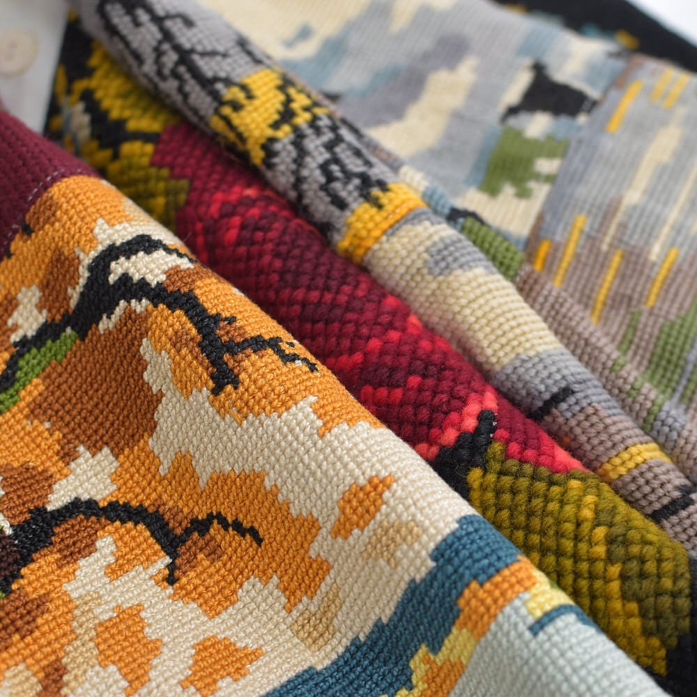 世界中から集めた手織りのクロスステッチのテキスタイル