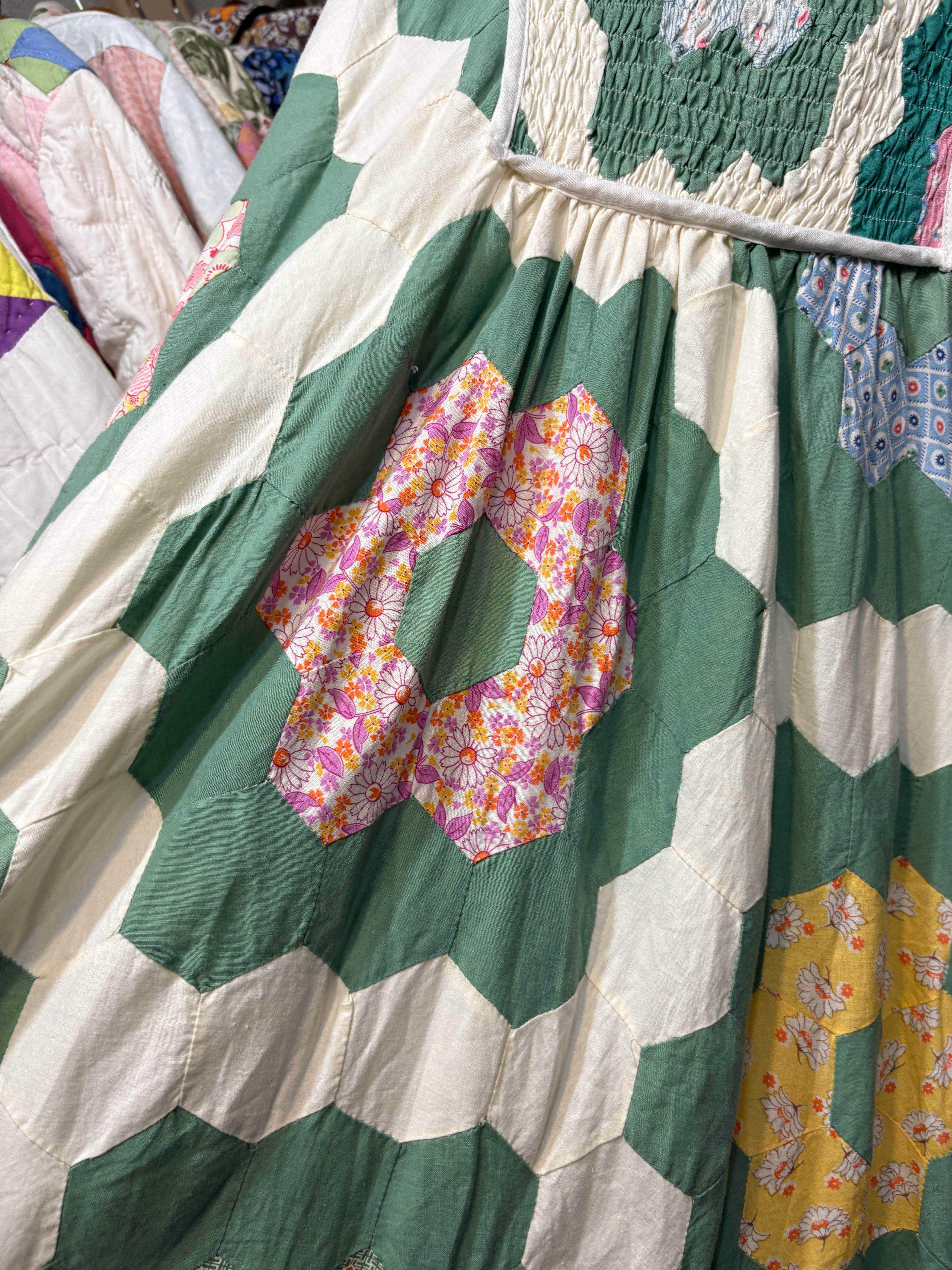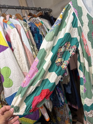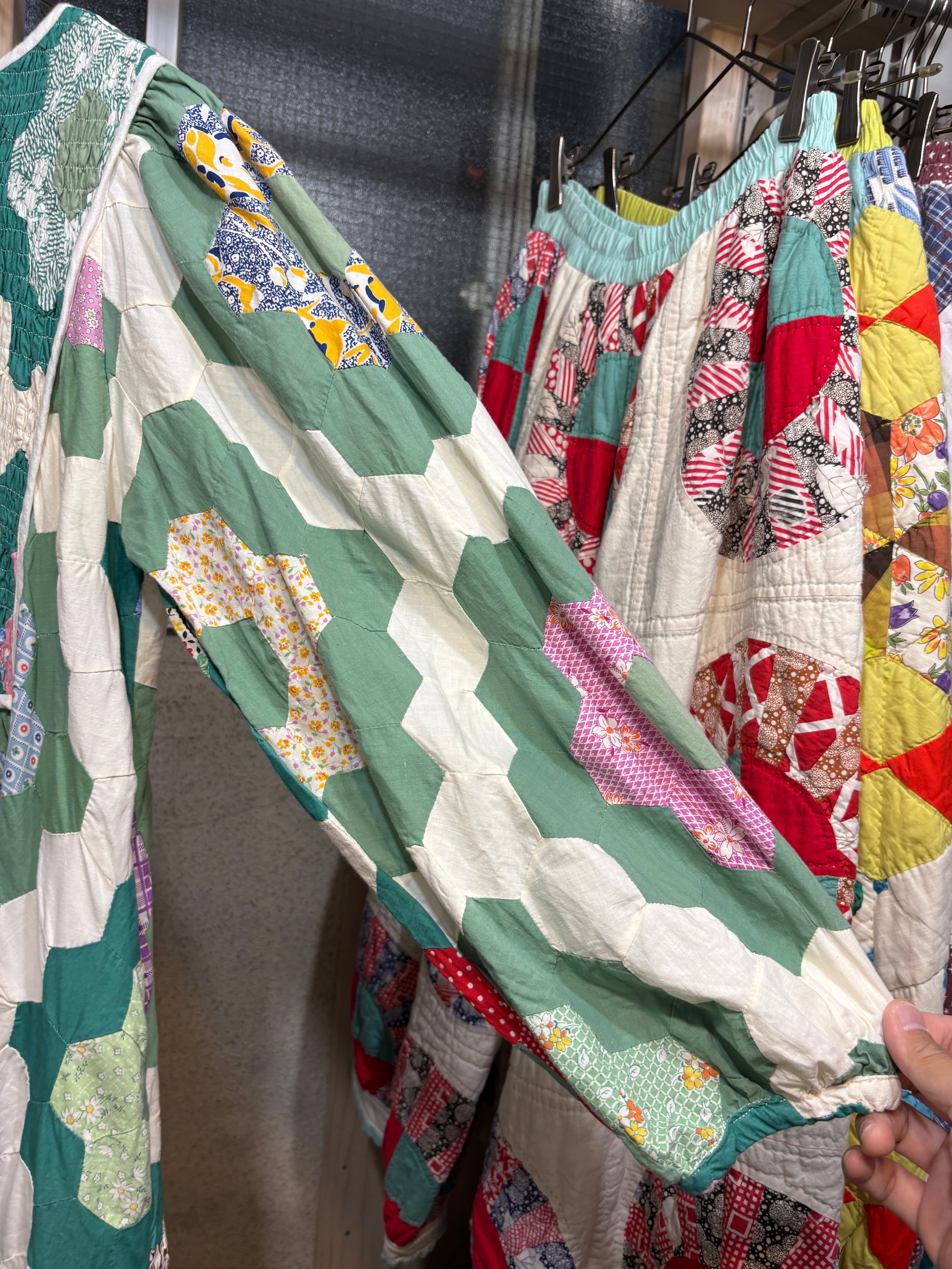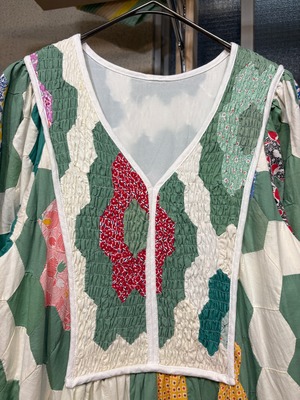 ※パッチワークの生地の性質上、繋ぎ目の仕末はロックされていないので、引っ張りのテンションの強度はあまり強くなく繊細です