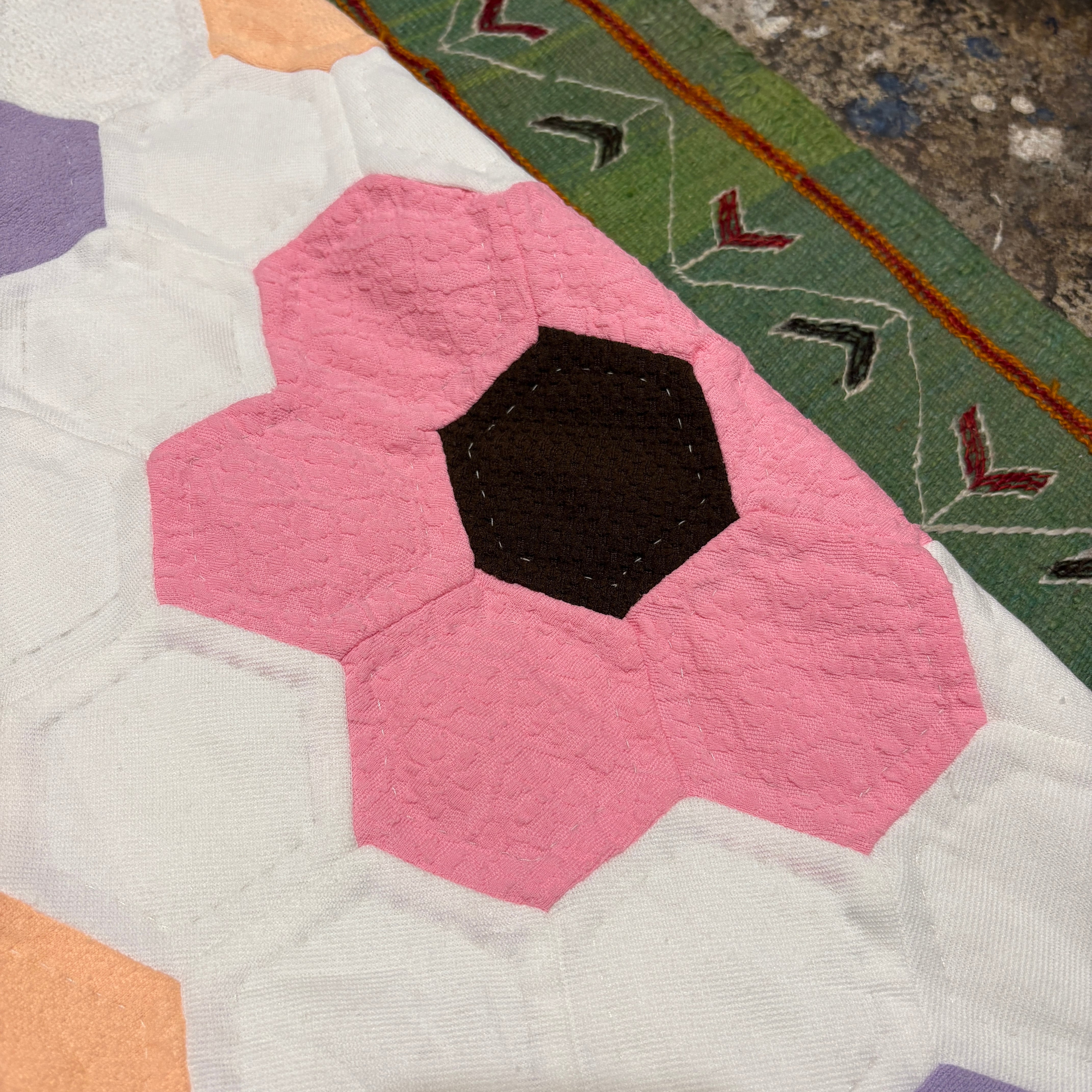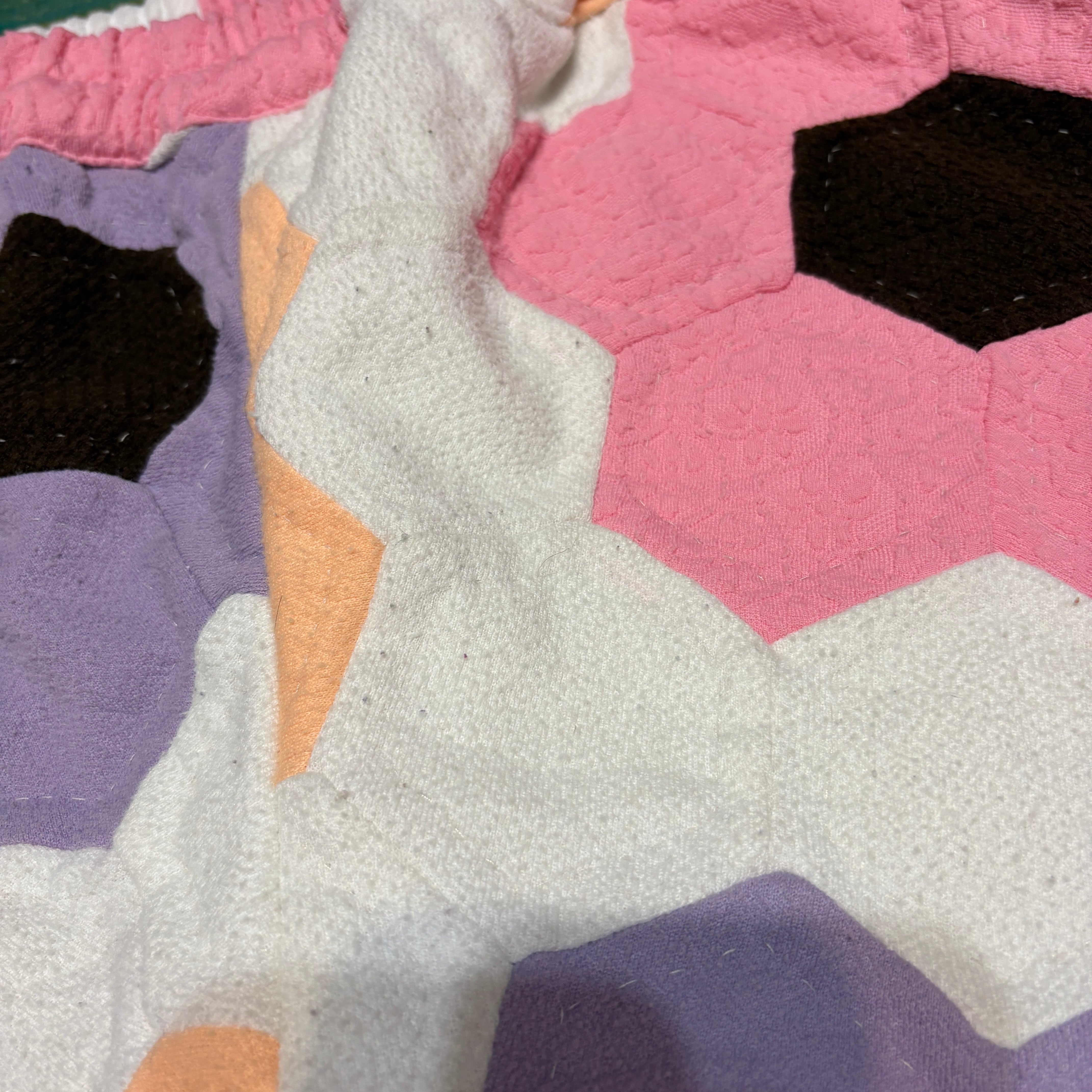 素材感から、表面はcottonやpolyester、中綿と裏地はpolyesterだと思われます