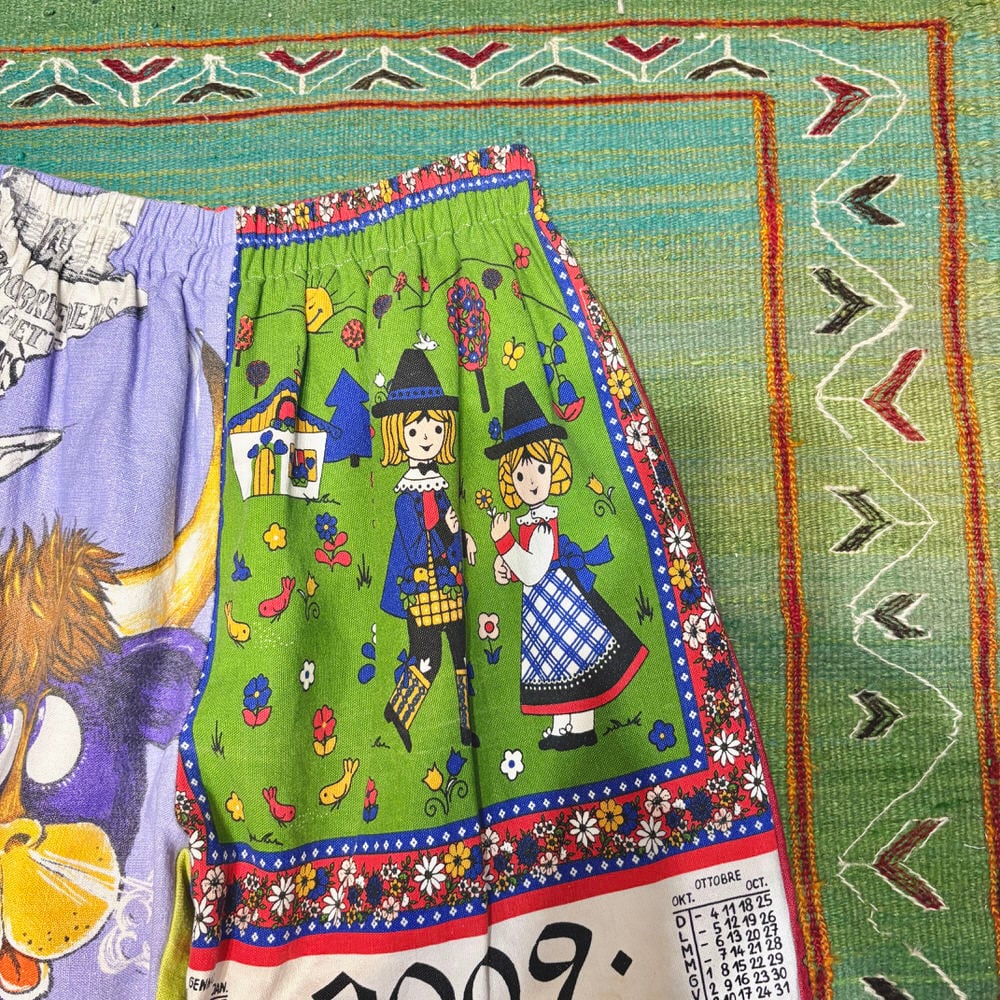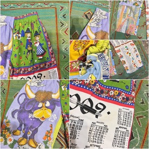 Remakeリメイク ヴィンテージ テキスタイル パッチワーク デザイン 再構築 ルーズシルエット イージーパンツ ツギハギ アニマル柄 古着 裏地付き W64〜102cm