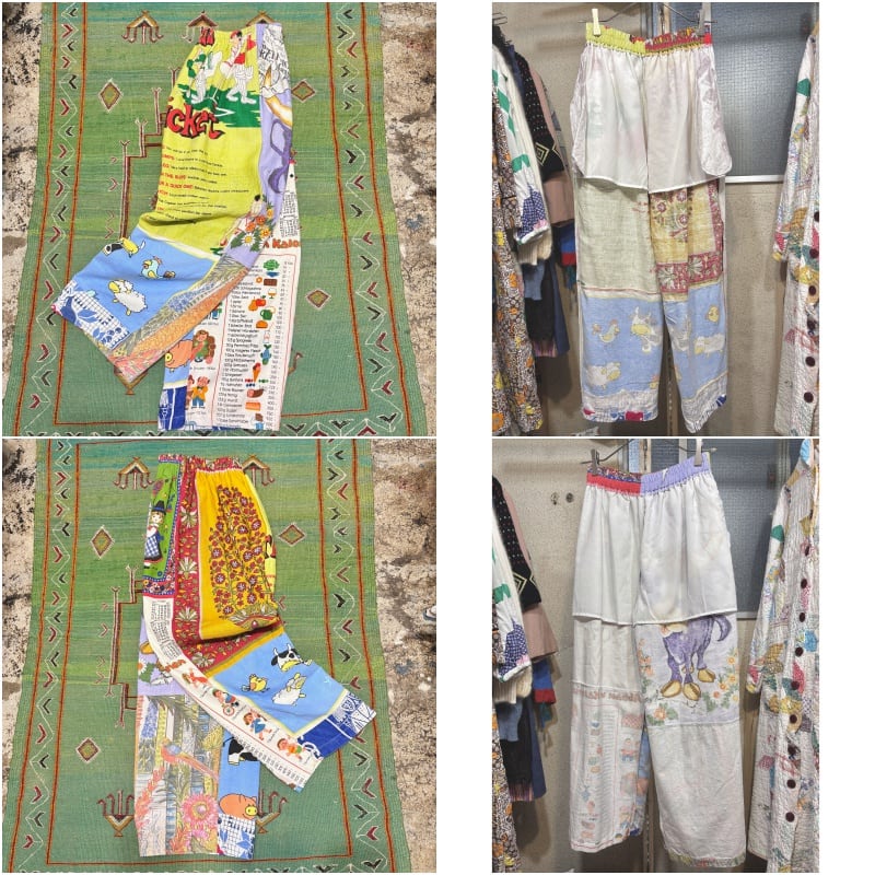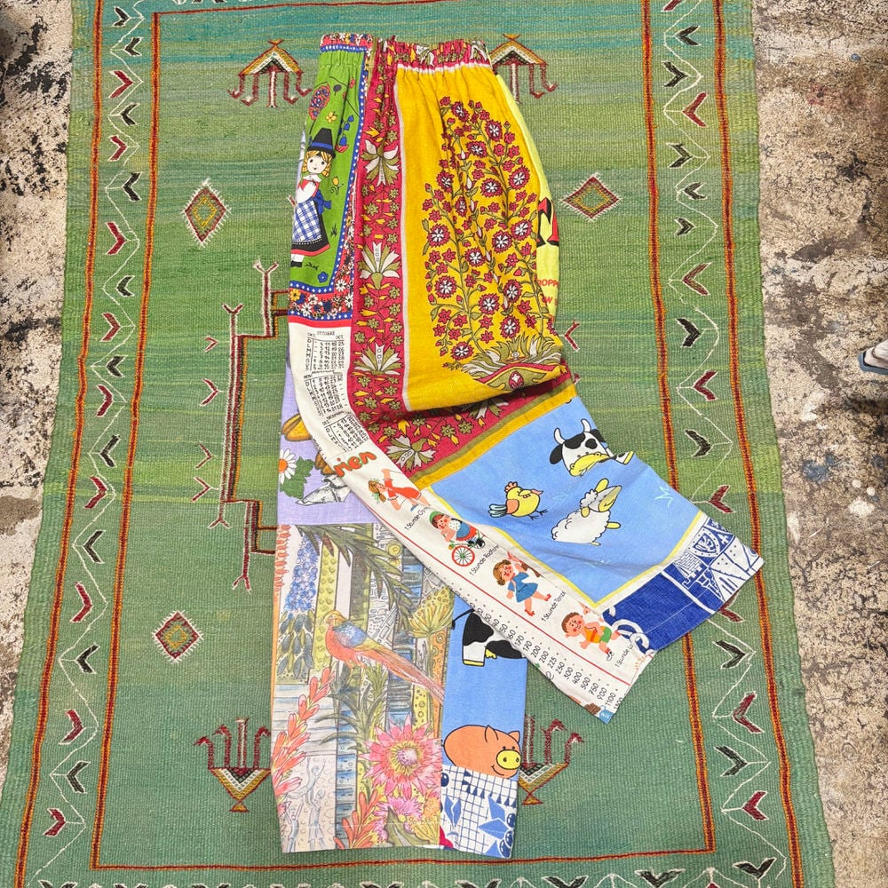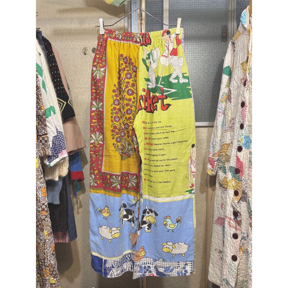 ヴィンテージなどの色んな生地を丁寧に繋ぎ合わせて一本のパンツに仕上げたリメイクパンツ