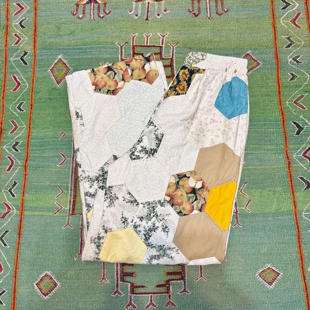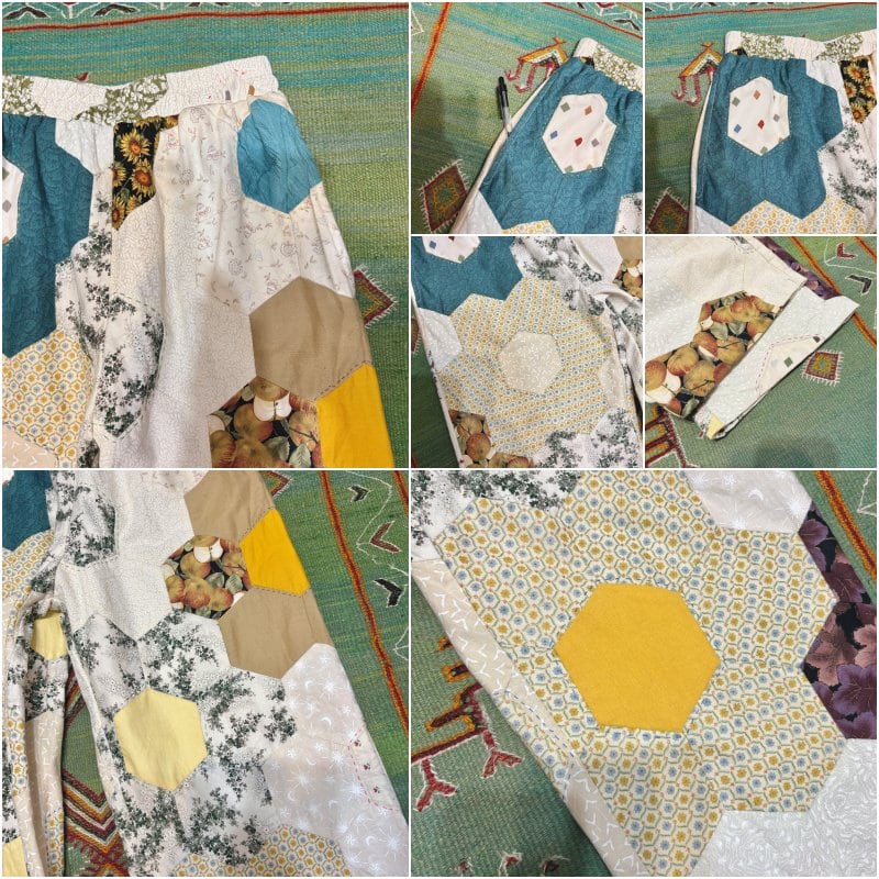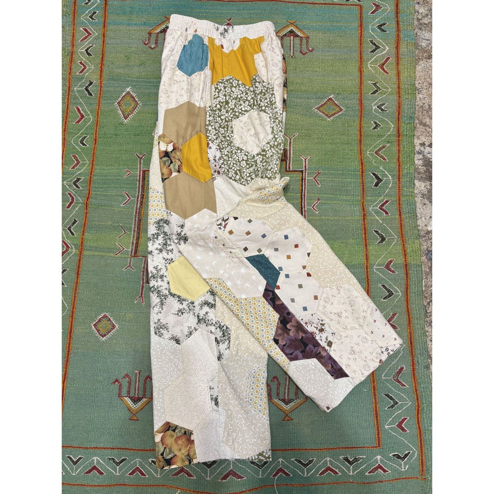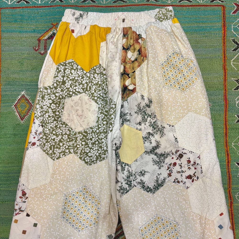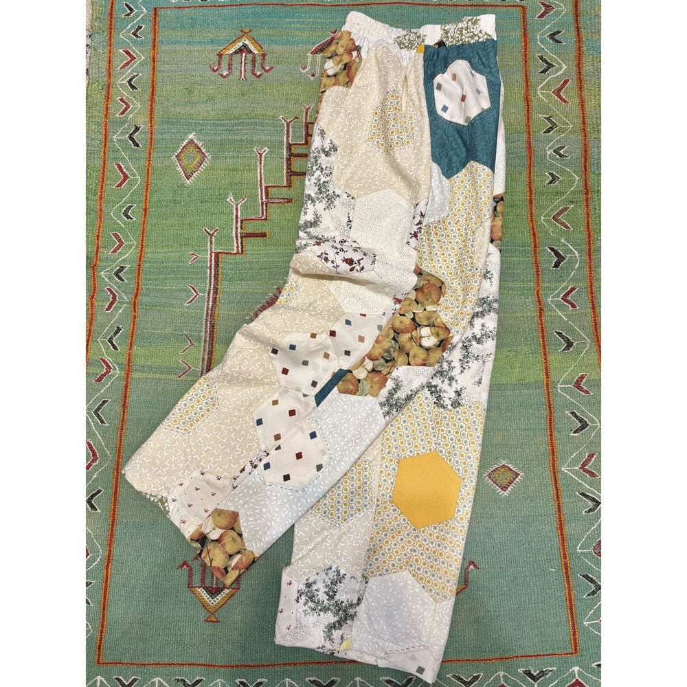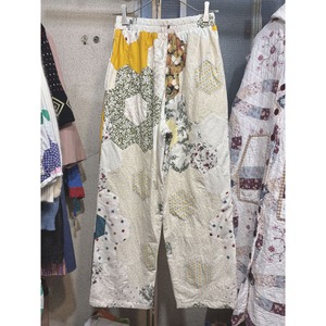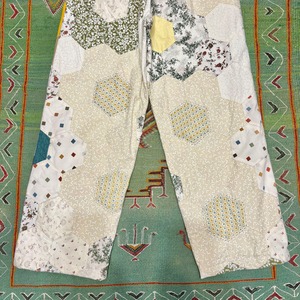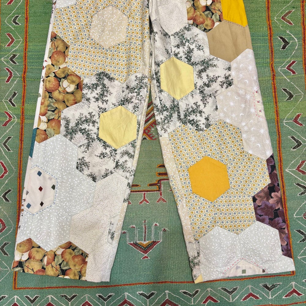 Remake リメイク ハンドメイド フラワーガーデン ヘキサゴン パッチワーク デザイン ルーズシルエット イージーパンツ 再構築 ツギハギ ダブルフェイス W65~96cm