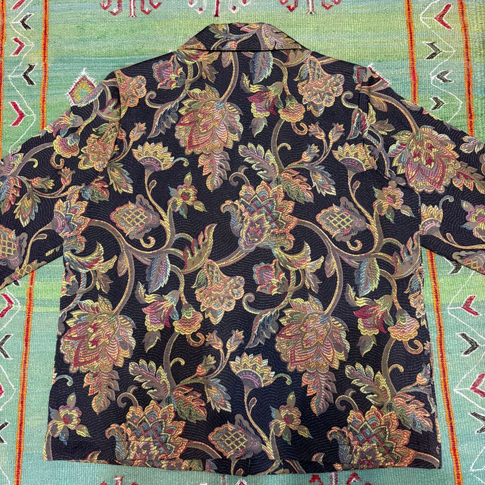 90~00sSusan Graver スーザン グレイヴァー ジャガード織り ゴブラン織り タペストリー ジャケット 花柄 総柄 黒 ヴィンテージ ビンテージ USA アメリカ古着 レディースLサイズ