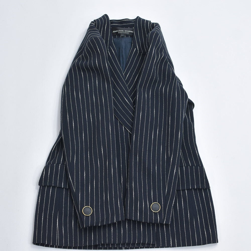80~90s フランス製 JEAN-LOUIS SCHERRER BOUTIQUE ジャン=ルイ・シェレル ブティック ダブルブレスト ピンストライプ テーラードジャケット オールド ネイビー 紺 フレンチヴィンテージ ビンテージ ヨーロッパ古着 レディースM相当