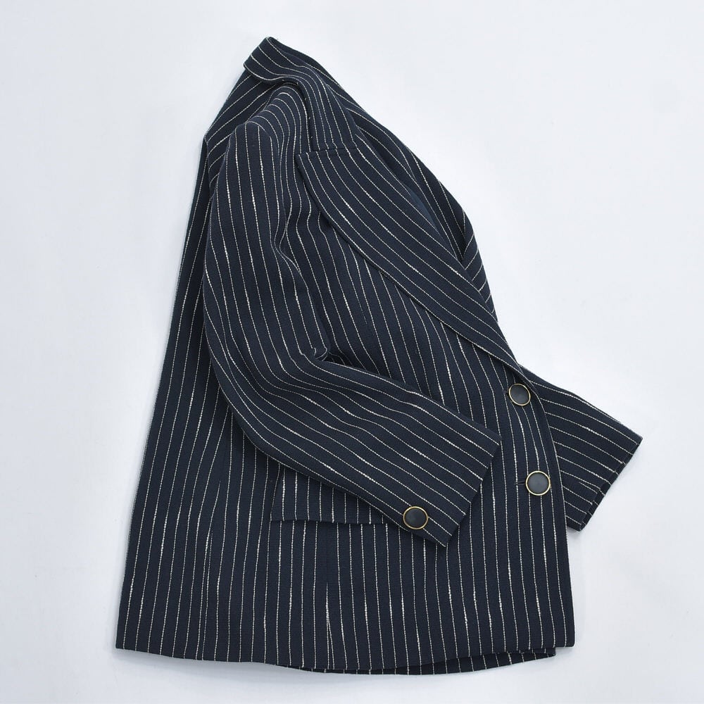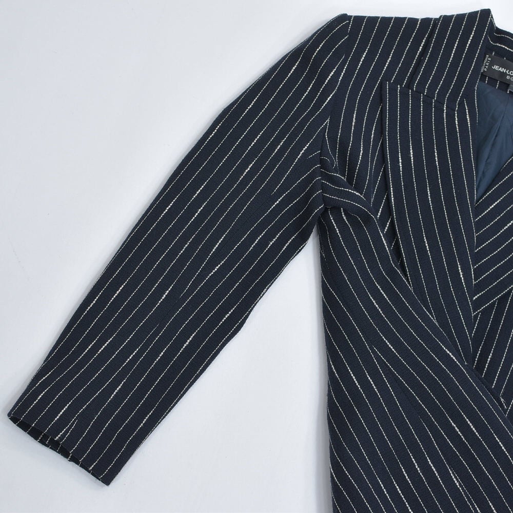 80〜90s フランス製 JEAN-LOUIS SCHERRER BOUTIQUE ジャン=ルイ・シェレル ブティック ダブルブレスト ピンストライプ テーラードジャケット オールド ネイビー 紺 フレンチヴィンテージ ビンテージ ヨーロッパ古着 レディースM相当