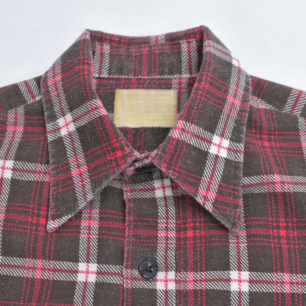 〜70s Vintage コットンフランネル プリントチェック ネルシャツ プリネル フラップ バイアス ワークシャツ アメカジ ブラウン レッド ヴィンテージ ビンテージ 古着 メンズM相当