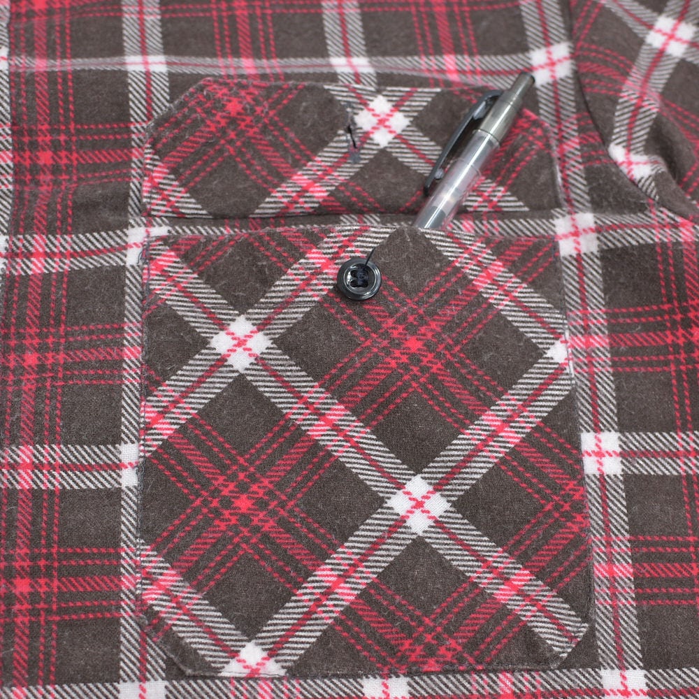 ~70s Vintage コットンフランネル プリントチェック ネルシャツ プリネル フラップ バイアス ワークシャツ アメカジ ブラウン レッド ヴィンテージ ビンテージ 古着 メンズM相当