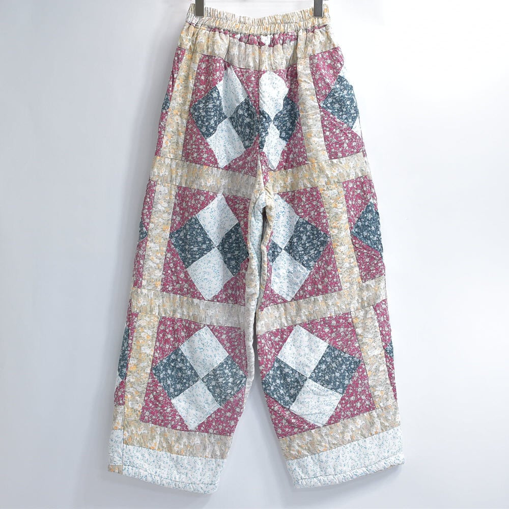 Remake リメイク ハンドメイド デザイン パッチワーク キルト ルーズシルエット イージーパンツ 再構築 ツギハギ 小花柄 ユニセックスデザイン W64~102cm