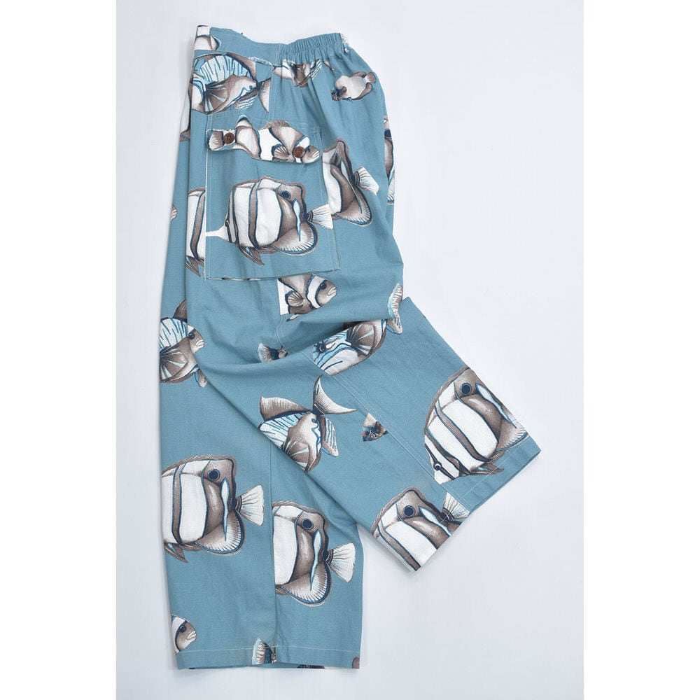 海王類、、、ではなく熱帯魚が描かれたクロスをボトムスに再構築したリメイクパンツ