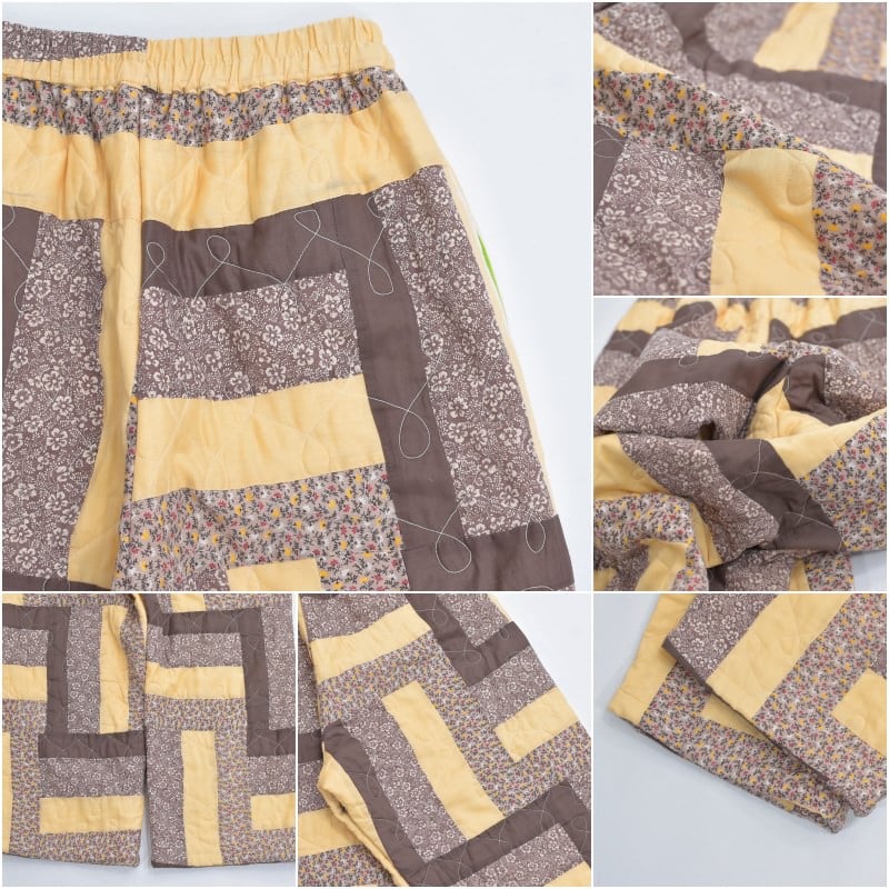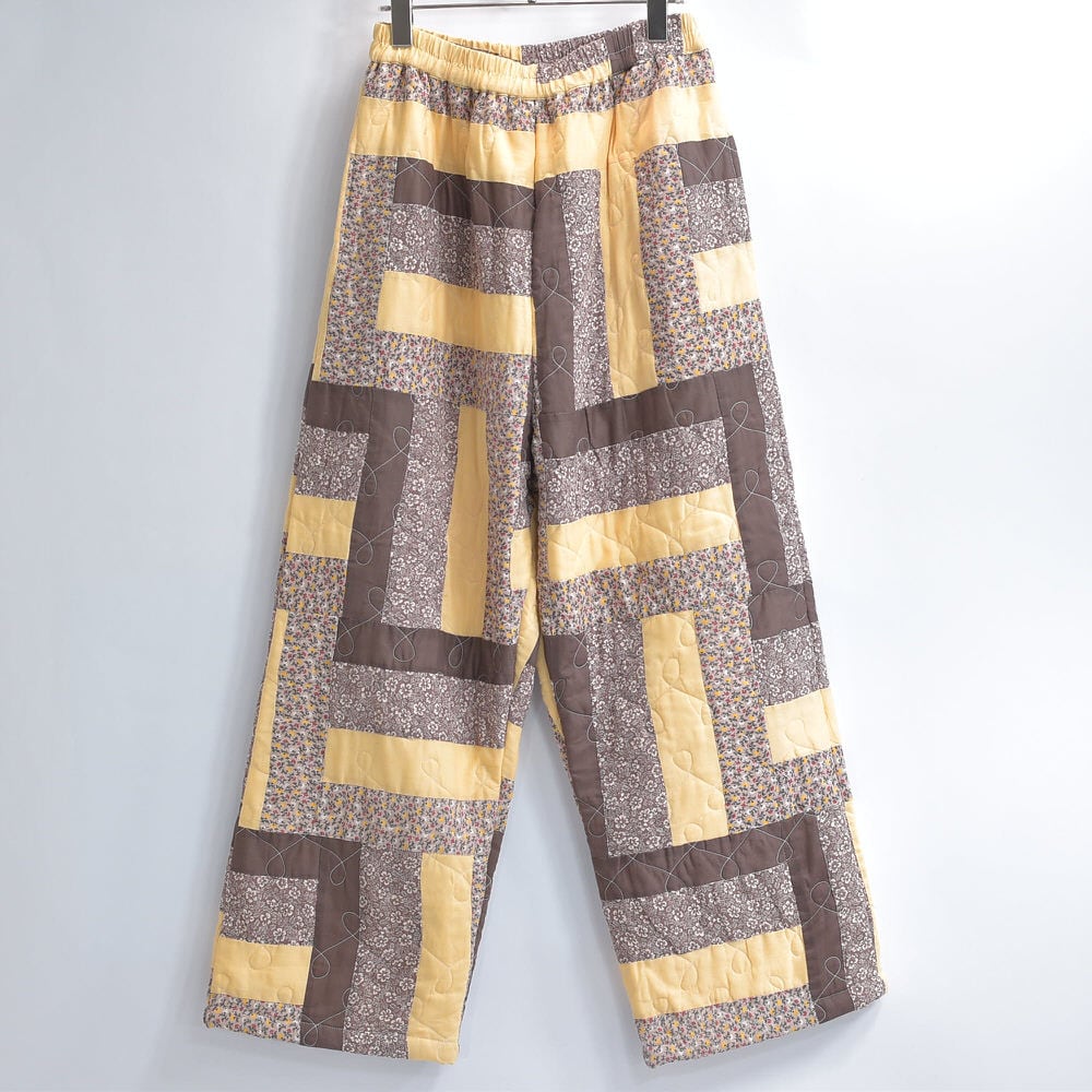 Remake リメイク ハンドメイド デザイン パッチワーク キルト ルーズシルエット イージーパンツ 再構築 ツギハギ 小花柄 ユニセックスデザイン W66~101cm