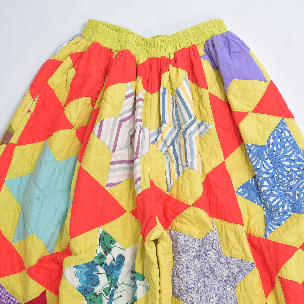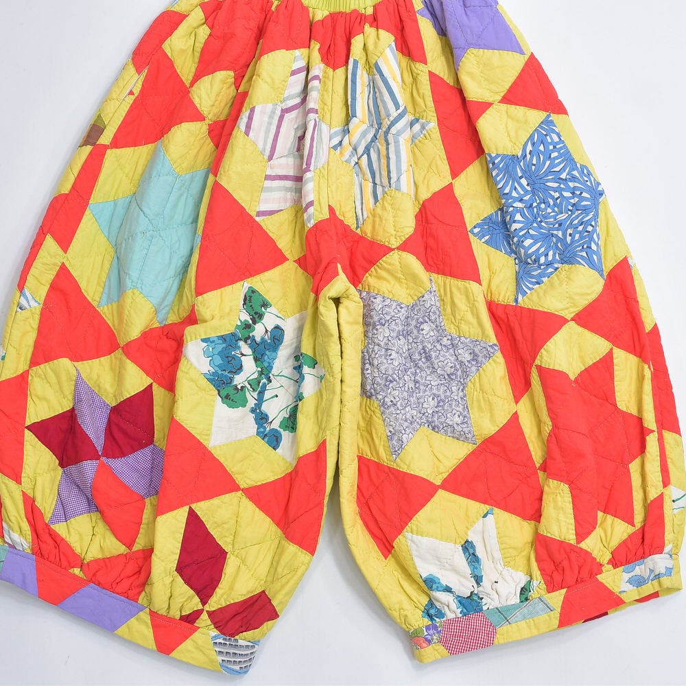Remake リメイク ヴィンテージ パッチワークキルト ハンドメイド デザイン スーパーバルーンシルエット イージーパンツ 再構築 ツギハギ コットン 六芒星 ビンテージ W62〜100cm