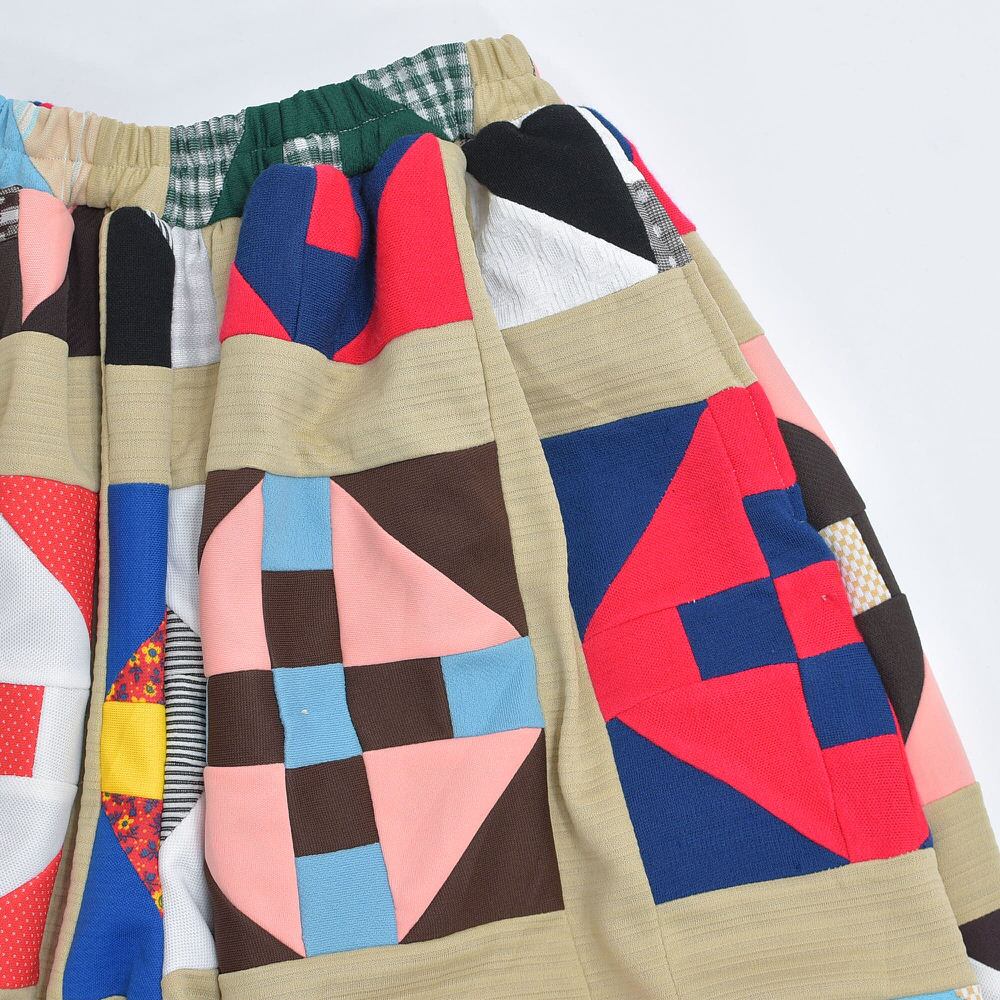 Remake リメイク ハンドメイド モザイク パターン パッチワーク デザイン ダブルフェイス スーパーバルーンシルエット イージーパンツ 再構築 ツギハギ 裏地付き ユニセックスサイズ W68~106cm
