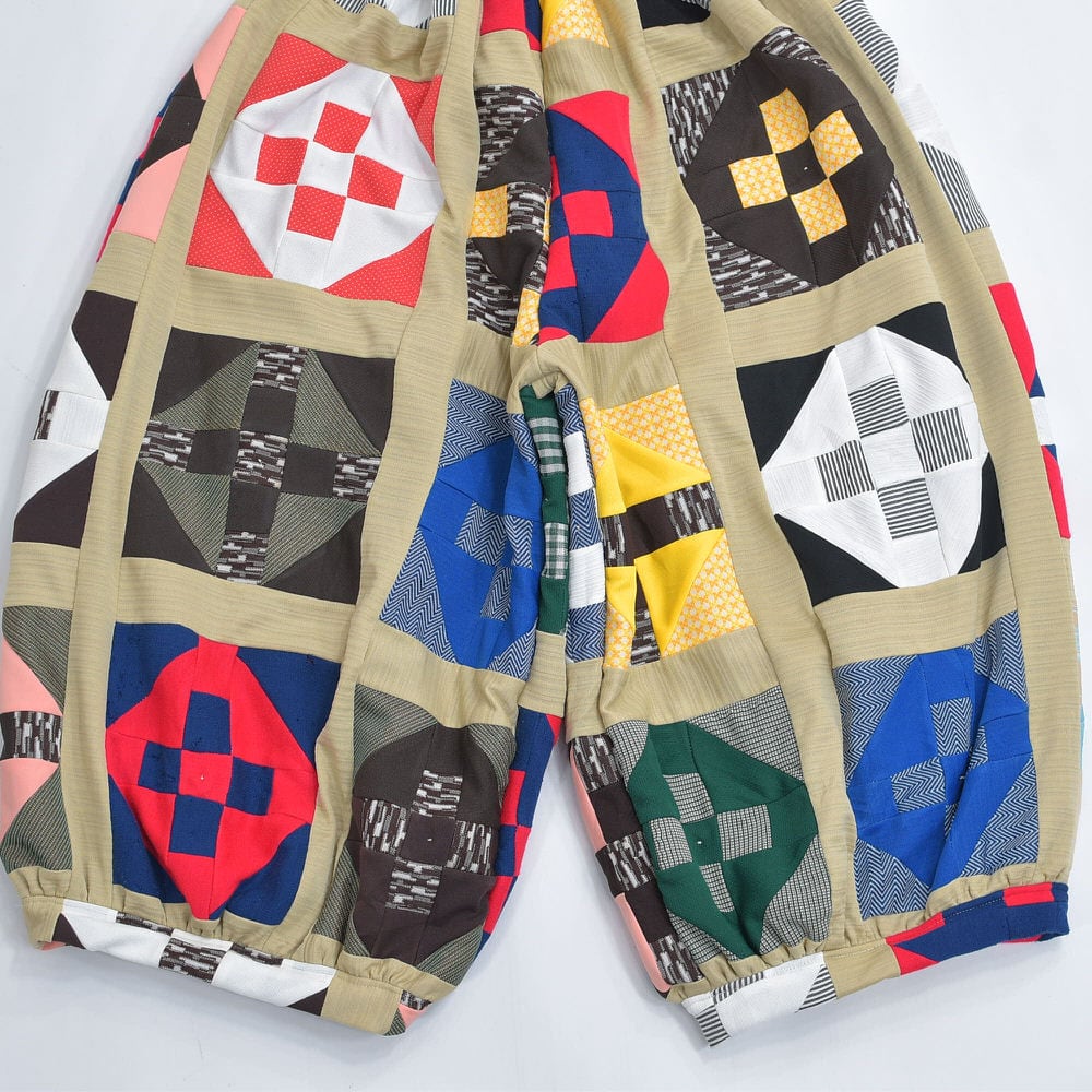 Remake リメイク ハンドメイド モザイク パターン パッチワーク デザイン ダブルフェイス スーパーバルーンシルエット イージーパンツ 再構築 ツギハギ 裏地付き ユニセックスサイズ W68〜106cm