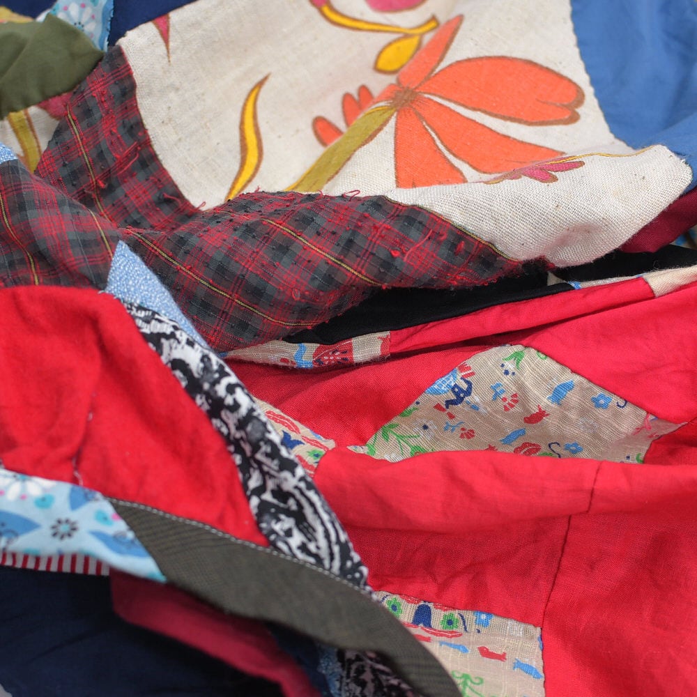 アイテムの仕様上、裏地が張っていないデザインになり、パッチワークの裏側がそのままなのはご了承下さい
