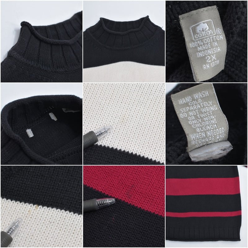 90s RN13711 May Dept モックネック デザイン ボーダーニット セーター 3トーンカラー ヴィンテージ ビンテージ 古着 レディース2Xサイズ