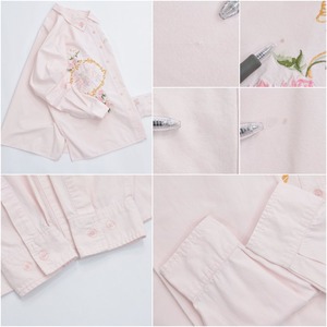 90s~ Art design エンジェル フラワー アンティーク調 デザイン 刺繍 プリント コットンシャツ 天使 薔薇 ローズ 長袖 ルーズシルエット ペールピンク ヴィンテージ ビンテージ USA アメリカ古着 レディースXL相当