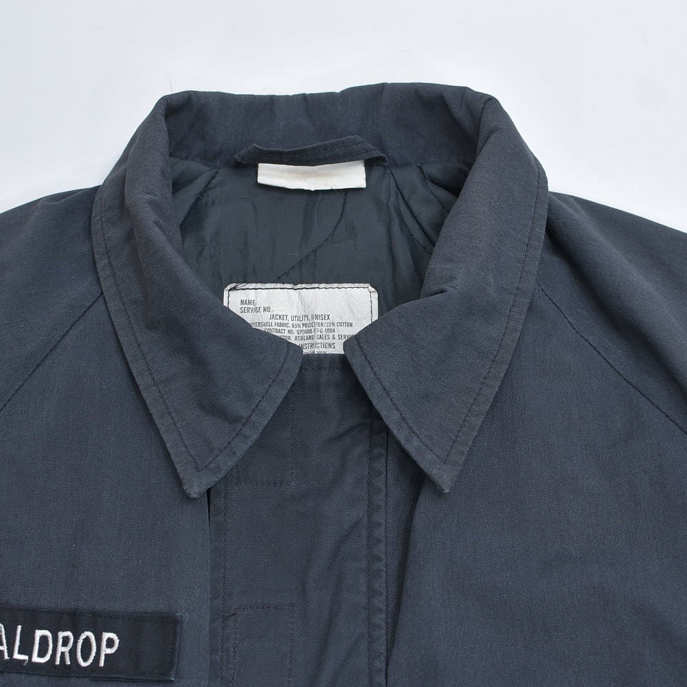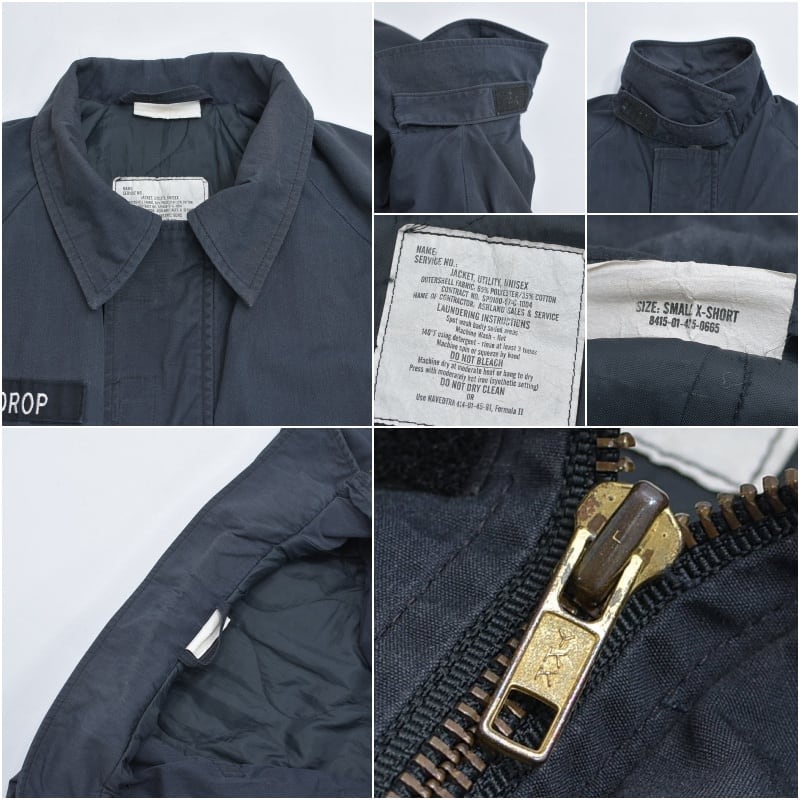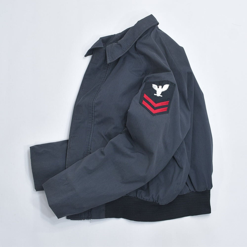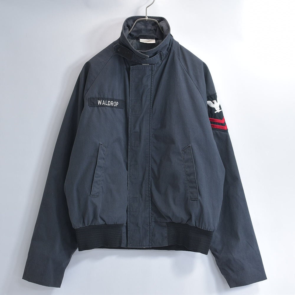 90s U.S.NAVY 米海軍 ASHLAND社製 ユーティリティジャケット シップボードジャケット 階級章 ワッペン ネームタグ YKKジップ スタンドカラー フェードネイビー ヴィンテージ ビンテージ 古着 メンズS×XS