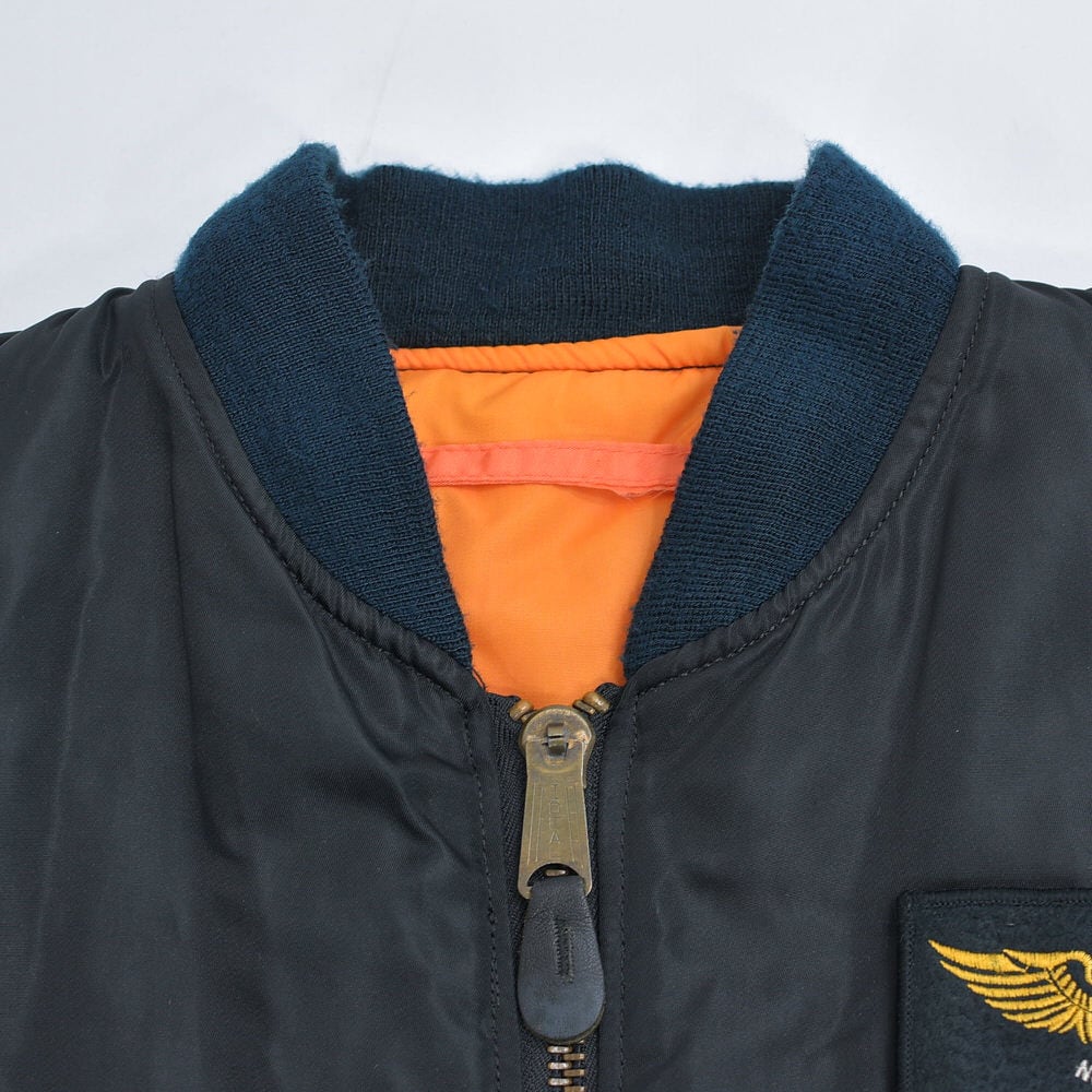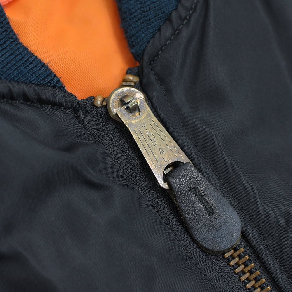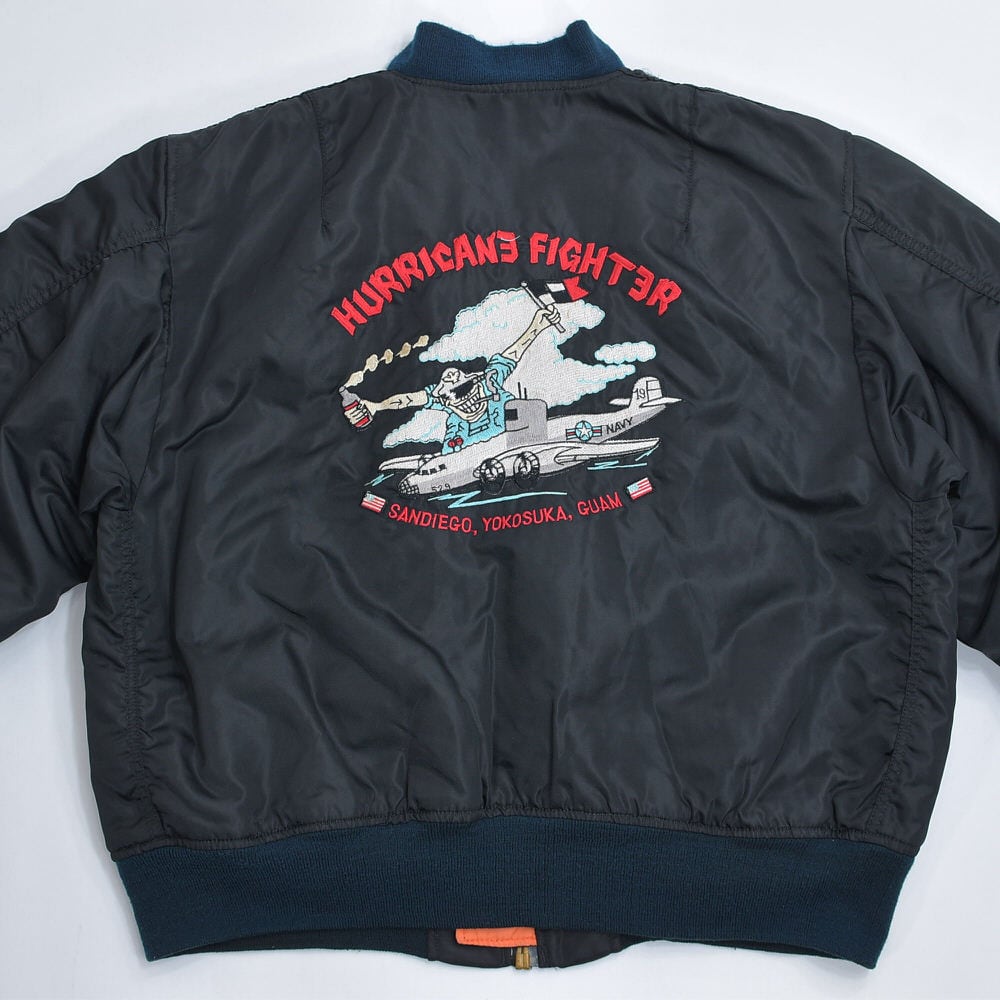 80〜90s MA-1 フライトジャケット フライヤーズ マーワン U.S. NAVY 刺繍 HURRICANE FIGHTER スカル IDEALジップ ブラック ヴィンテージ ビンテージ 古着 メンズLサイズ