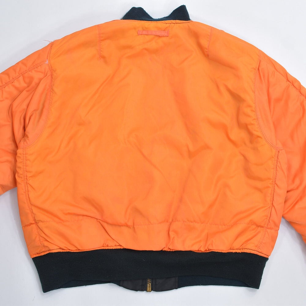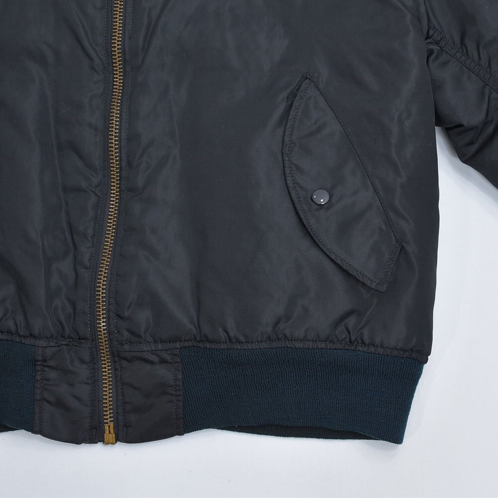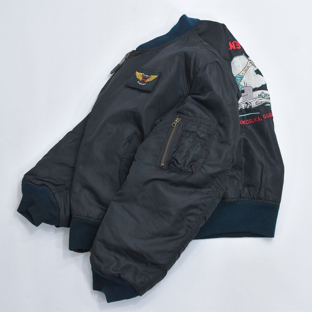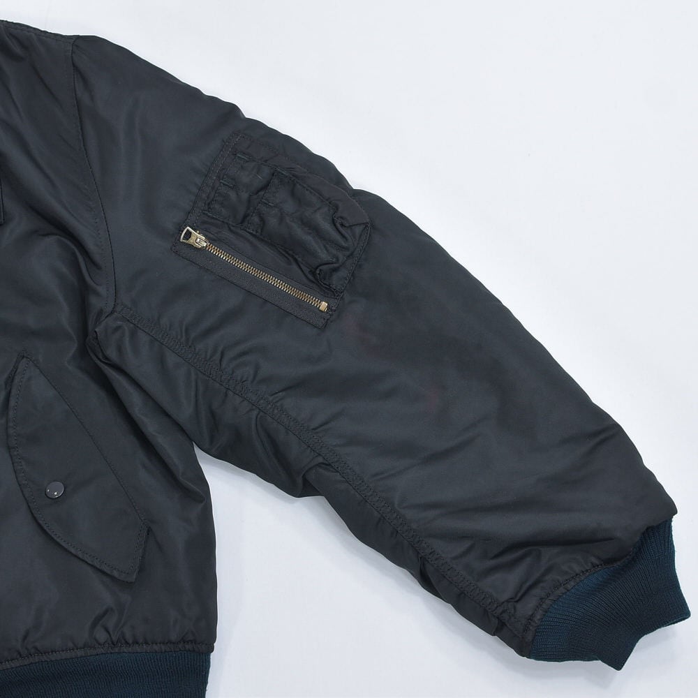 80〜90s MA-1 フライトジャケット フライヤーズ マーワン U.S. NAVY 刺繍 HURRICANE FIGHTER スカル IDEALジップ ブラック ヴィンテージ ビンテージ 古着 メンズLサイズ