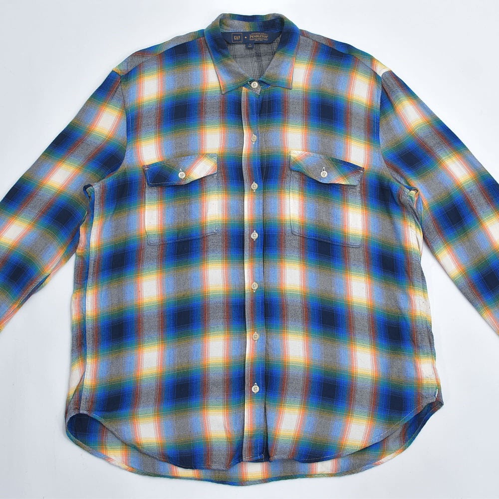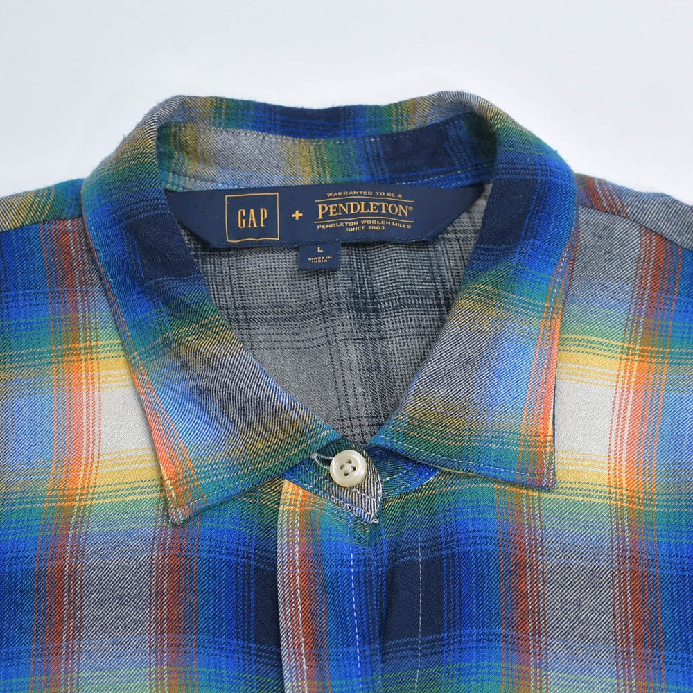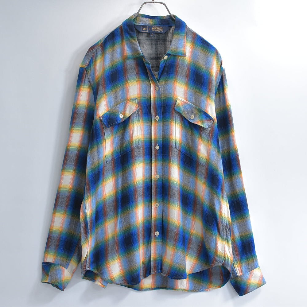 2018 GAP PENDLETON ギャップ ペンドルトン オンブレチェック柄 レーヨンシャツ ダブルネーム ヴィンテージ ビンテージ USA アメリカ古着 レディースXL相当