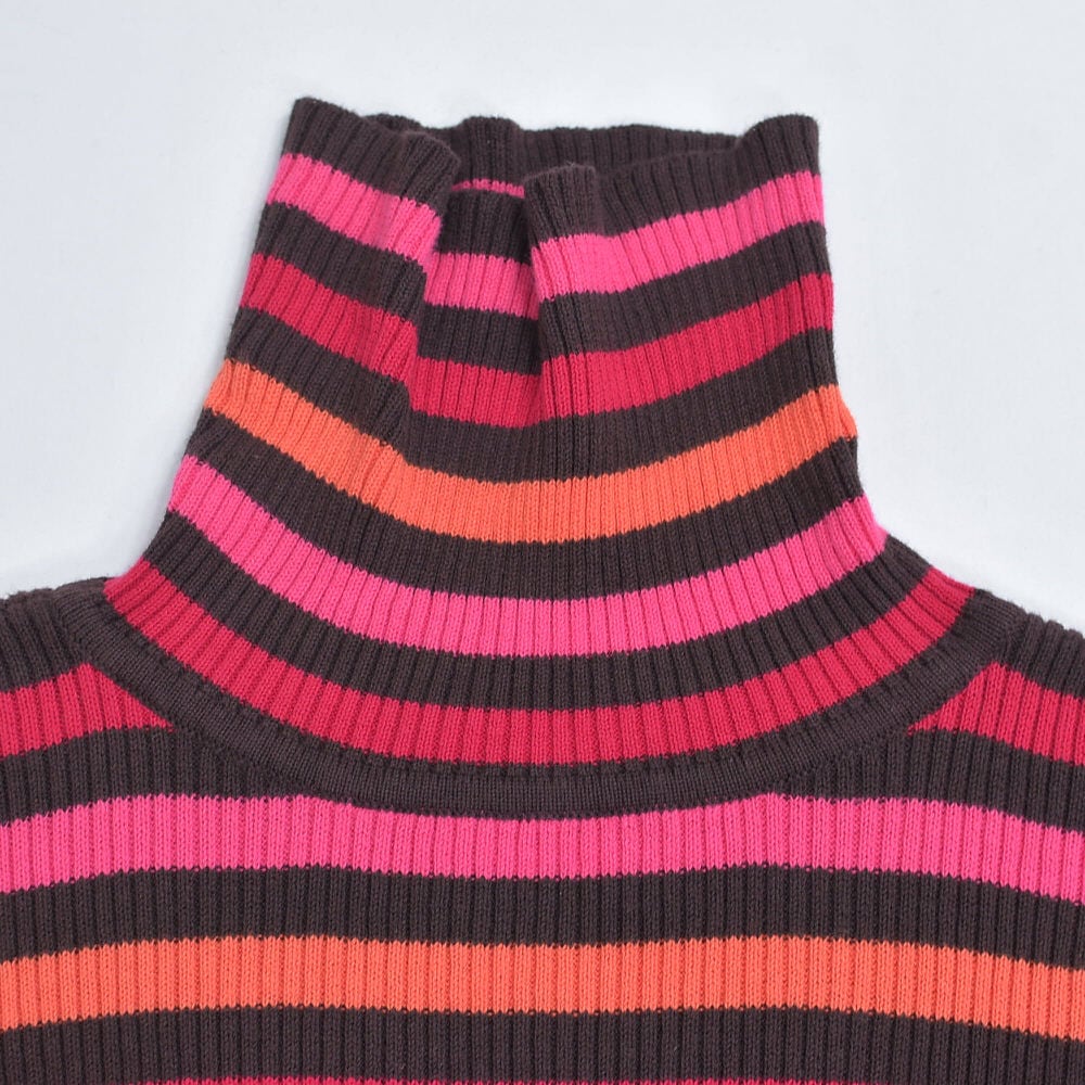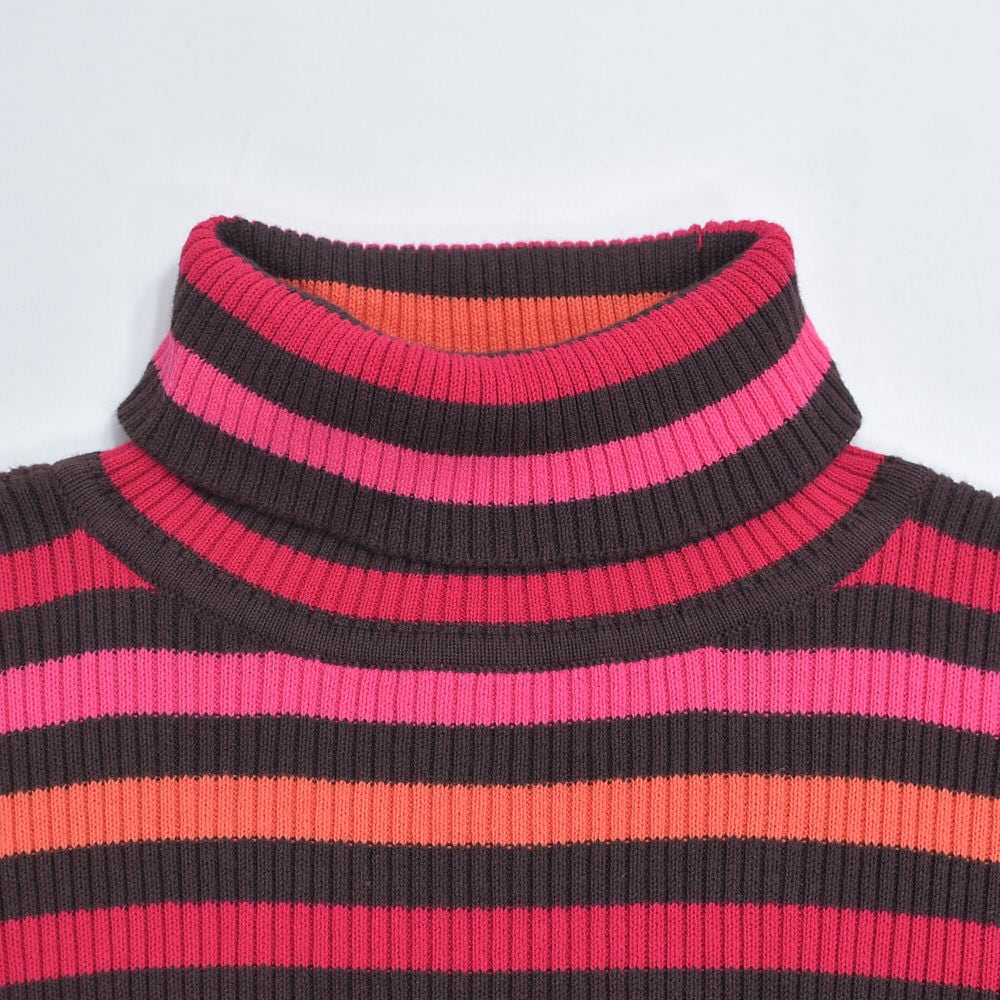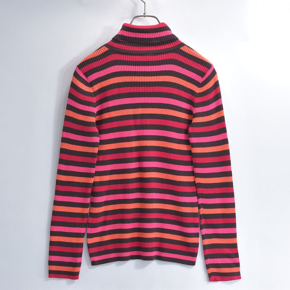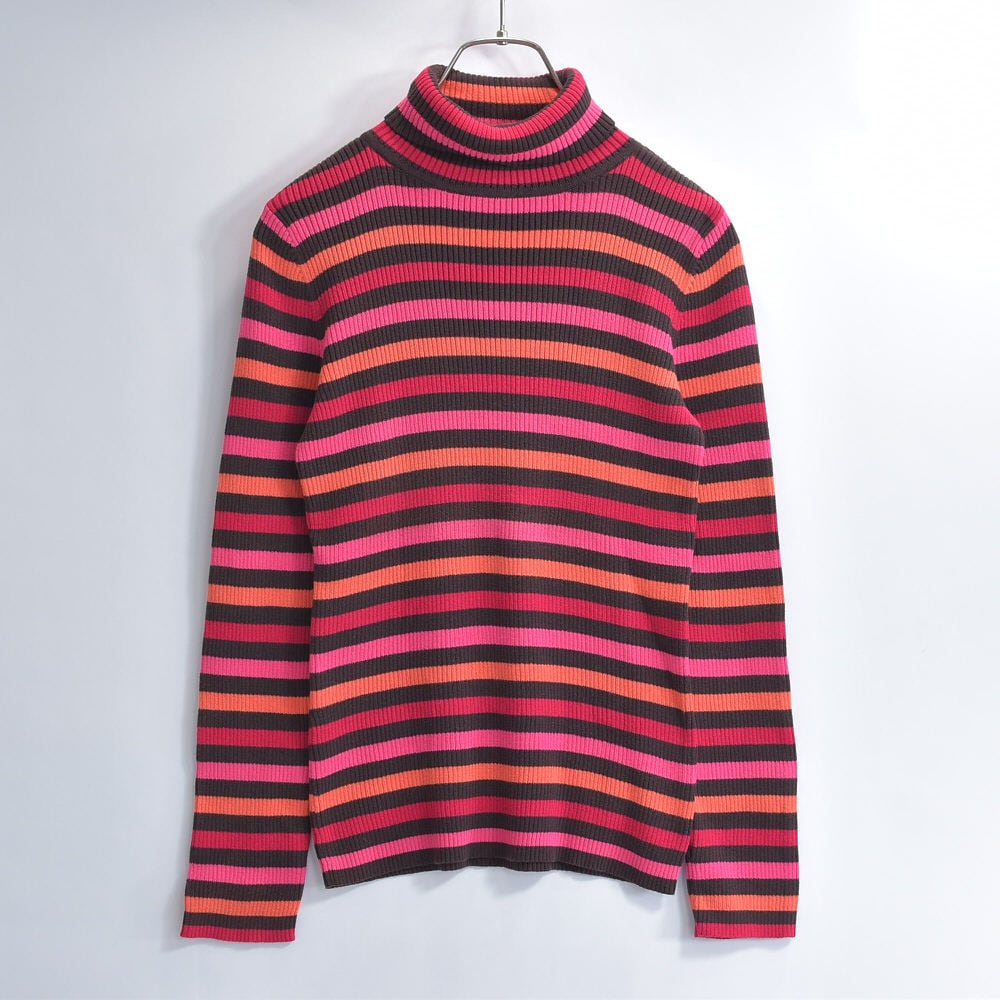 2000年代 Y2K GAP ギャップ タートルネック リブニット ストレッチ マルチボーダー カットソー セーター ピンク レッド ヴィンテージ ビンテージ USA アメリカ古着 レディースS相当