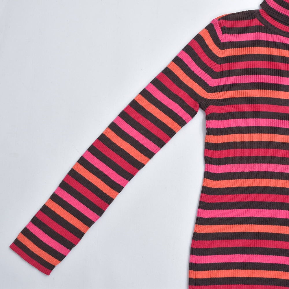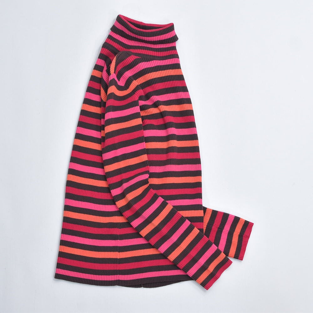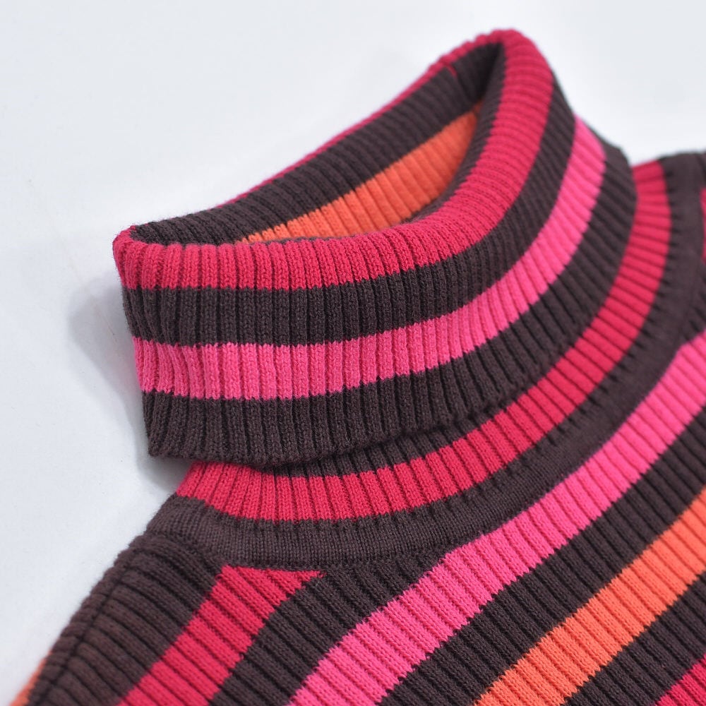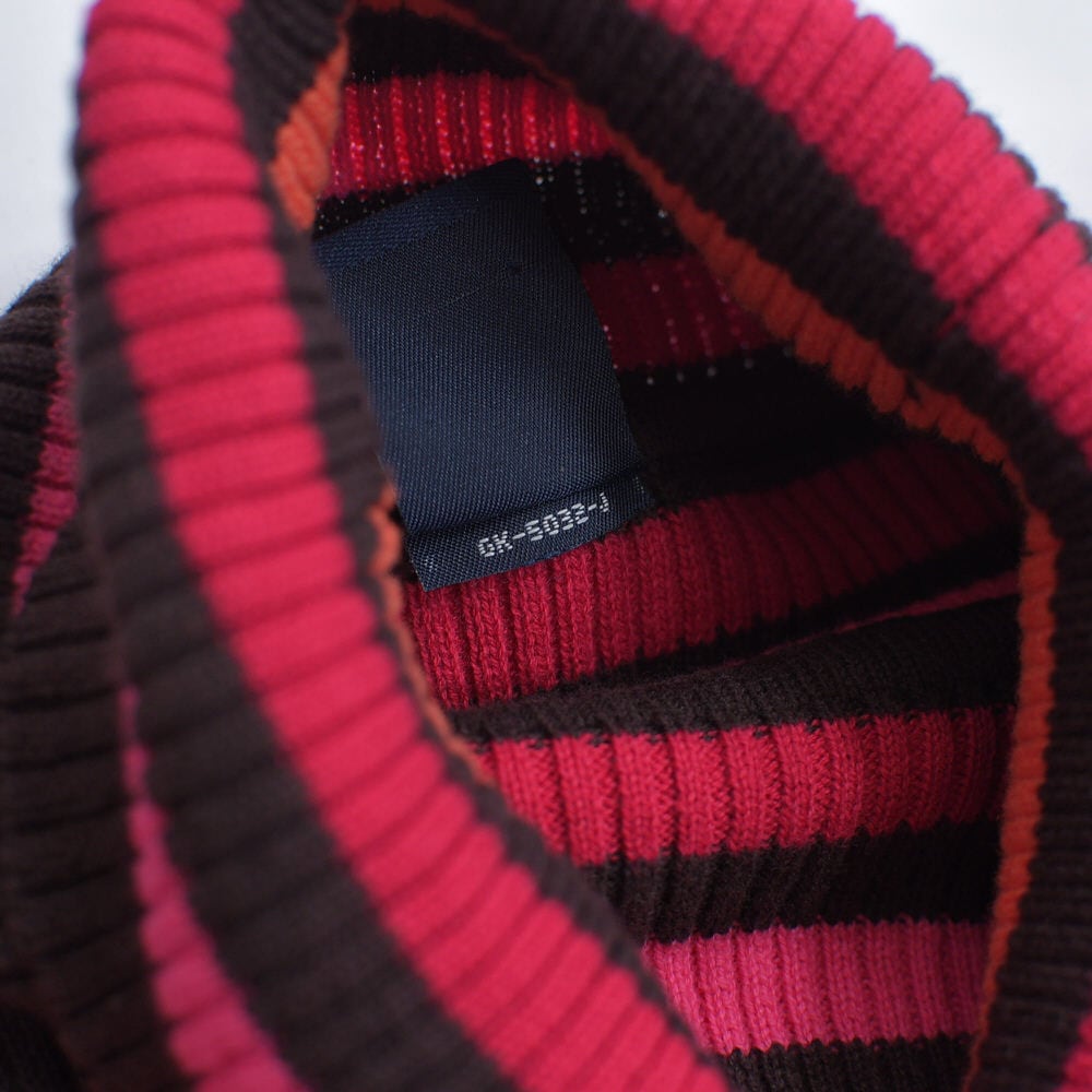 2000年代 Y2K GAP ギャップ タートルネック リブニット ストレッチ マルチボーダー カットソー セーター ピンク レッド ヴィンテージ ビンテージ USA アメリカ古着 レディースS相当