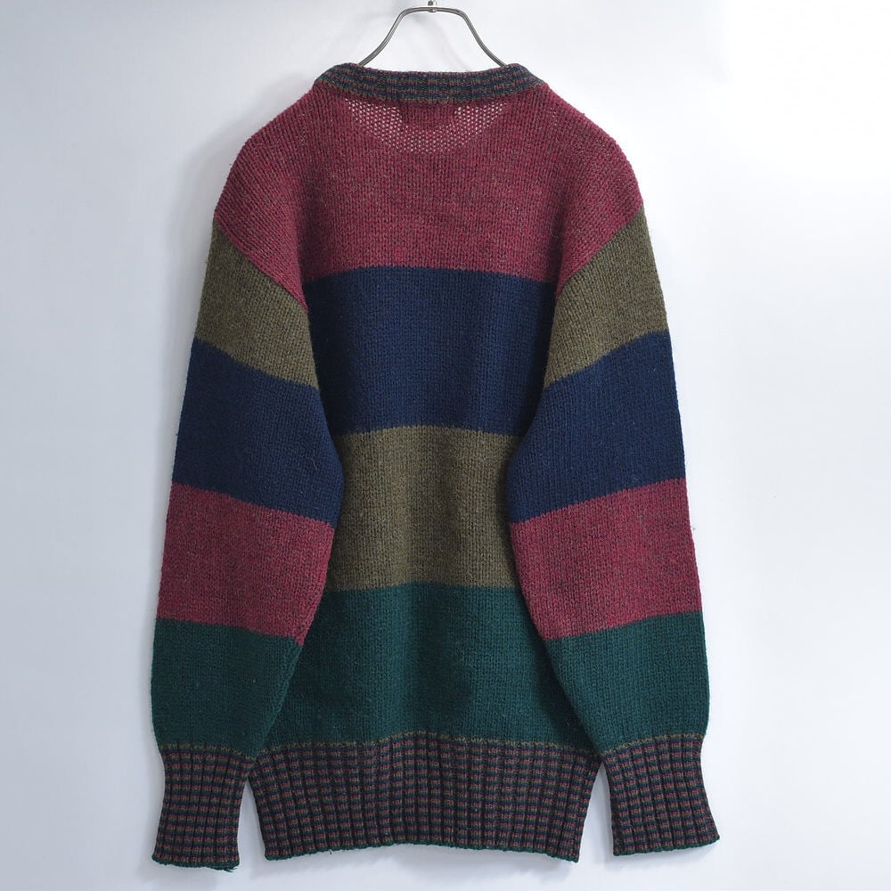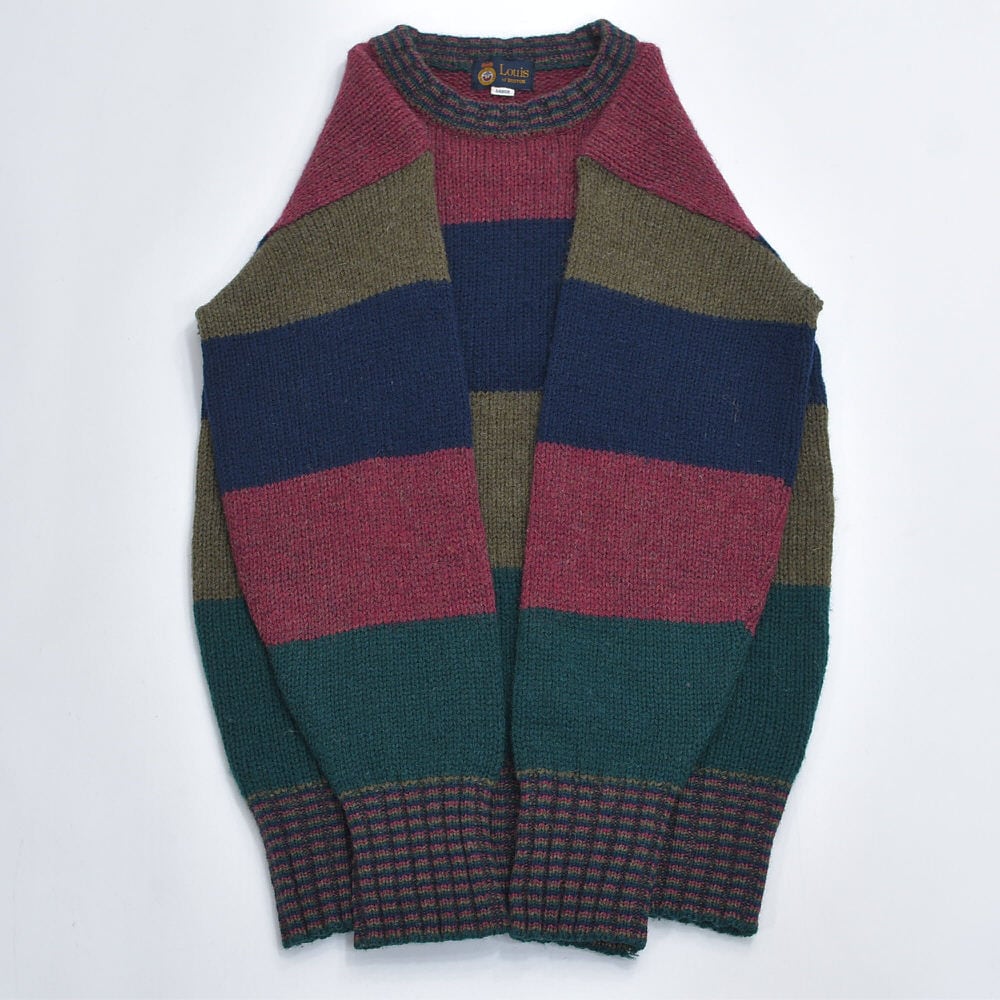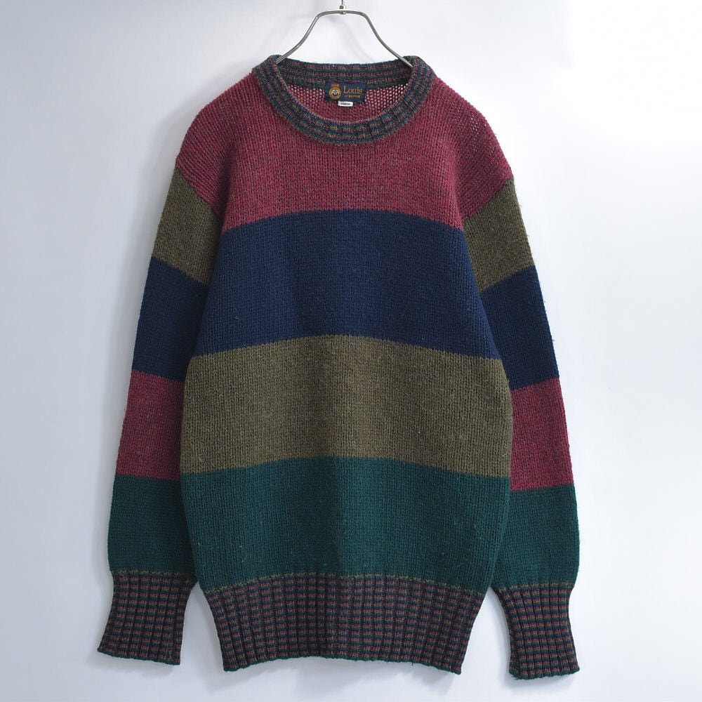 80~90s Louis of BOSTON ルイス オブ ボストン クルーネック マルチボーダー プルオーバーニット セーター ブロックボーダー デザインリブ マルチカラー ヴィンテージ ビンテージ USA アメリカ古着 メンズLサイズ