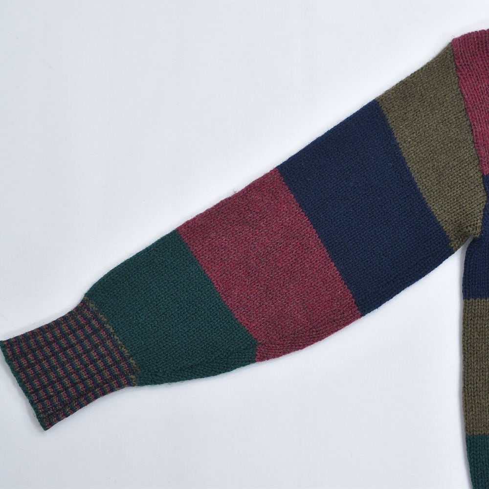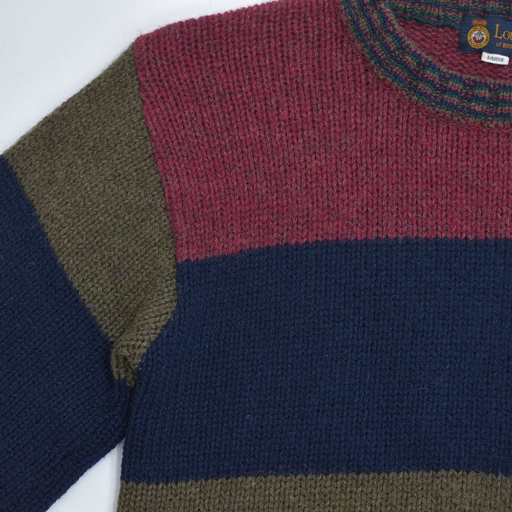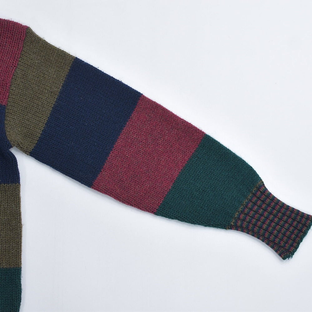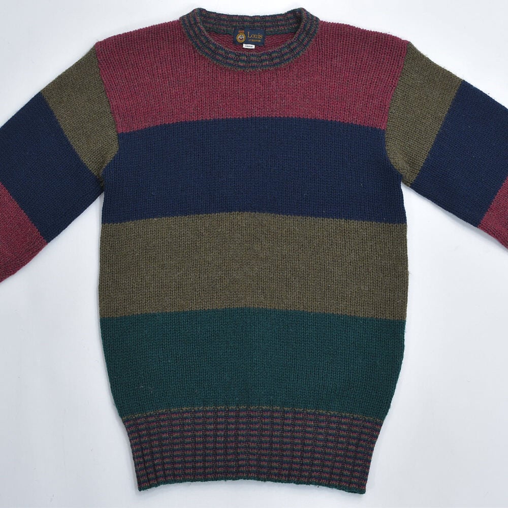 80~90s Louis of BOSTON ルイス オブ ボストン クルーネック マルチボーダー プルオーバーニット セーター ブロックボーダー デザインリブ マルチカラー ヴィンテージ ビンテージ USA アメリカ古着 メンズLサイズ