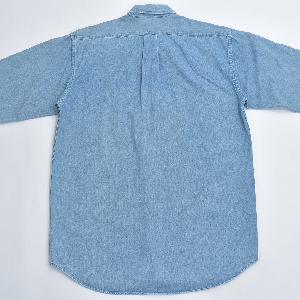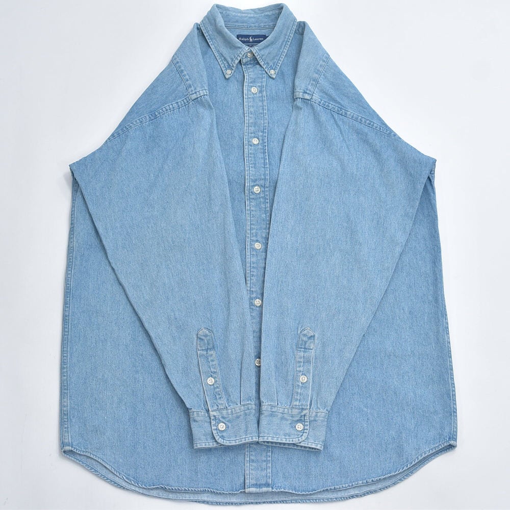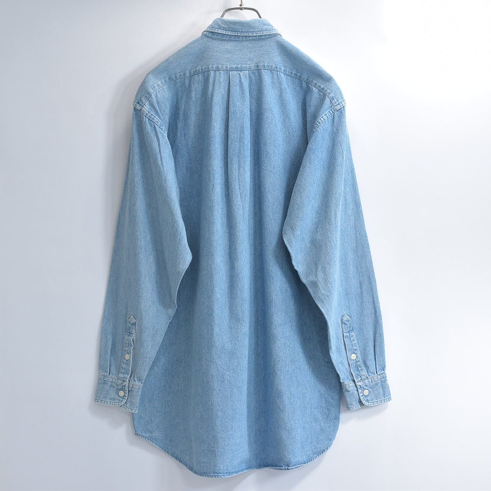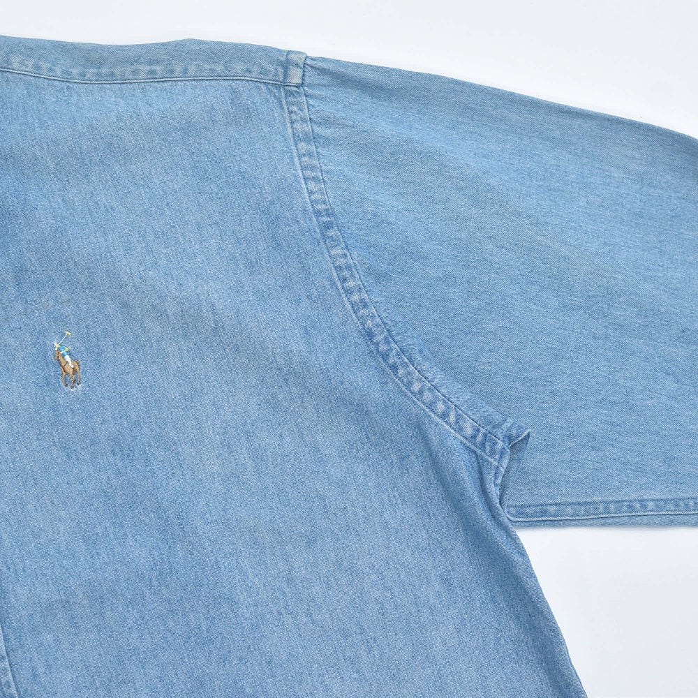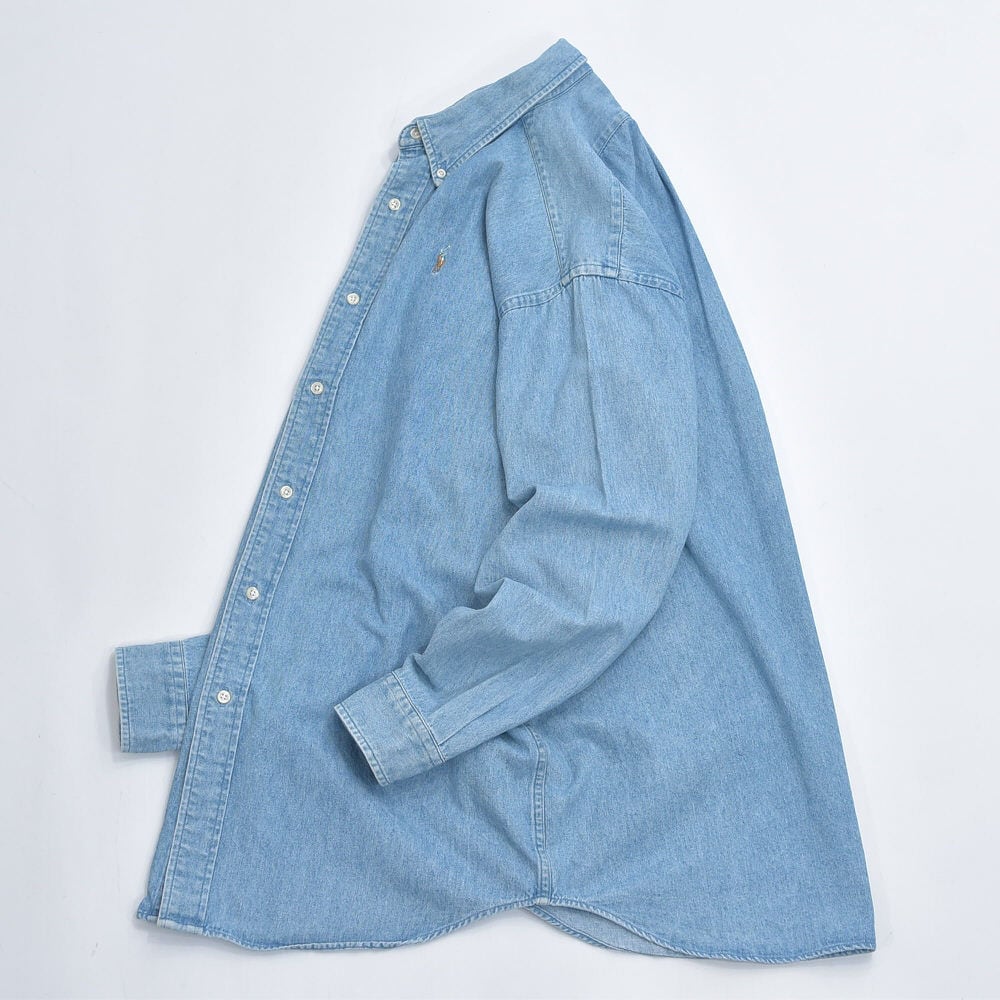 90〜00s Ralph Lauren ラルフローレン デニム ボタンダウンシャツ ポニーロゴ 刺繍 長袖シャツ ワークシャツ アメカジ プレッピー 青 ヴィンテージ ビンテージ USA アメリカ古着 メンズXLサイズ