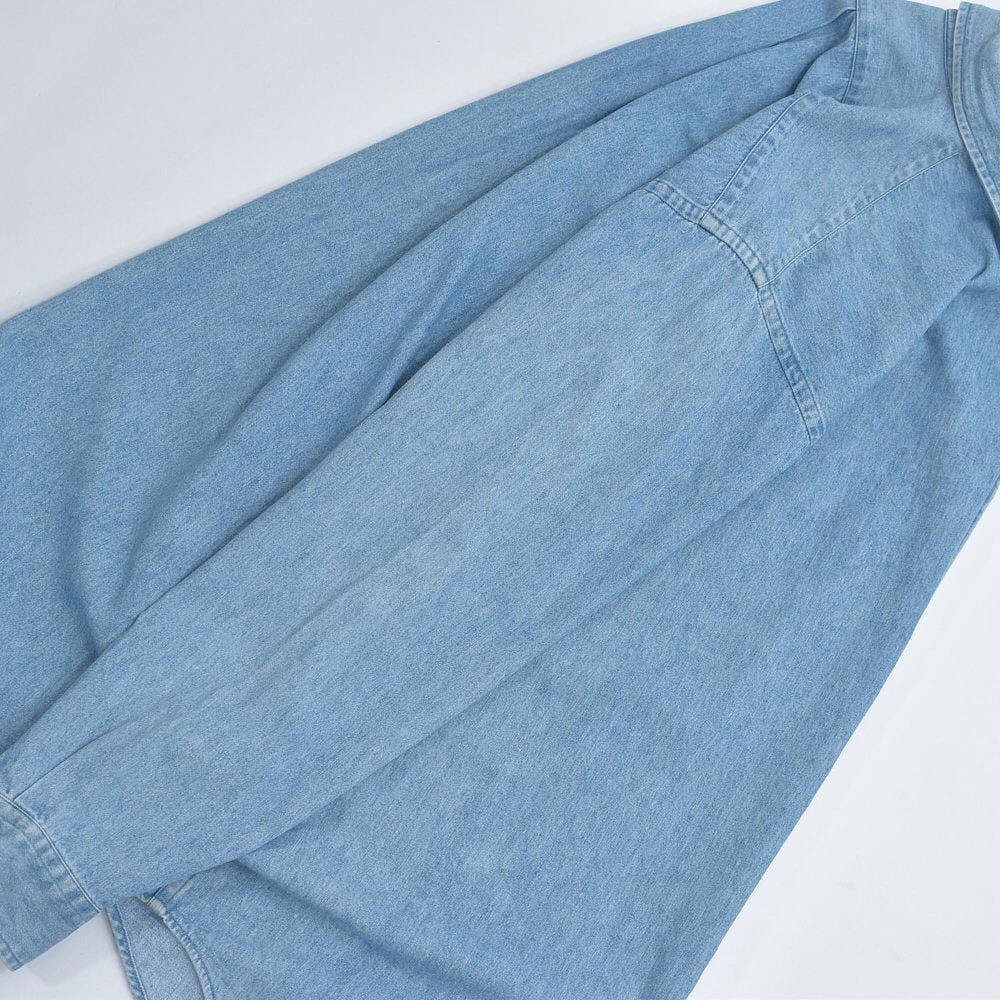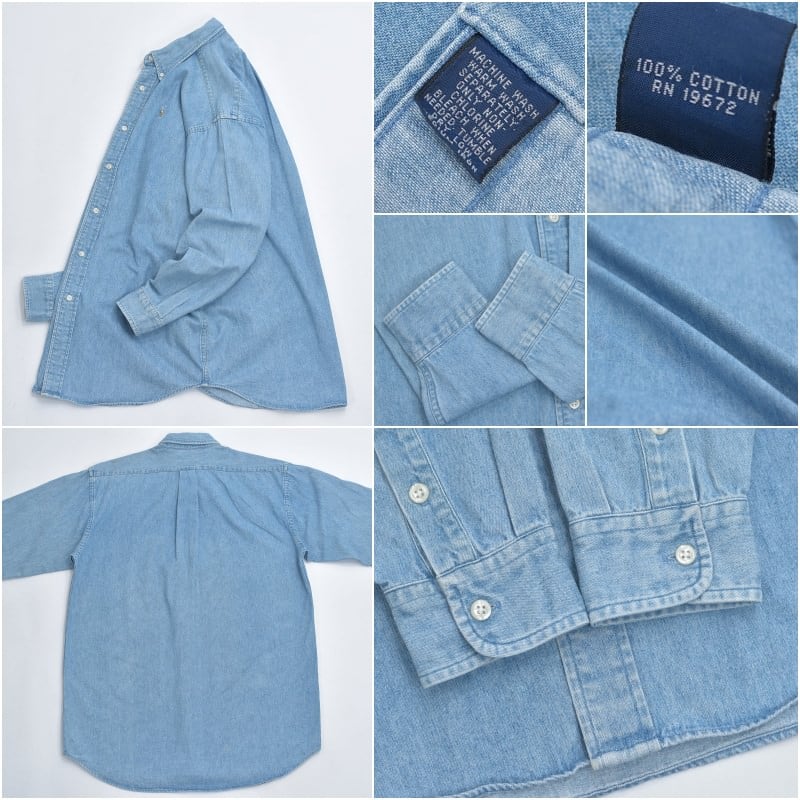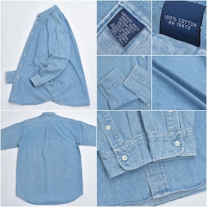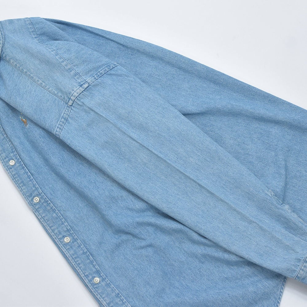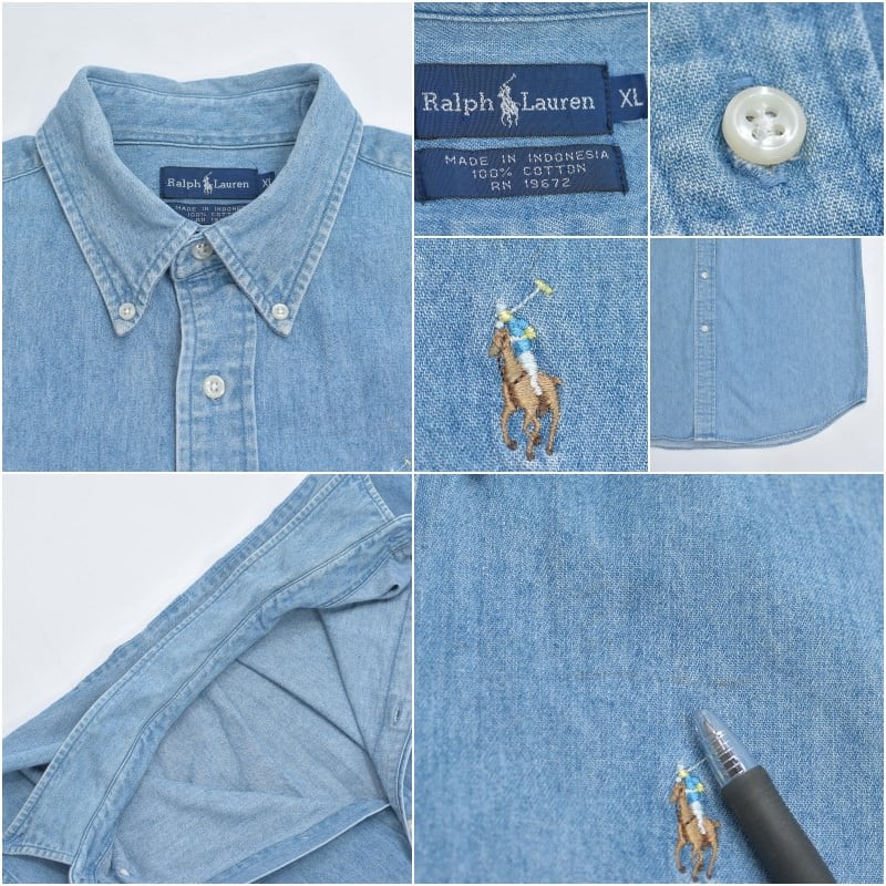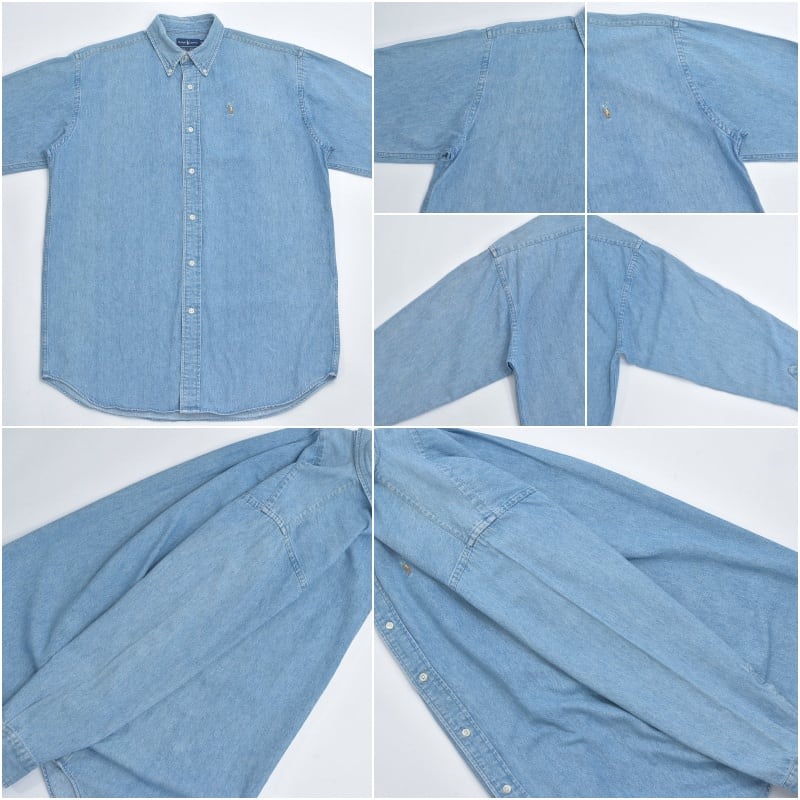 90〜00s Ralph Lauren ラルフローレン デニム ボタンダウンシャツ ポニーロゴ 刺繍 長袖シャツ ワークシャツ アメカジ プレッピー 青 ヴィンテージ ビンテージ USA アメリカ古着 メンズXLサイズ