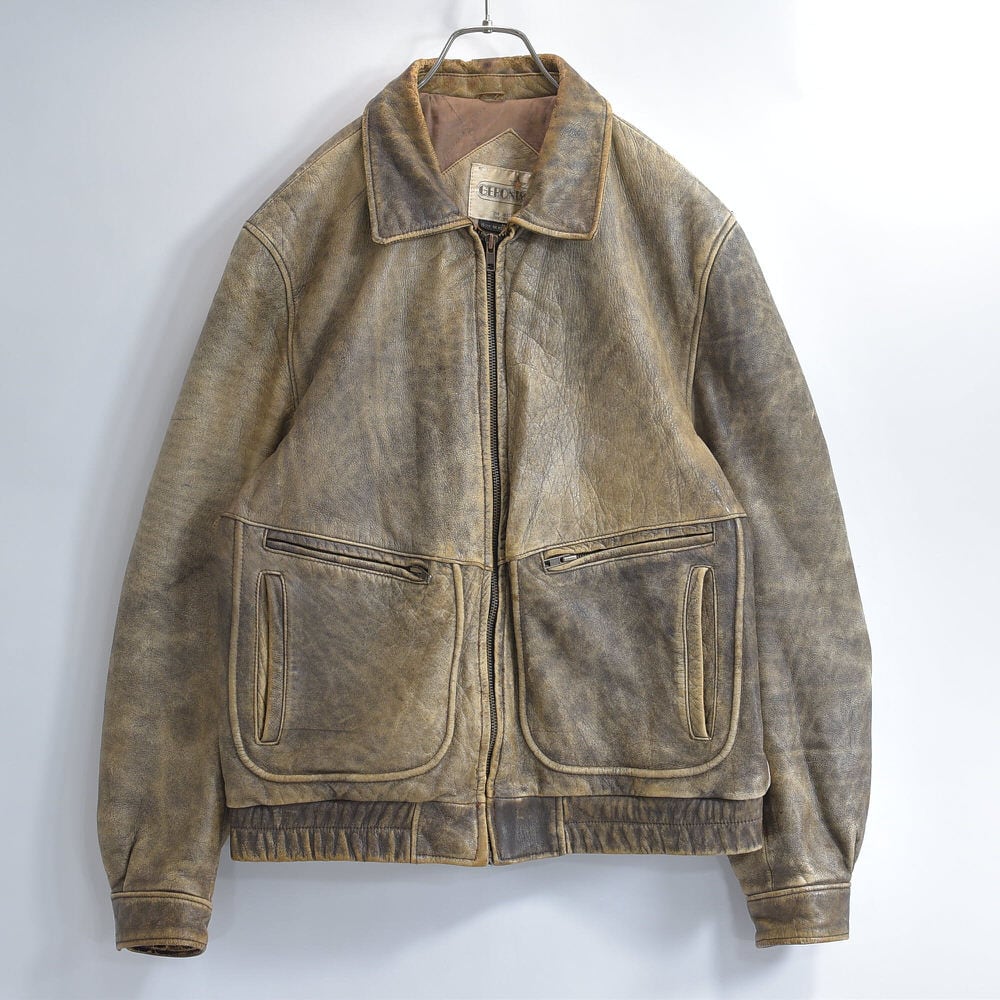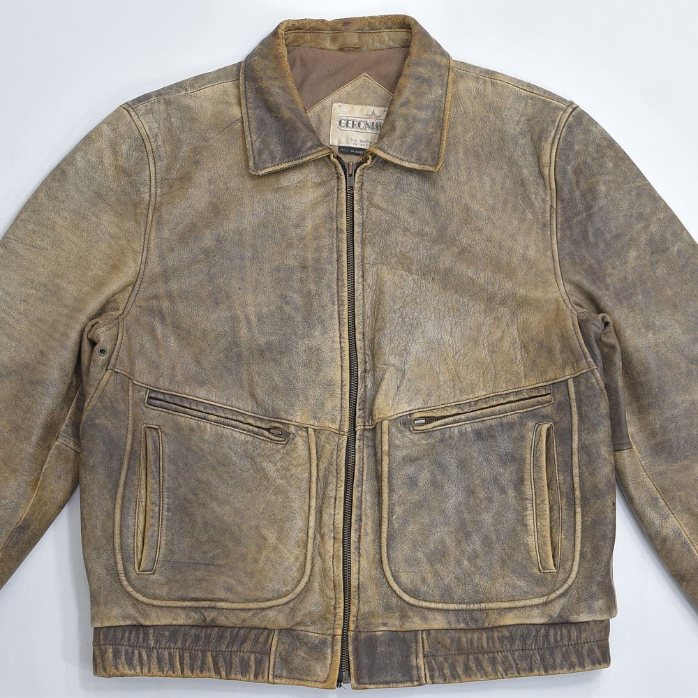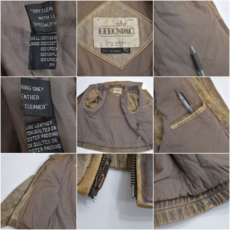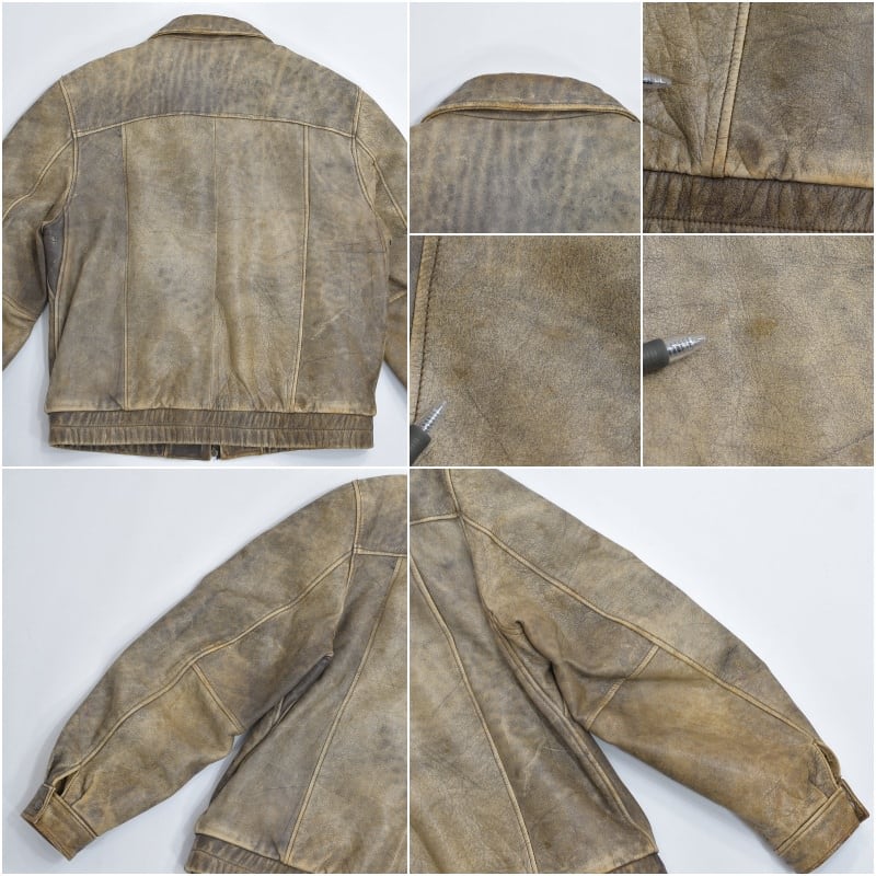 雰囲気系 80〜90s GERONIMO ジェロニモ ナチュラルエイジング レザージャケット 革ジャン ブルゾン YKKジップ ブラウン ヴィンテージ ビンテージ 古着 メンズL相当
