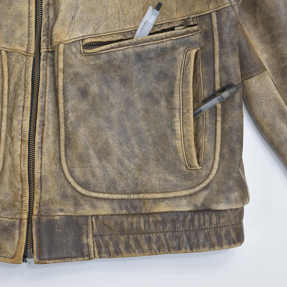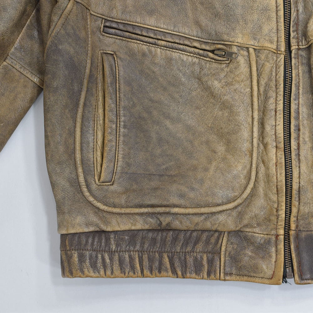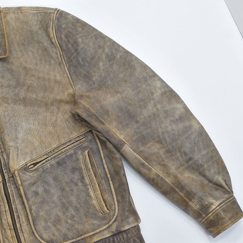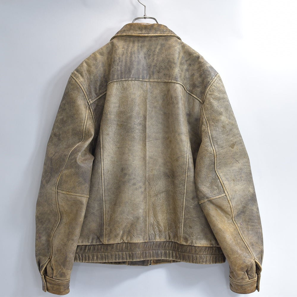 雰囲気系 80〜90s GERONIMO ジェロニモ ナチュラルエイジング レザージャケット 革ジャン ブルゾン YKKジップ ブラウン ヴィンテージ ビンテージ 古着 メンズL相当