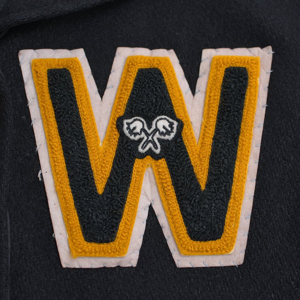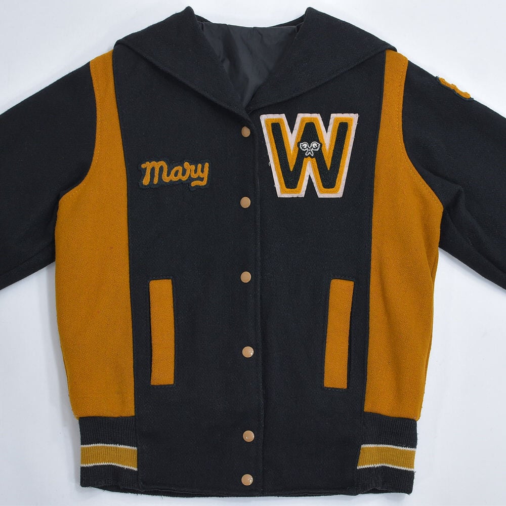 50〜60s USA製 RIPON リポン セーラーカラー リバーシブル アワードジャケット シニールワッペン スタジャン ブラック マスタード ヴィンテージ ビンテージ アメリカ古着 レディースL相当
