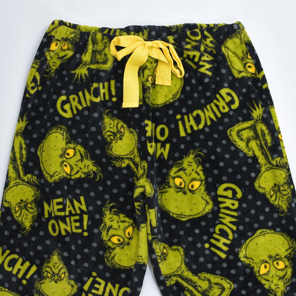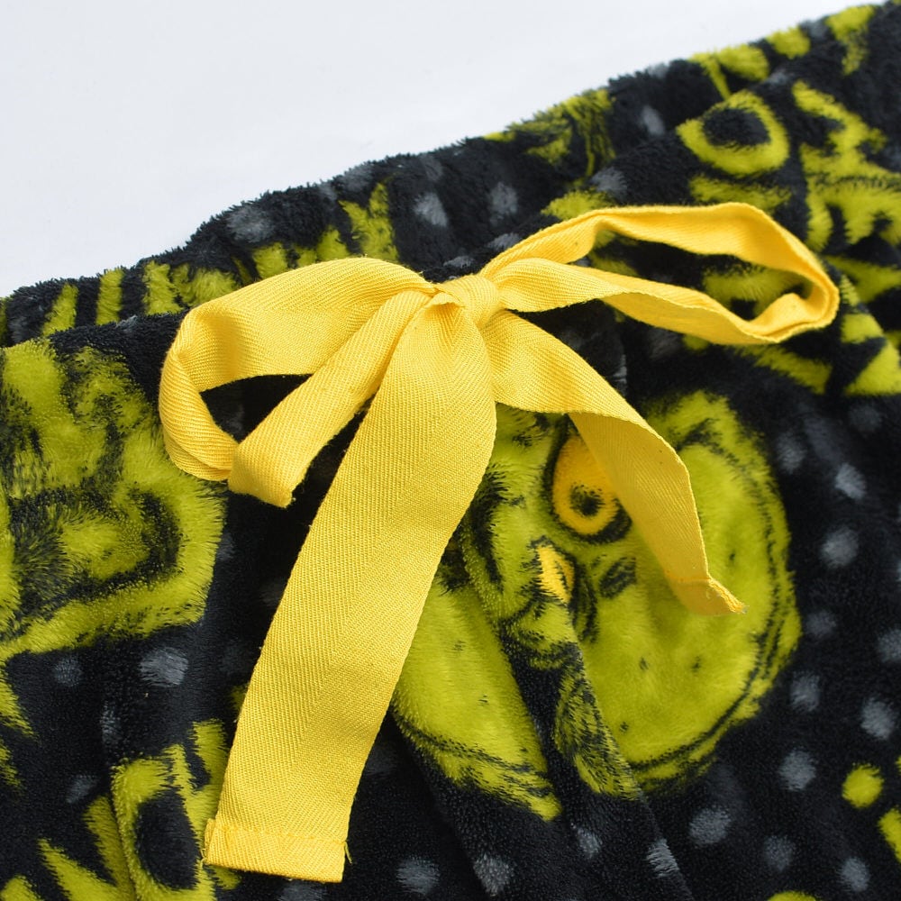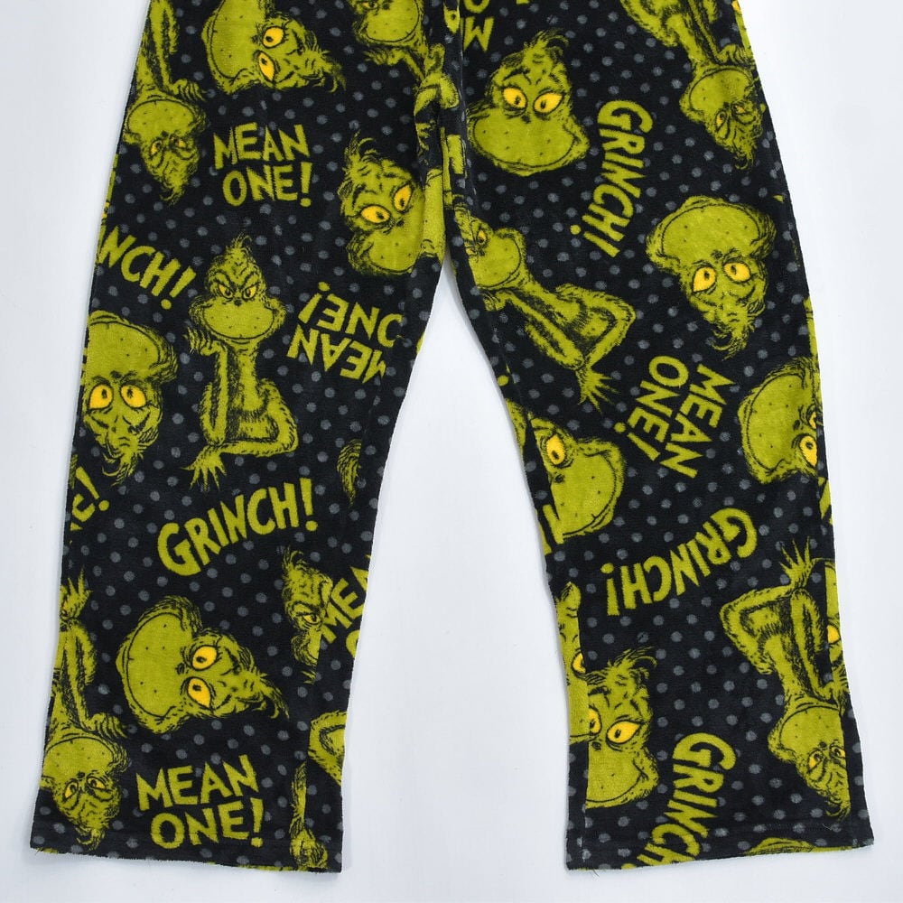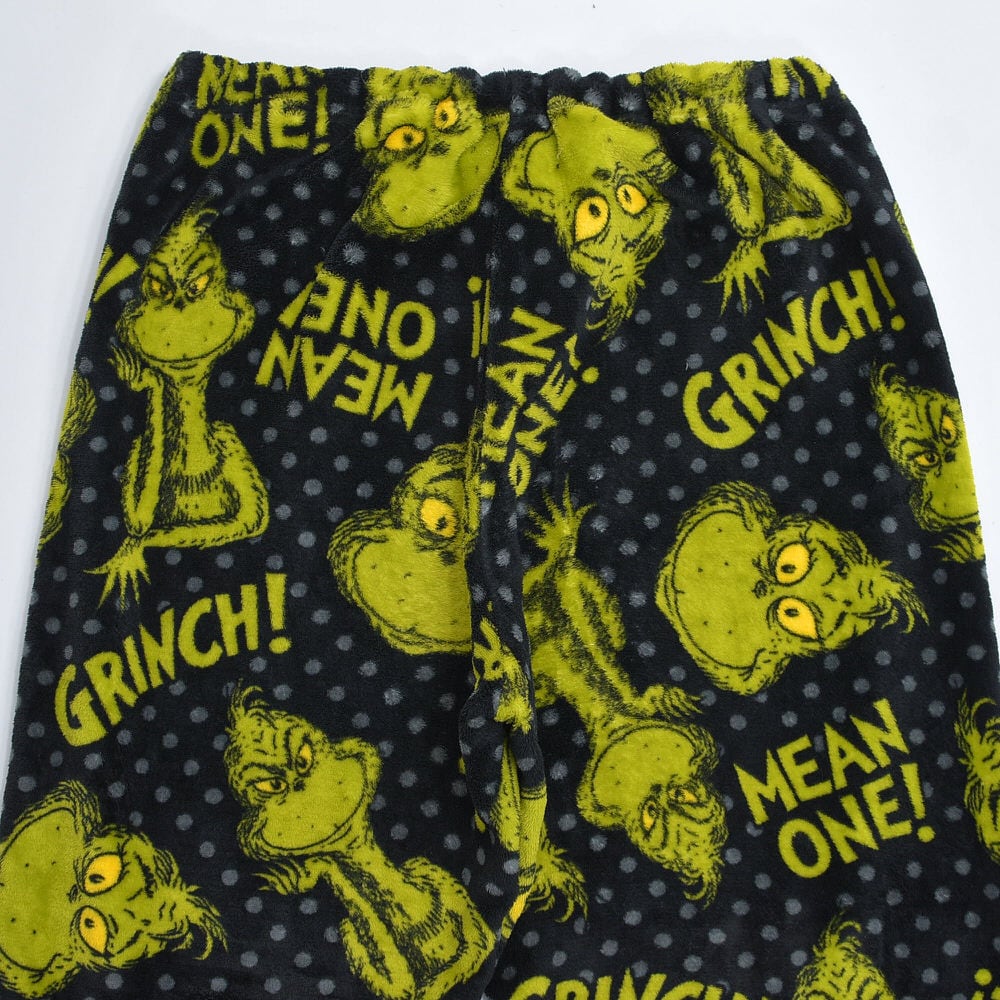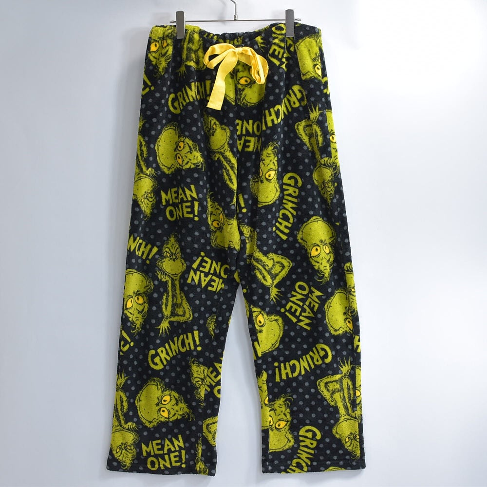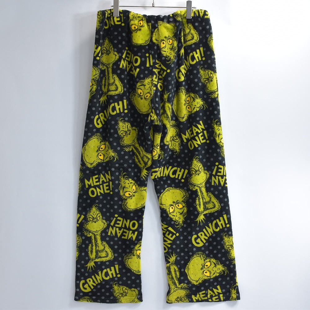 00s Dr. Seuss ドクター・スース いじわるグリンチ 総柄 フリースパンツ キャラクター シャギー イージーパンツ オーバーサイズ ブラック ヴィンテージ ビンテージ USA アメリカ古着 レディースXXLサイズ
