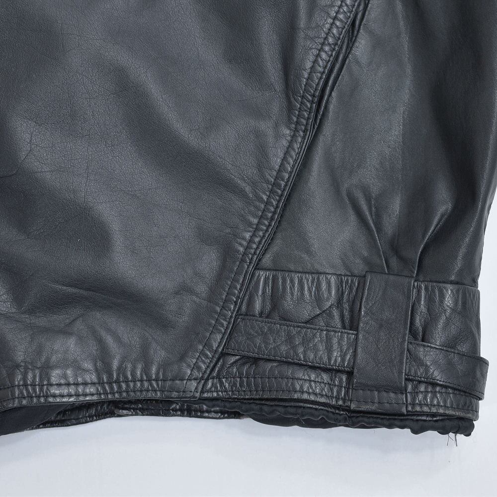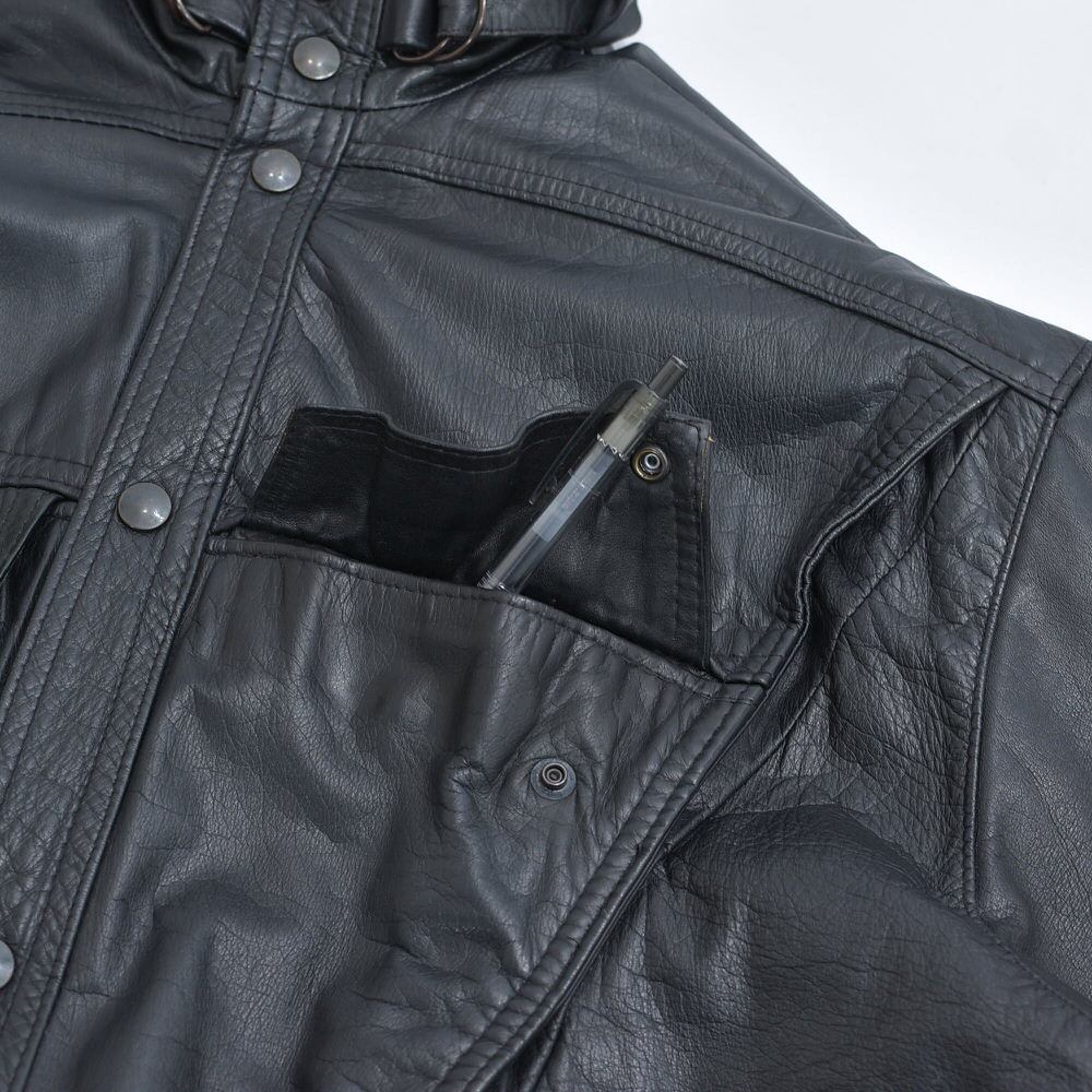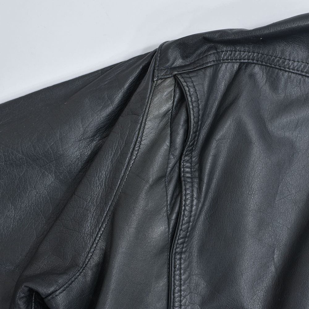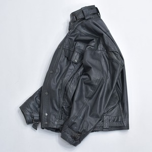 ・使用感や革特有のシワやクセ、画像の様に袖口や裾口、縫い合わせ部分などの擦れキズや、左二の腕付近や背中のうっすらと擦れ汚れ、左手首のペイントの様な汚れ、後身後の左肩付近の色褪せ、裏地のキルティングステッチのホツレや、生地の伸びなどで裾や袖口あたりの裏地が撓んでいますが、その他目立つ汚れ、ダメージは見当たらず、日常的に古着を着用されている方であれば、問題無く着用して頂けると思います