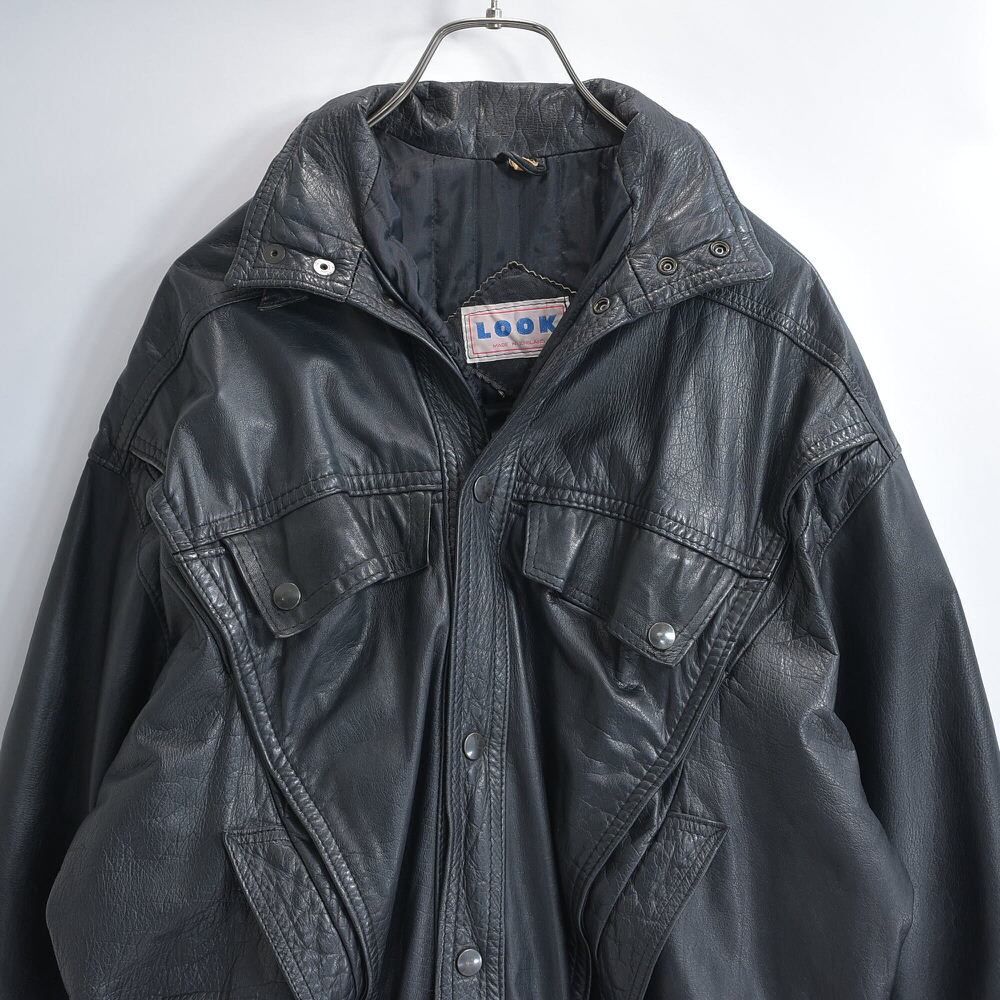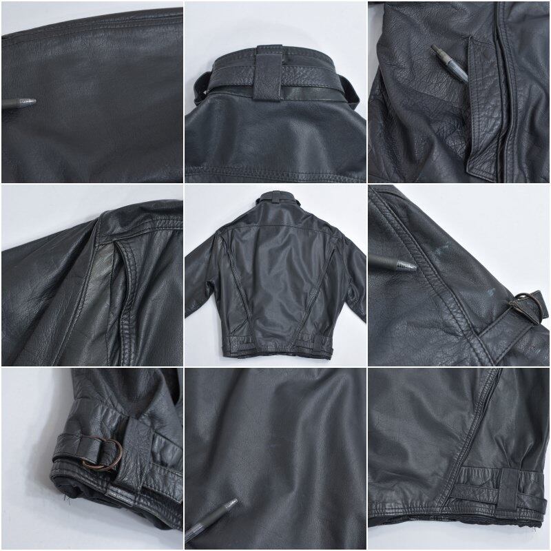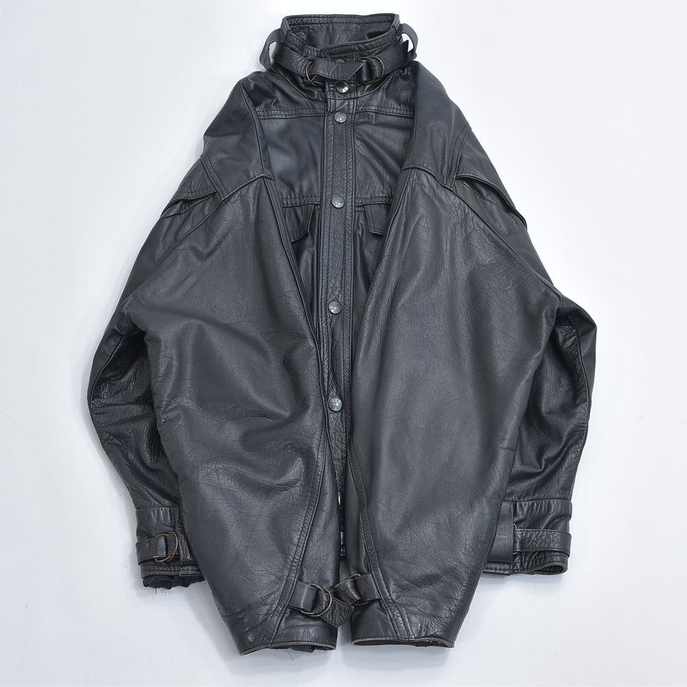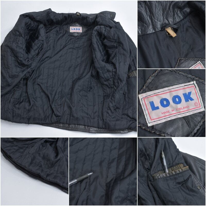 80〜90s England製 LOOK ルック スタンドカラー Dカン ベルト ギミック 変形レザー ジャケット ブルゾン 黒 ヴィンテージ ビンテージ 英国製 イギリス 古着 メンズS〜M相当