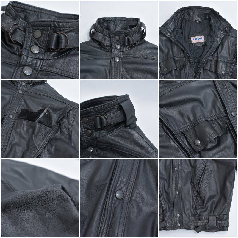 80~90s England製 LOOK ルック スタンドカラー Dカン ベルト ギミック 変形レザー ジャケット ブルゾン 黒 ヴィンテージ ビンテージ 英国製 イギリス 古着 メンズS~M相当