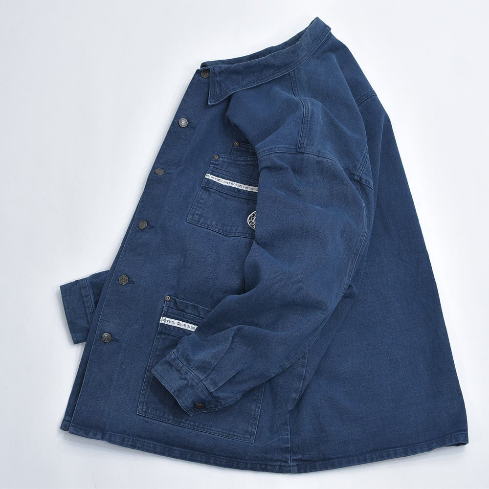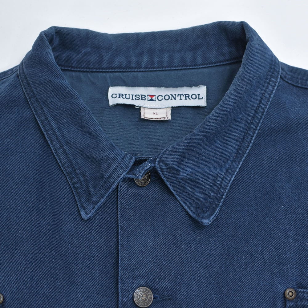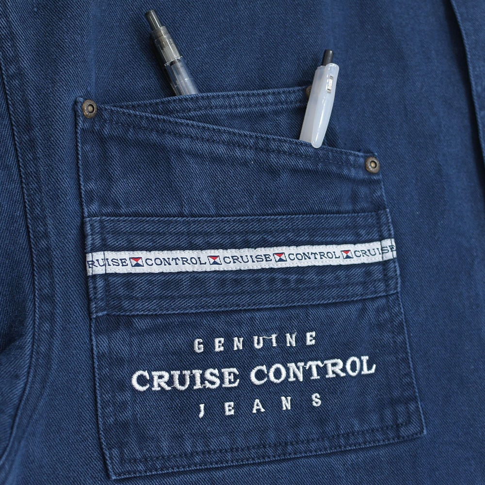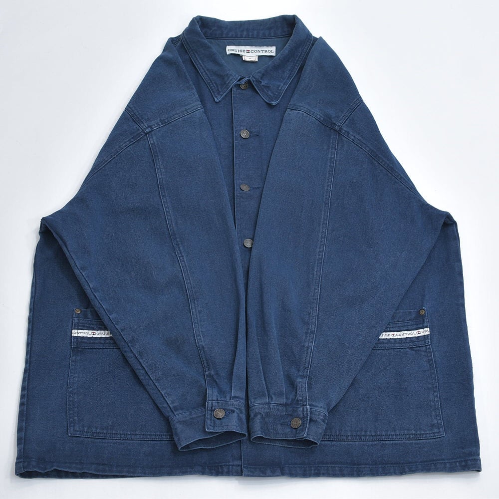 90s CRUISE CONTROL クルーズコントロール オーバーサイズ 4ポケット ロゴテープ ロゴワッペン 刺繍 デニム カバーオール ジャケット ブルー ヴィンテージ ビンテージ USA アメリカ古着 メンズXXL〜XXXL相当