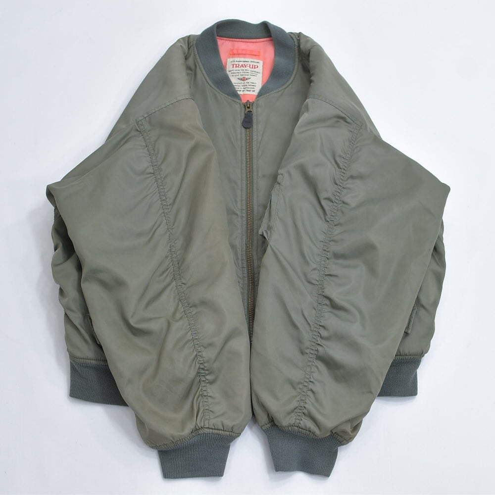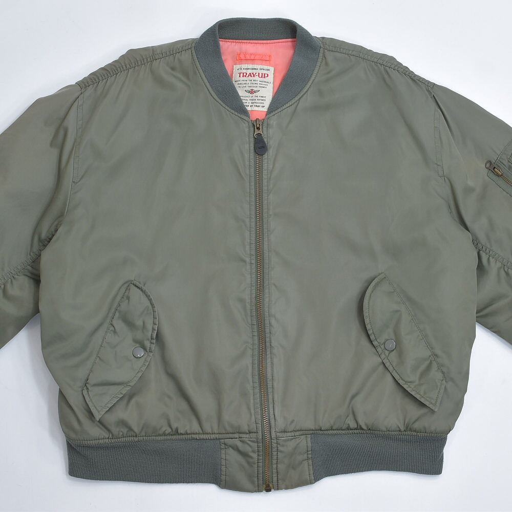 80〜90s グッドフェード TRAY-UP トレイアップ MA-1 フライトジャケット ジャンパー アウター 色褪せ ボンバー セージグリーン ヴィンテージ ビンテージ 古着 メンズL相当