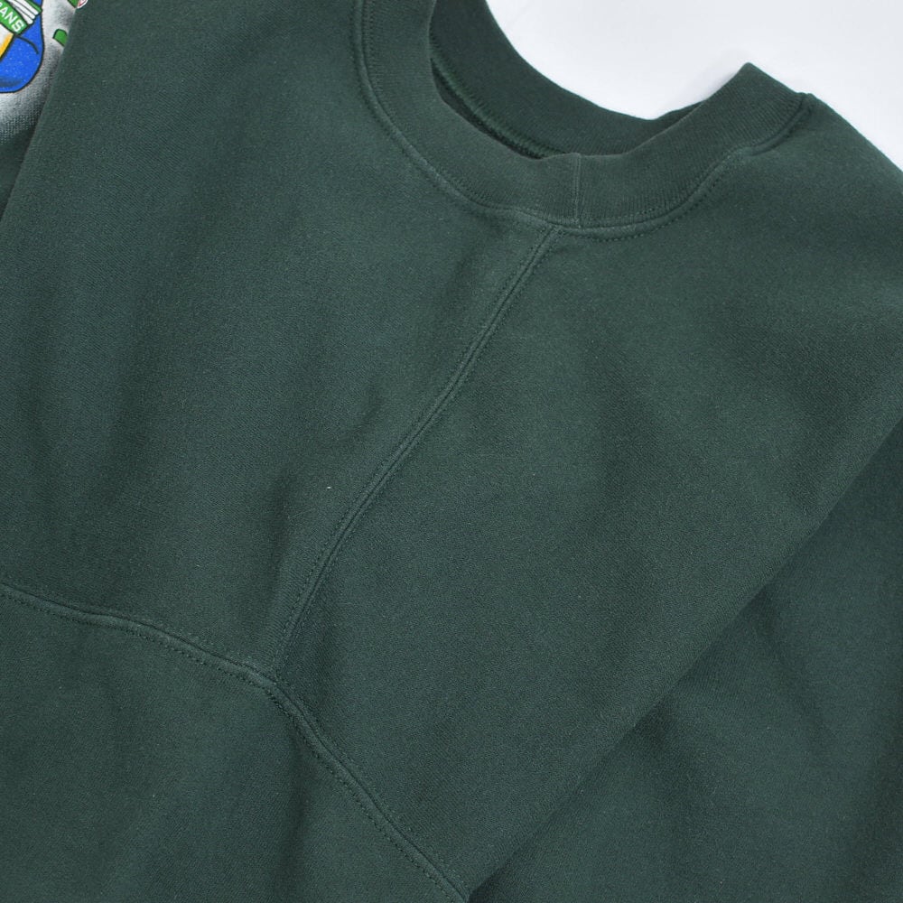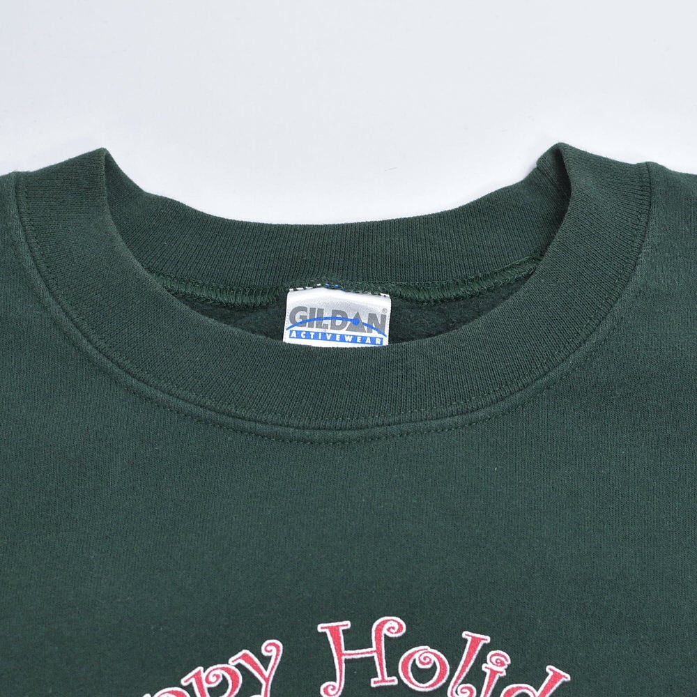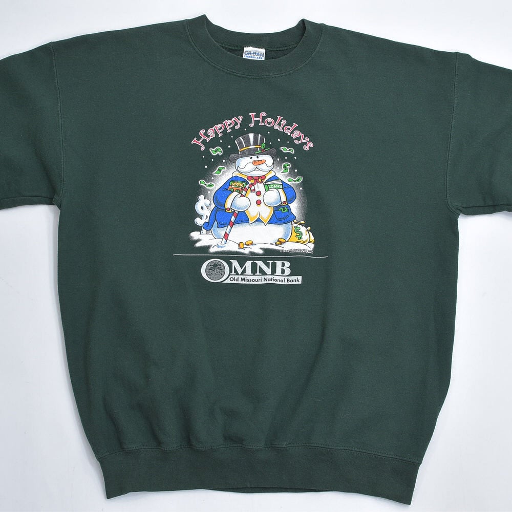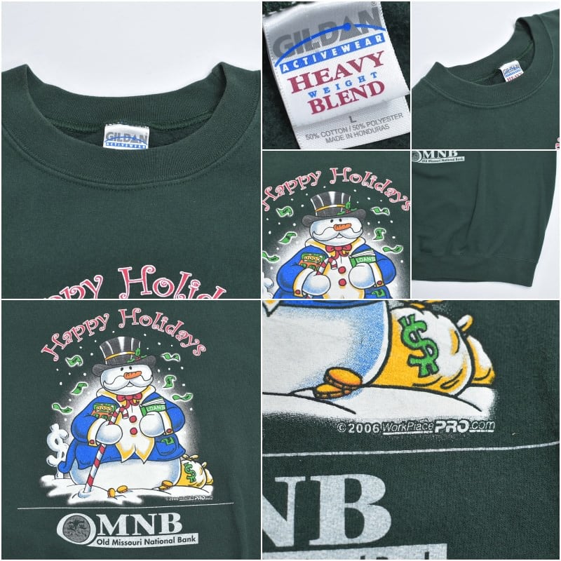 00s GILDAN ギルダン OMNB 銀行 企業系 スノーマン 雪だるま デザイン プリント スウェット アメカジ クリスマス ダークグリーン ヴィンテージ ビンテージ 古着 メンズLサイズ