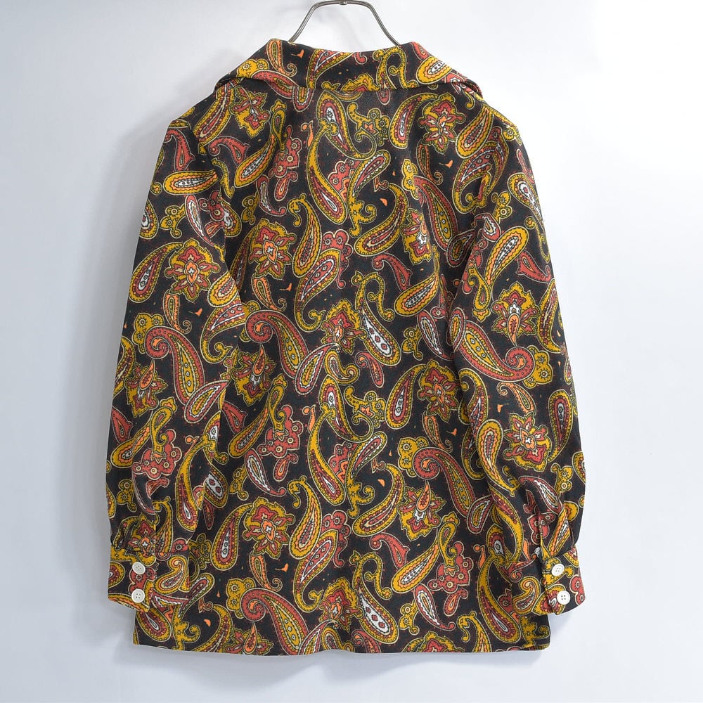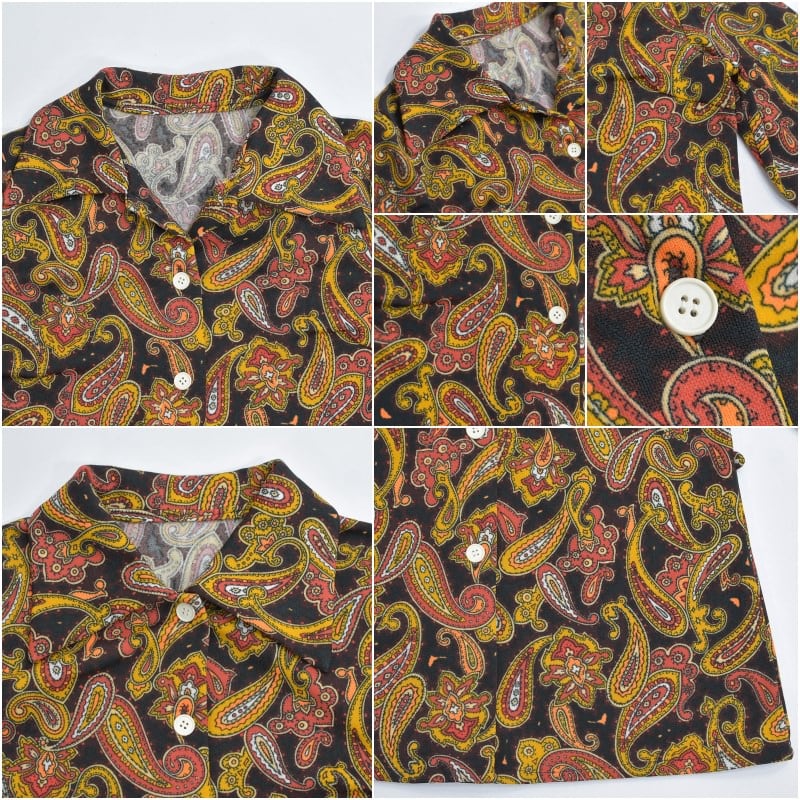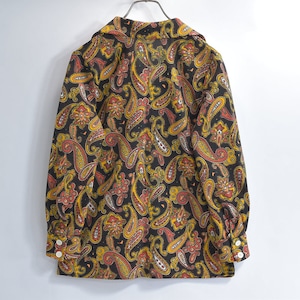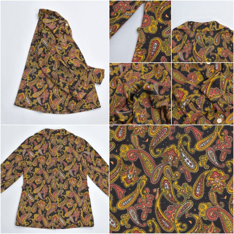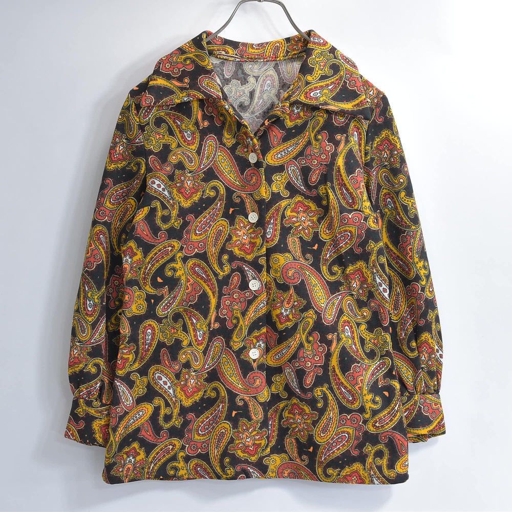60〜70s Hand Made ハンドメイド デザイン ペイズリー 総柄 ポリエステルシャツ サイケデリック 長袖 レトロ ヴィンテージ ビンテージ 古着 レディースXS〜S相当