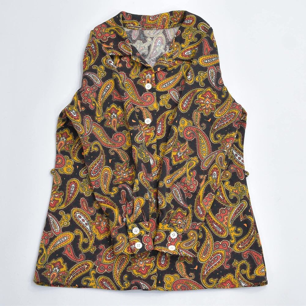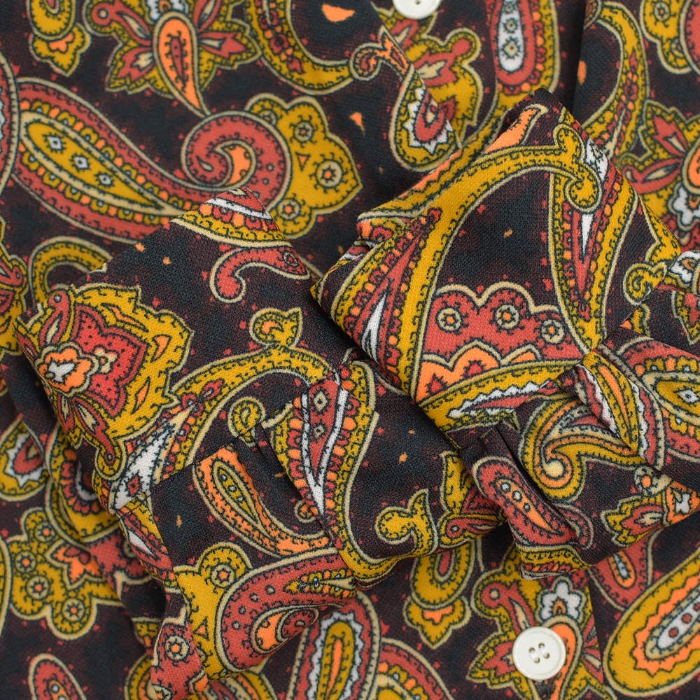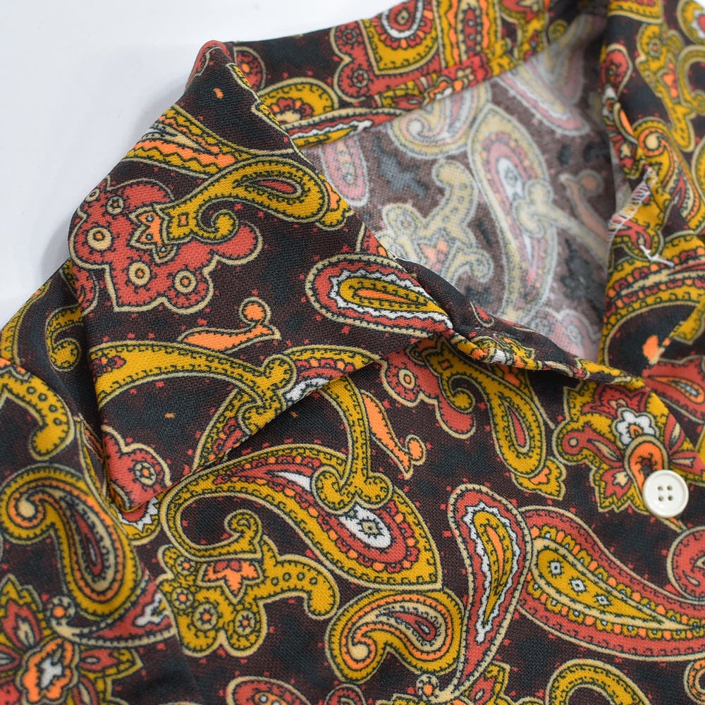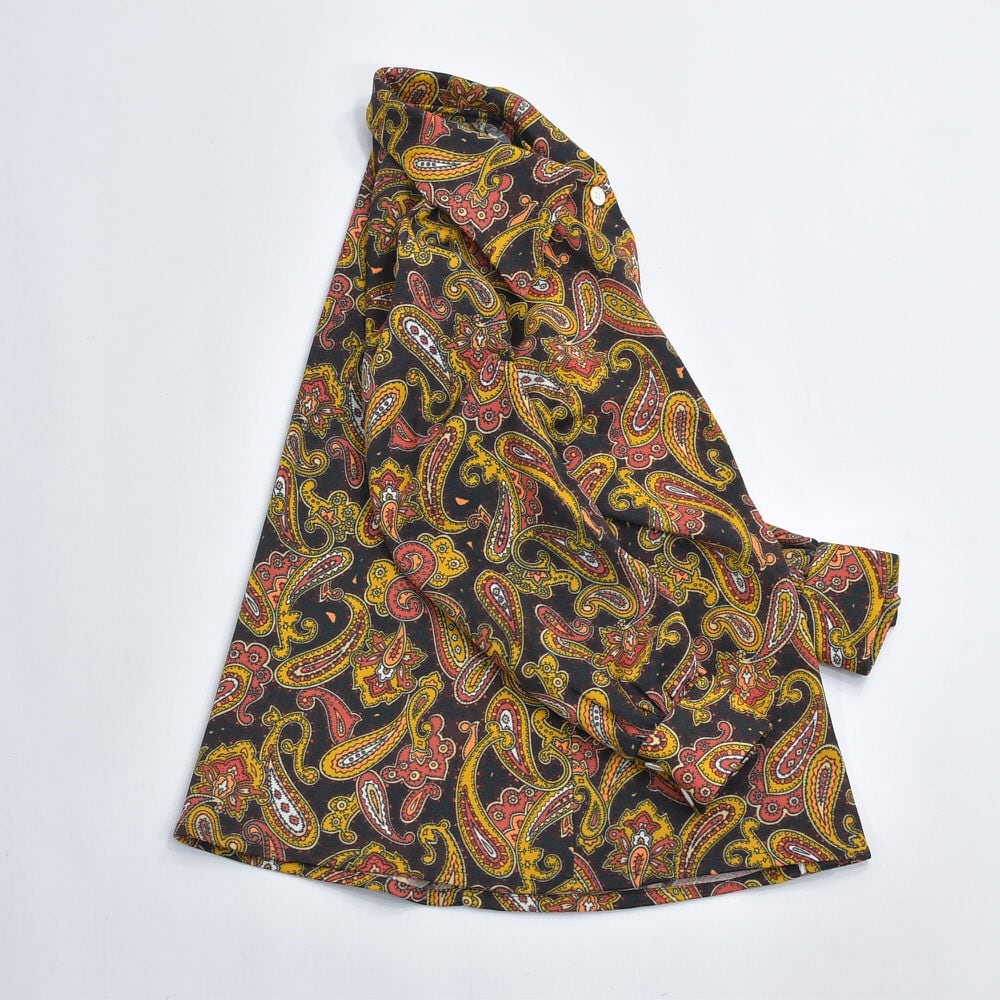 60〜70s Hand Made ハンドメイド デザイン ペイズリー 総柄 ポリエステルシャツ サイケデリック 長袖 レトロ ヴィンテージ ビンテージ 古着 レディースXS〜S相当