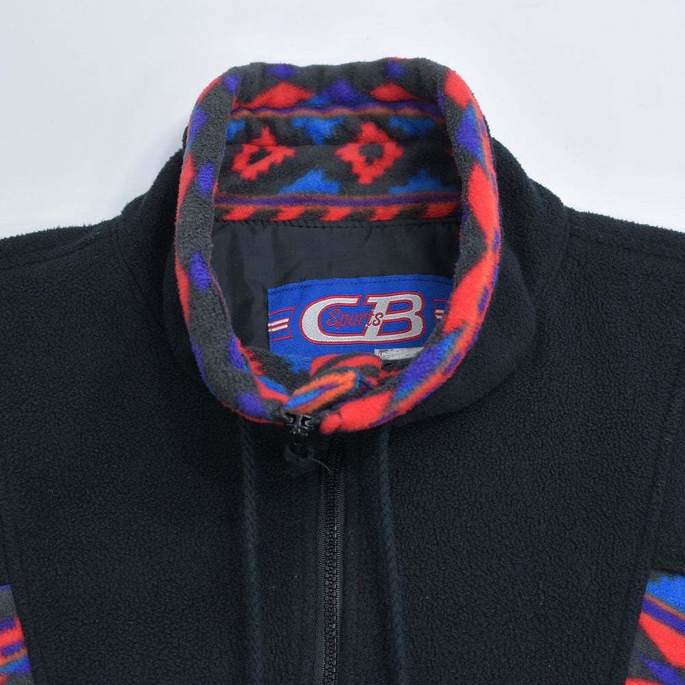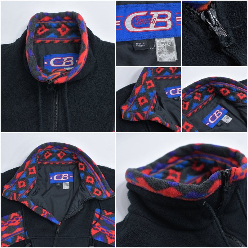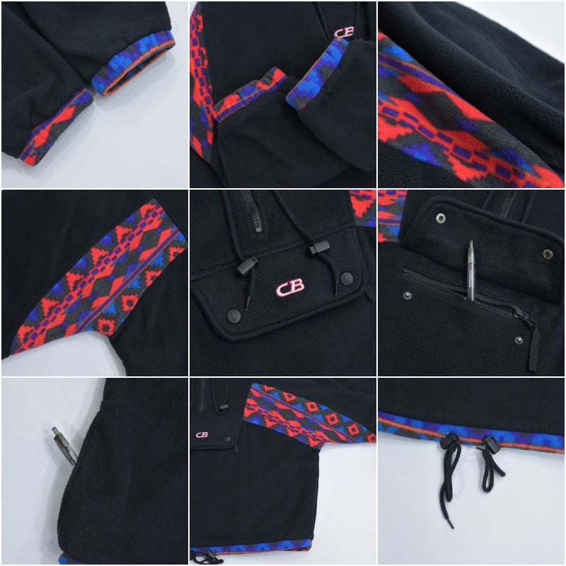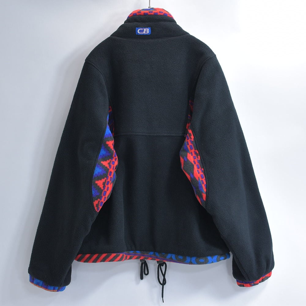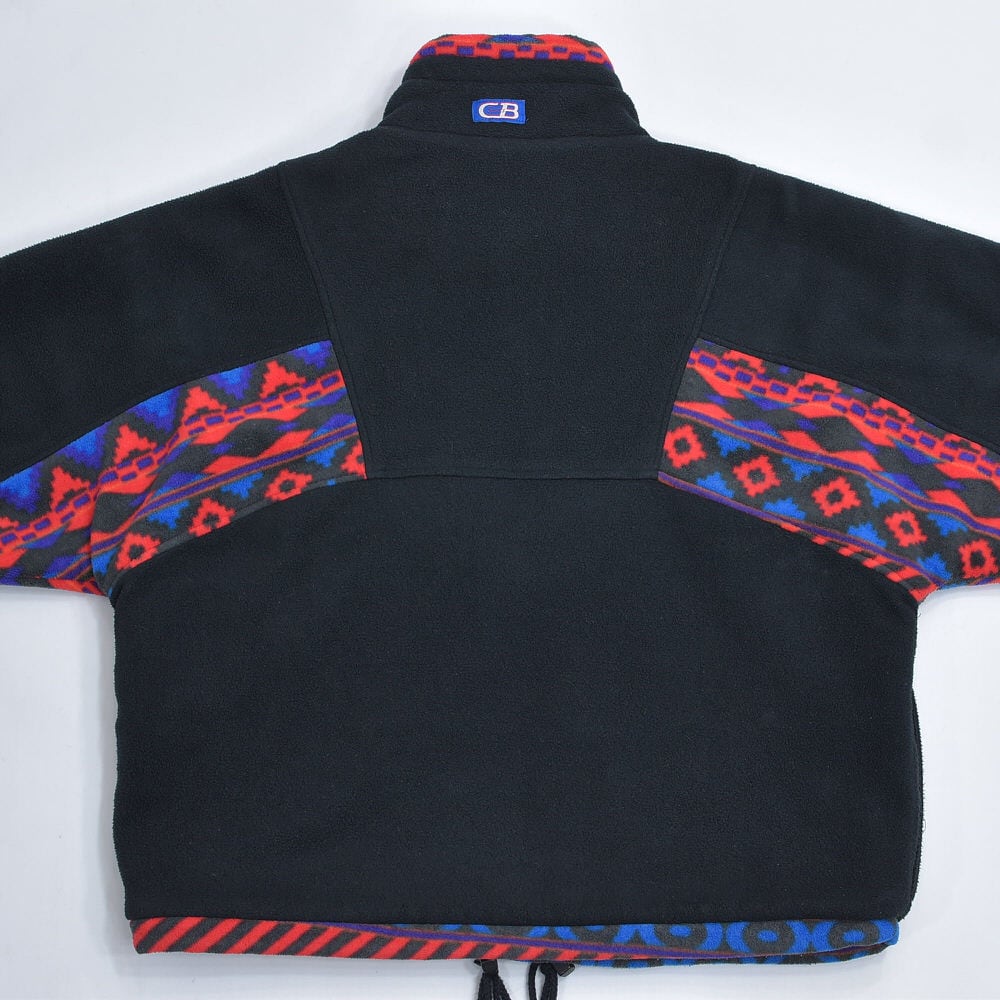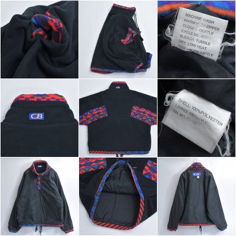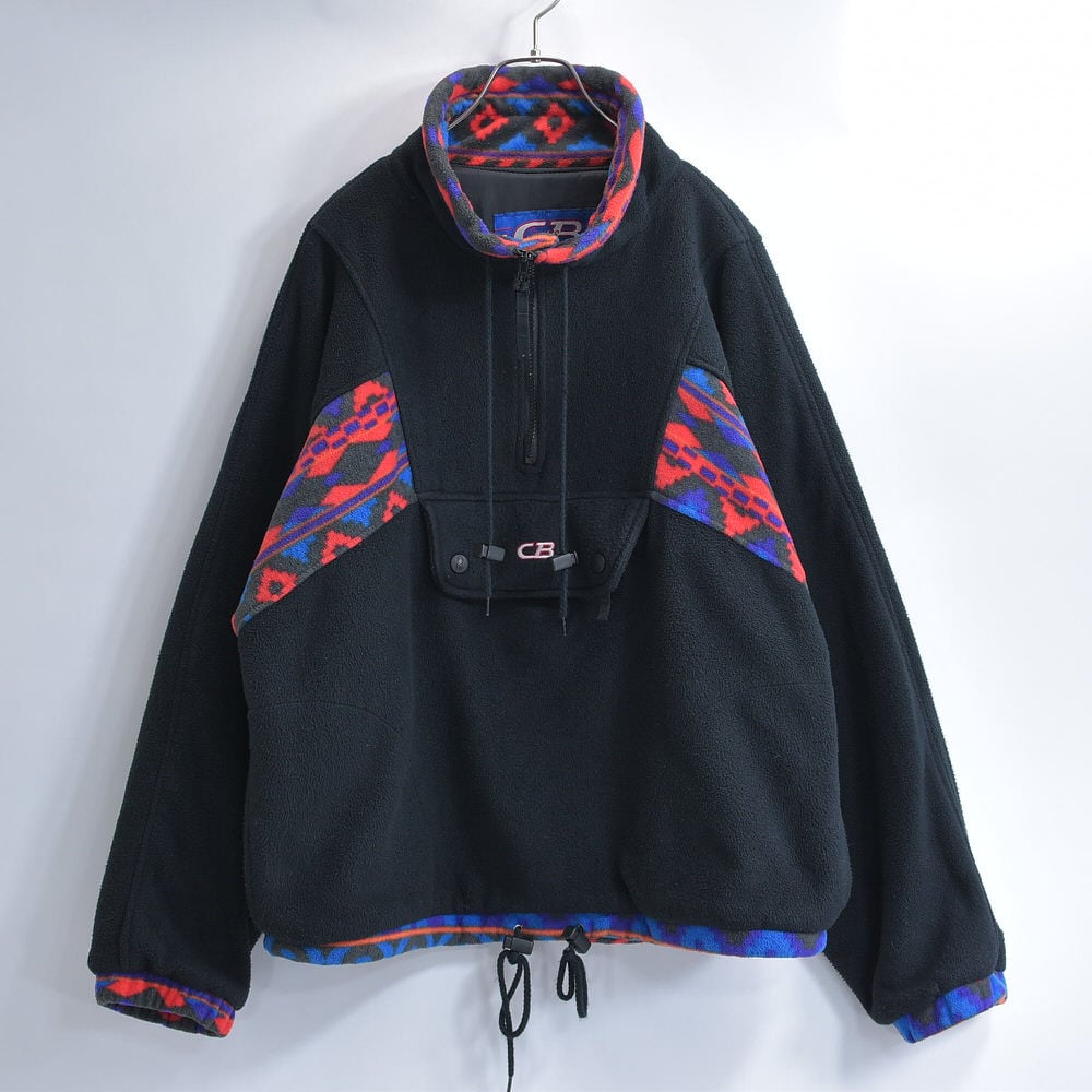 80~90s CB Sports シービースポーツ ネイティブ柄 ハーフジップ アノラック フリース ジャケット 幾何学模様 ジャンパー ナイロンライニング プルオーバー ブラック ヴィンテージ ビンテージ USA アメリカ古着 メンズXL~相当