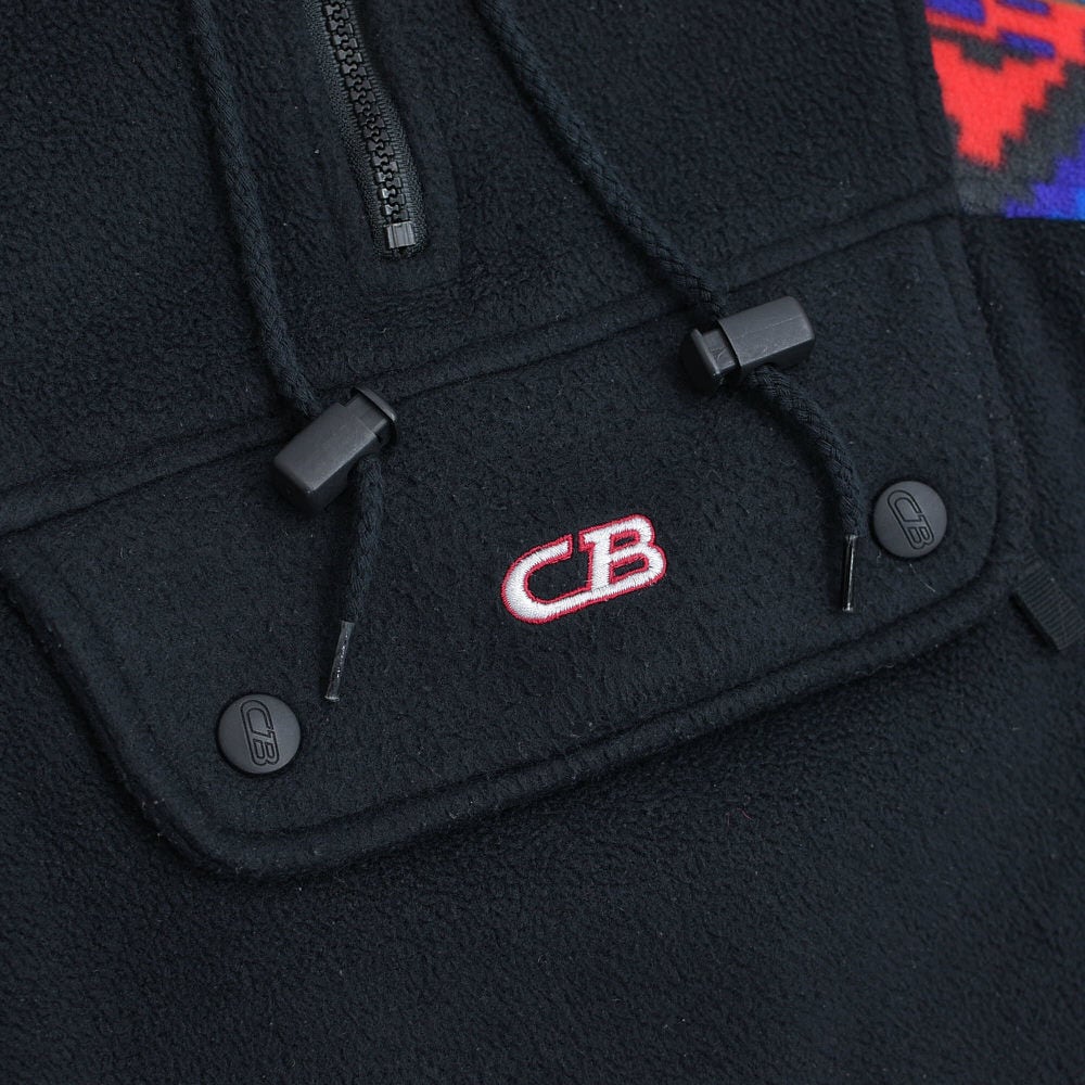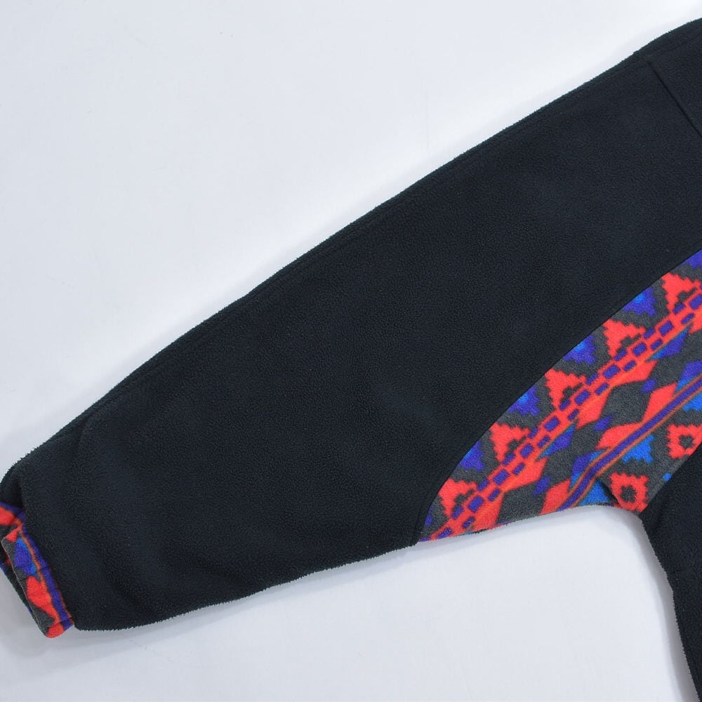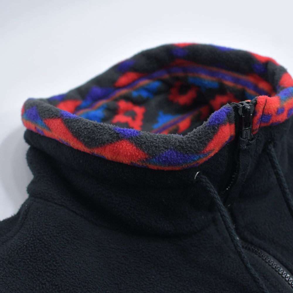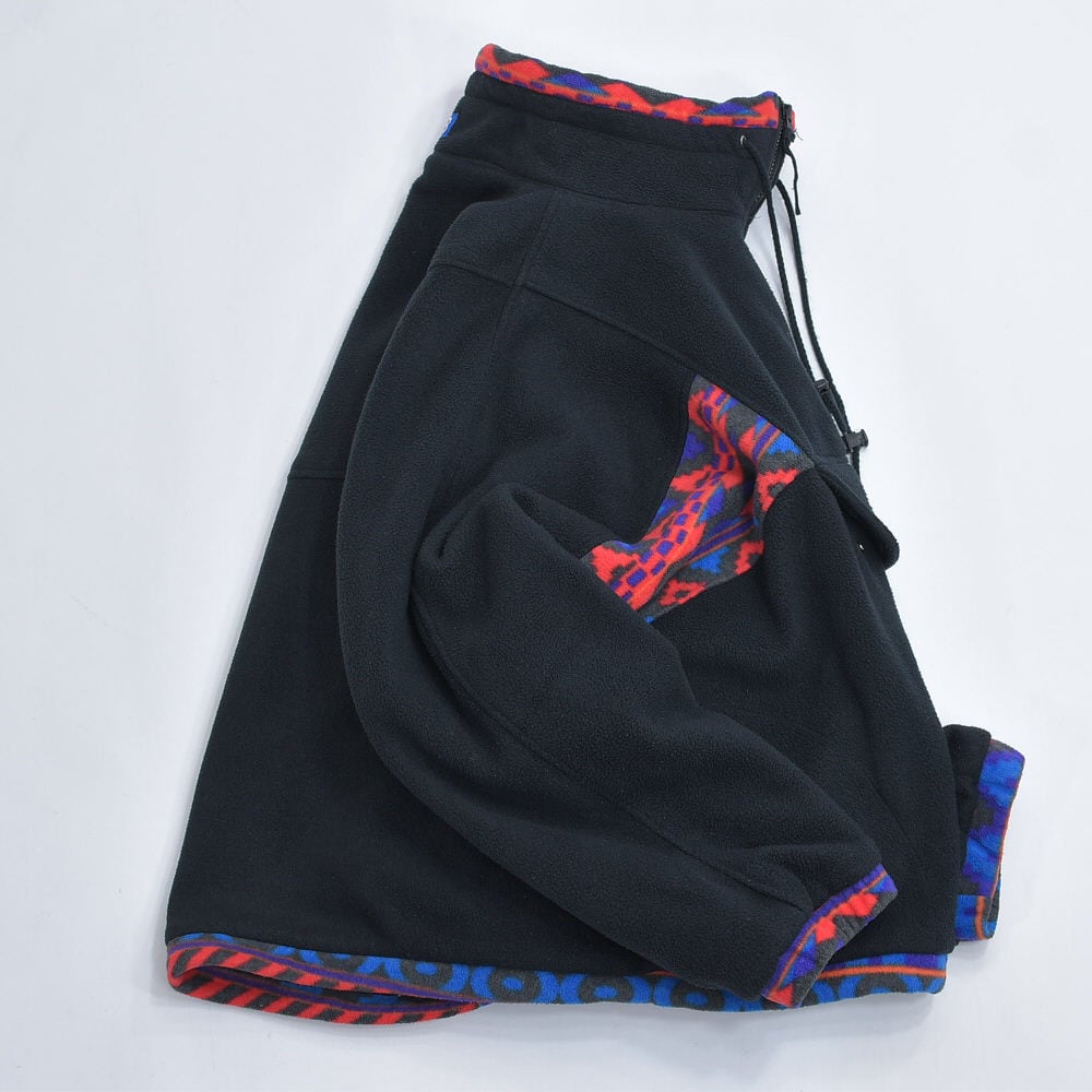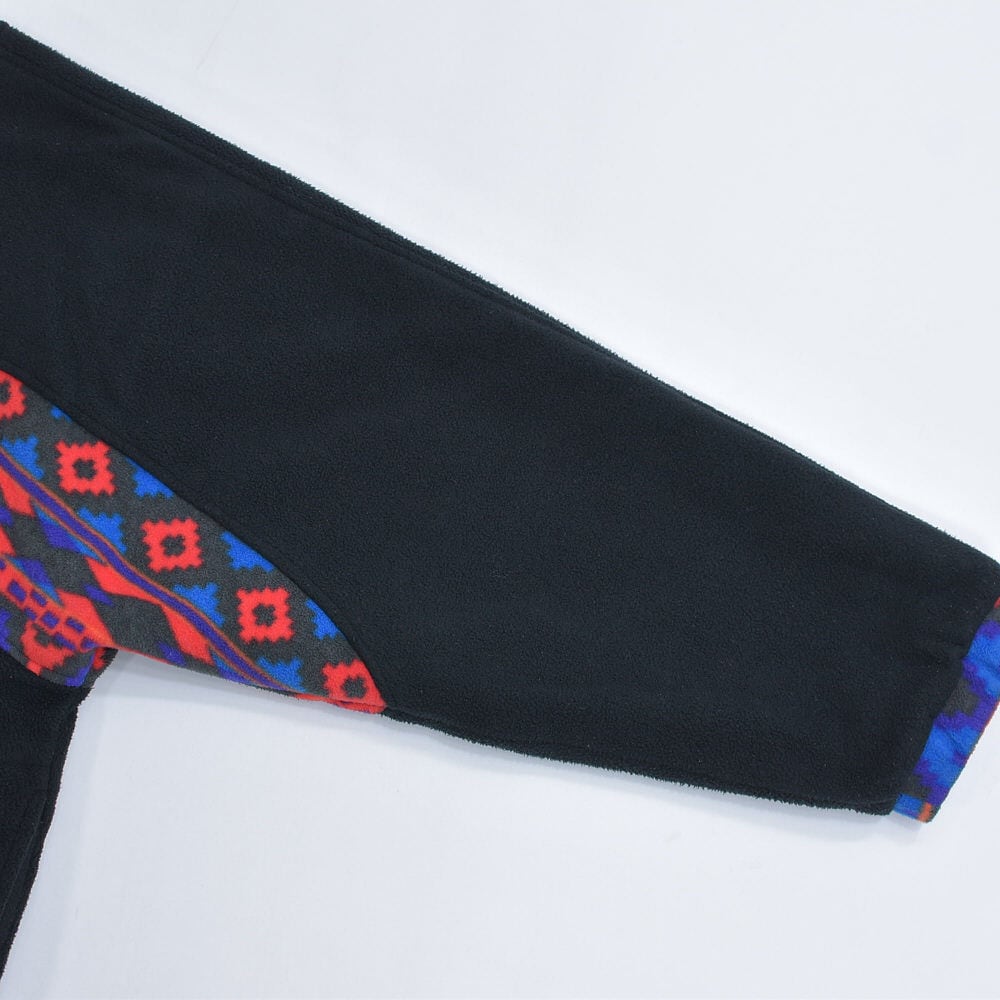 80~90s CB Sports シービースポーツ ネイティブ柄 ハーフジップ アノラック フリース ジャケット 幾何学模様 ジャンパー ナイロンライニング プルオーバー ブラック ヴィンテージ ビンテージ USA アメリカ古着 メンズXL~相当