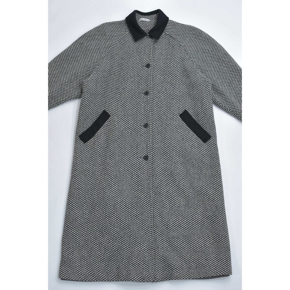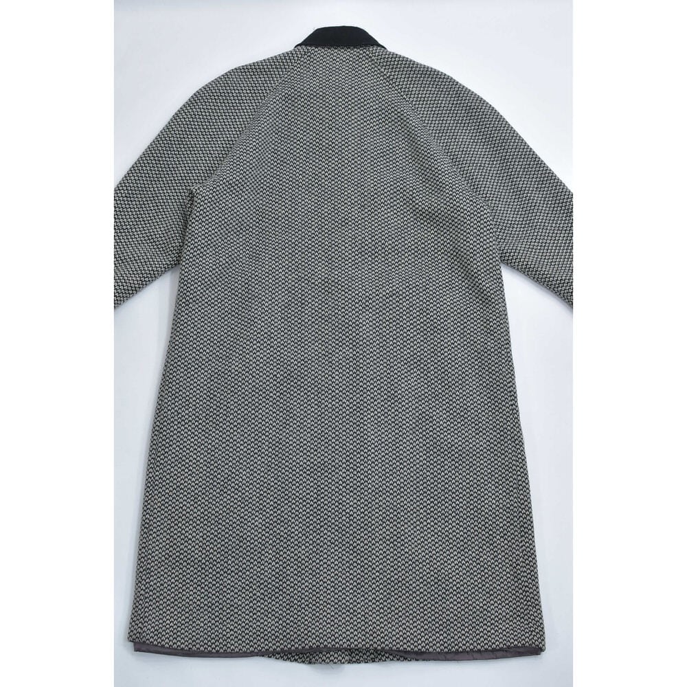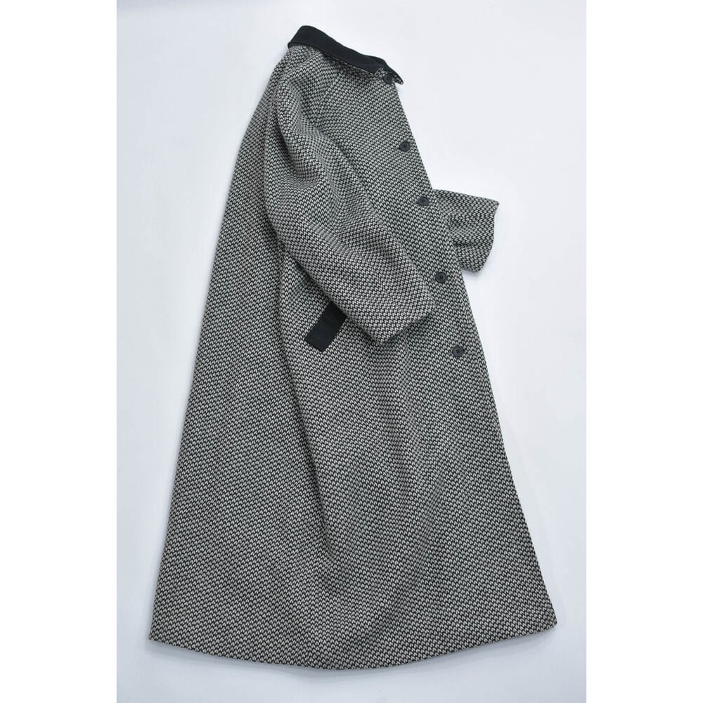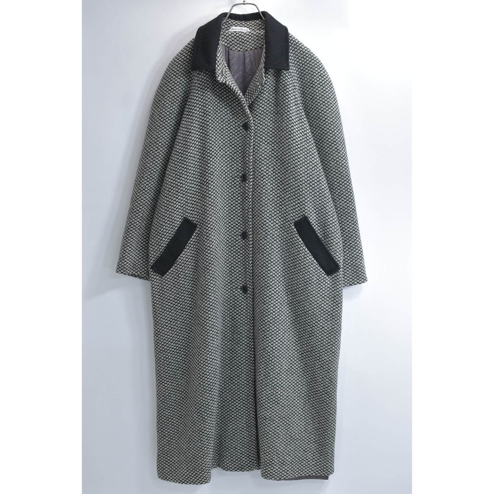 80〜90s カナダ製 DASH ダッシュ バイカラー 幾何学柄 デザイン ウール クラシックスタイル ロングコート ステンカラー バルマカーン モノトーン ヴィンテージ ビンテージ USA アメリカ古着 レディースXL相当