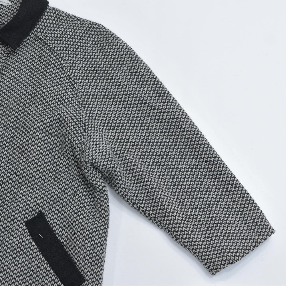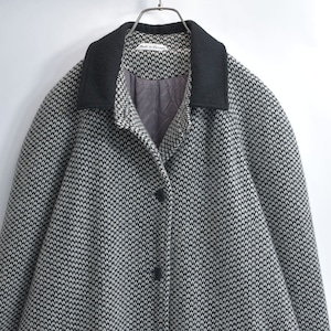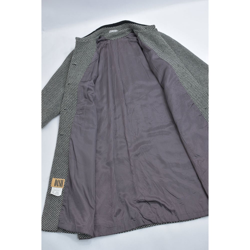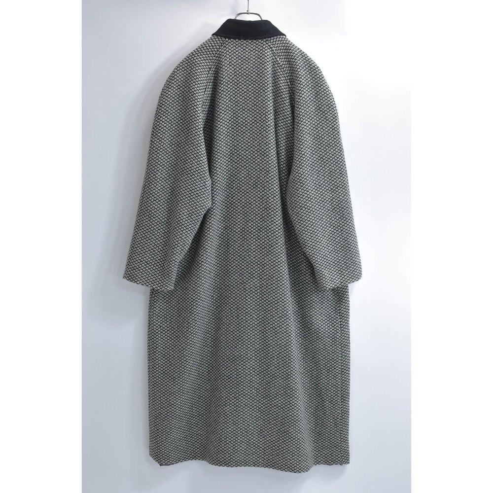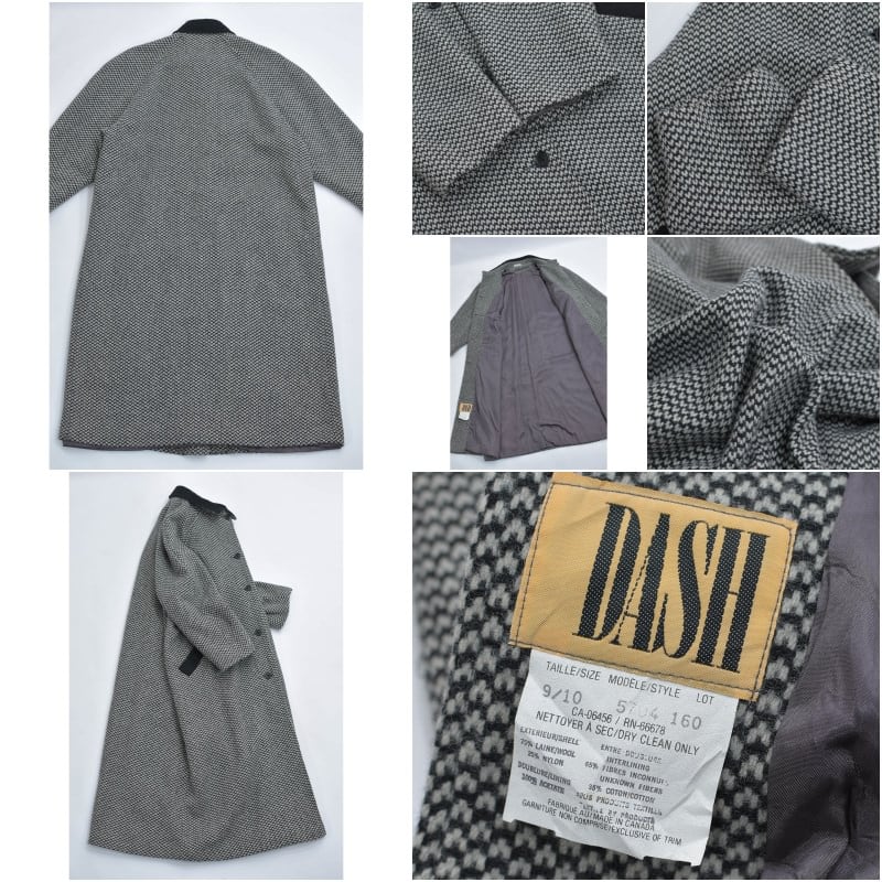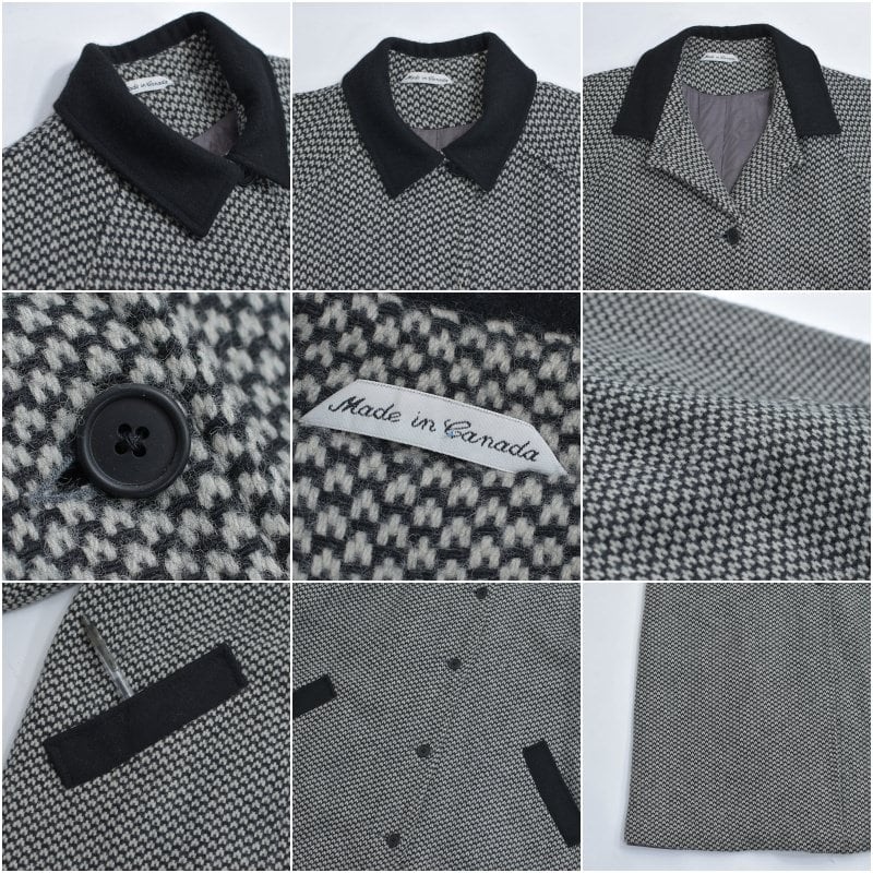 80~90s カナダ製 DASH ダッシュ バイカラー 幾何学柄 デザイン ウール クラシックスタイル ロングコート ステンカラー バルマカーン モノトーン ヴィンテージ ビンテージ USA アメリカ古着 レディースXL相当