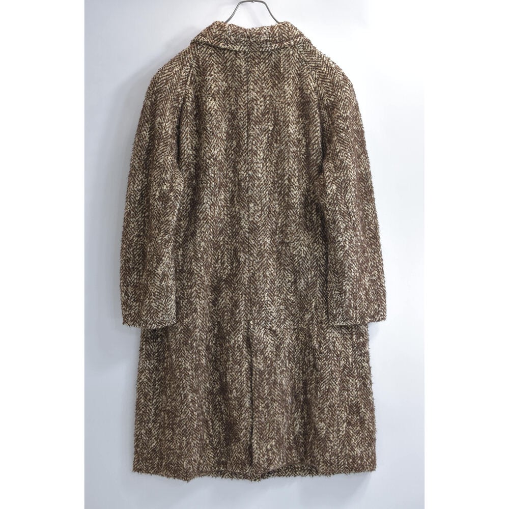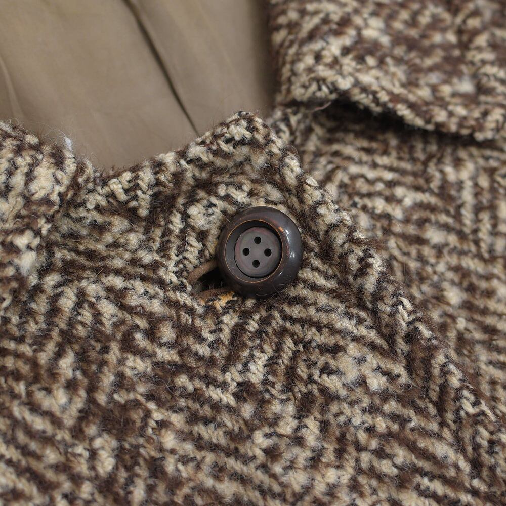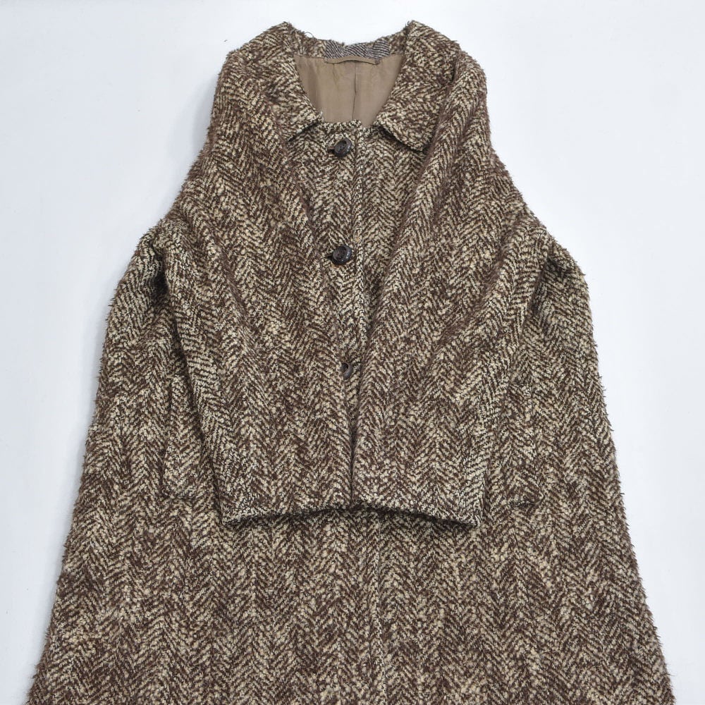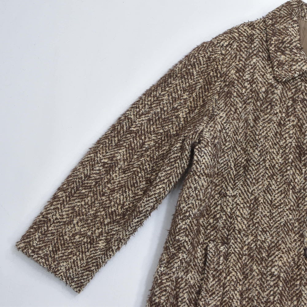 60s イタリア製 San Martein サンマルタン ヘリンボーン ツイード ウール ロングコート ステンカラーコート ピュアウール ラグランスリーブ ブラウン ヴィンテージ ビンテージ ヨーロッパ古着 レディースL~XL相当