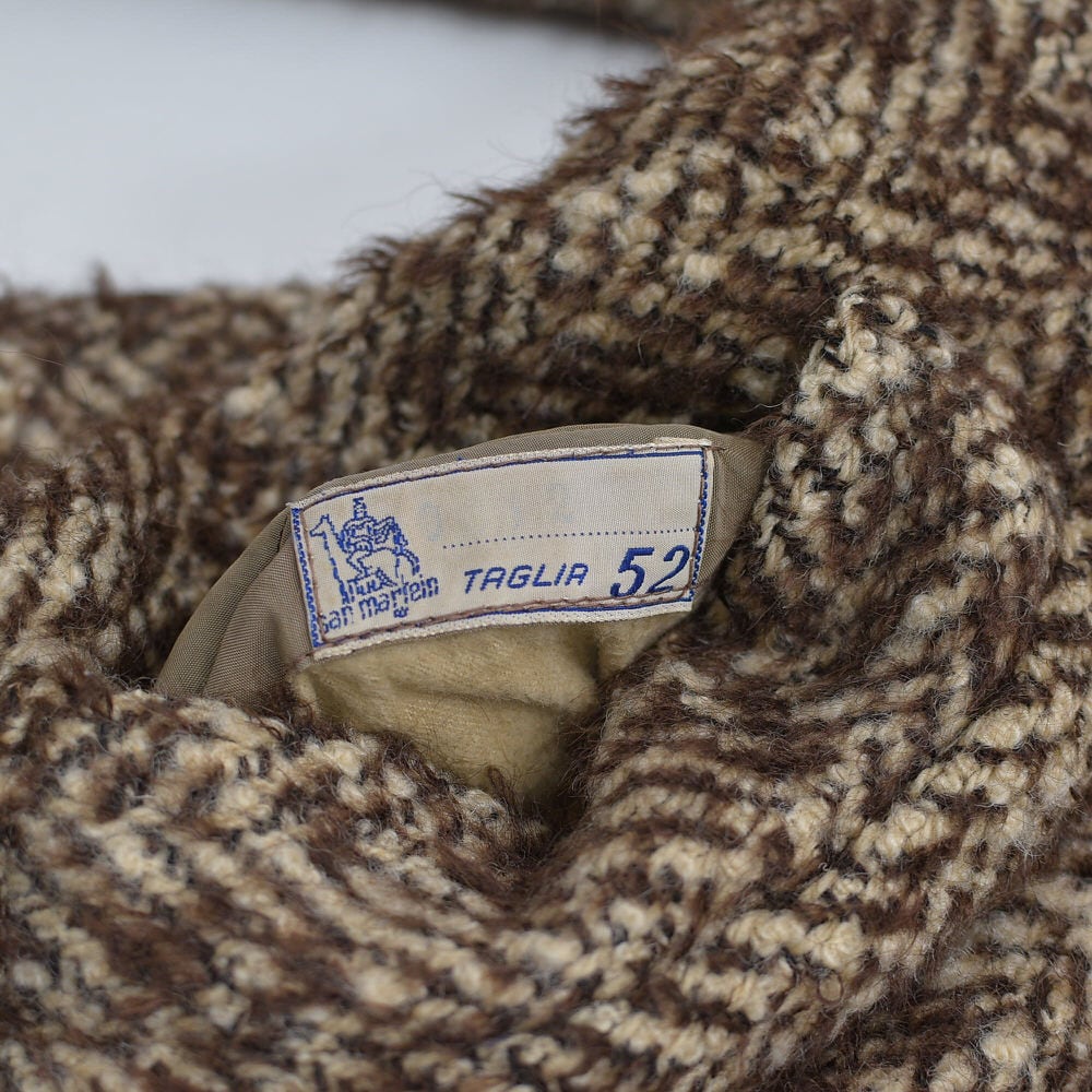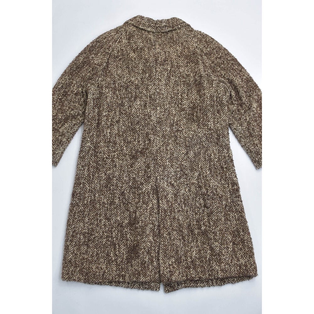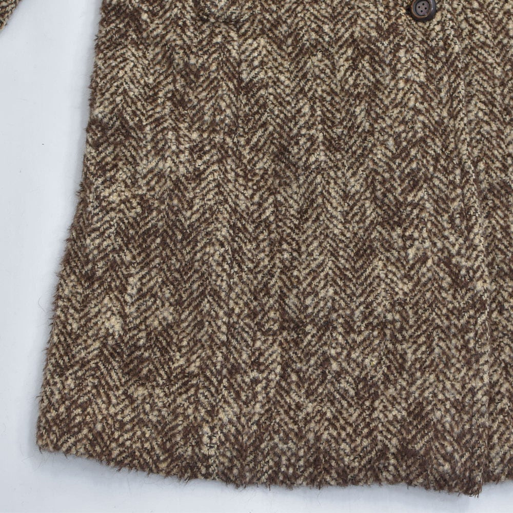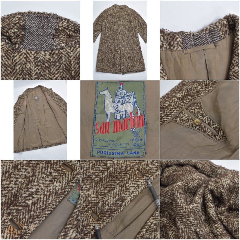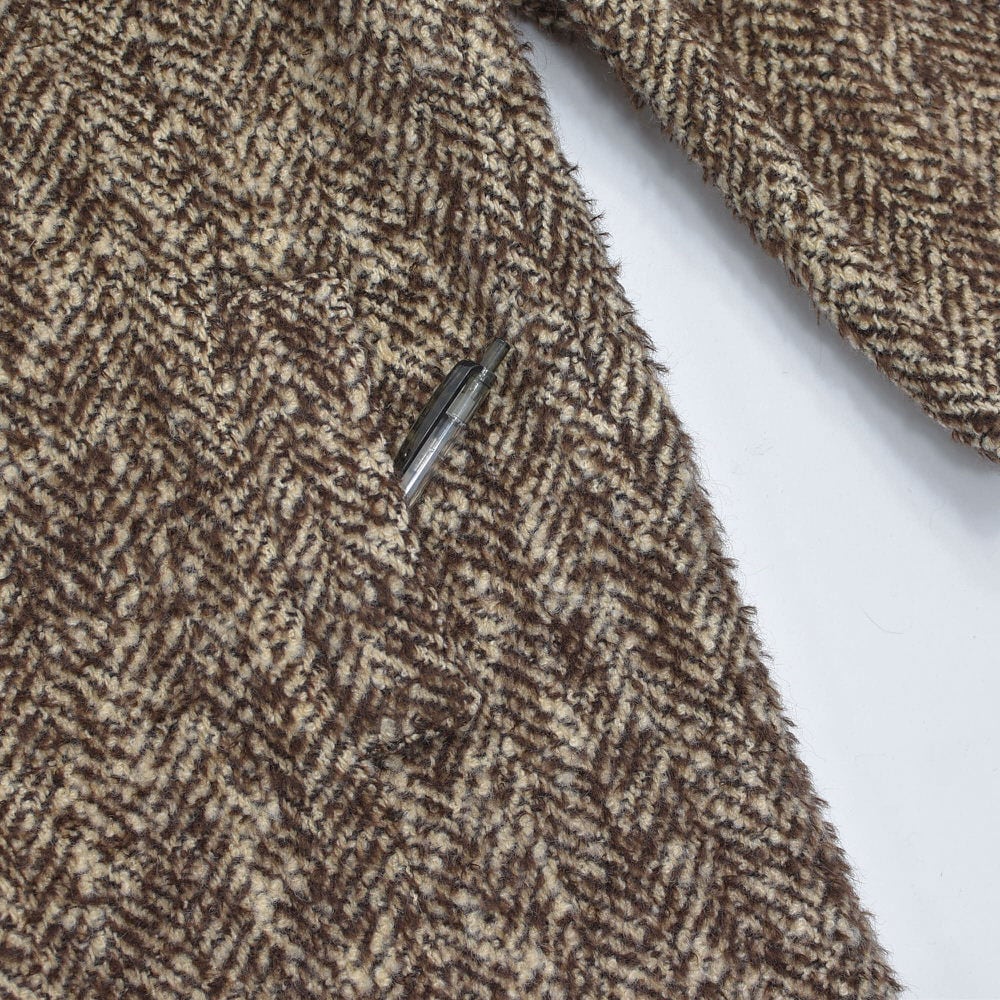 60s イタリア製 San Martein サンマルタン ヘリンボーン ツイード ウール ロングコート ステンカラーコート ピュアウール ラグランスリーブ ブラウン ヴィンテージ ビンテージ ヨーロッパ古着 レディースL~XL相当