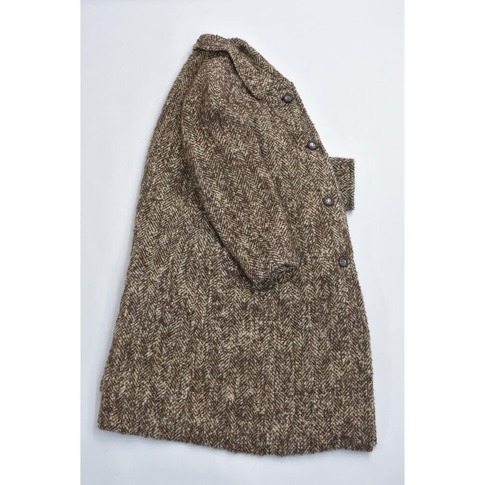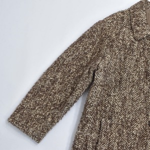 60s イタリア製 San Martein サンマルタン ヘリンボーン ツイード ウール ロングコート ステンカラーコート ピュアウール ラグランスリーブ ブラウン ヴィンテージ ビンテージ ヨーロッパ古着 レディースL〜XL相当