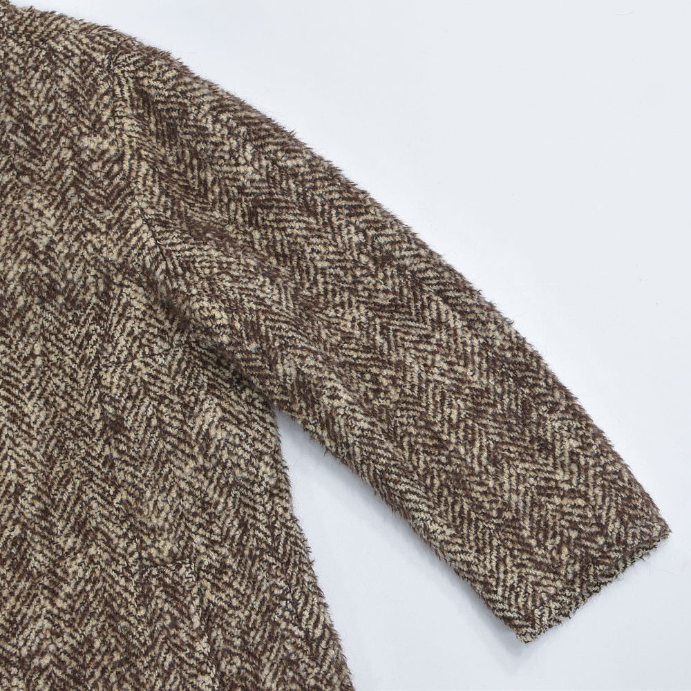 ざっくりとしたツイードの質感にブラウンとベージュの温かみのあるコントラスト